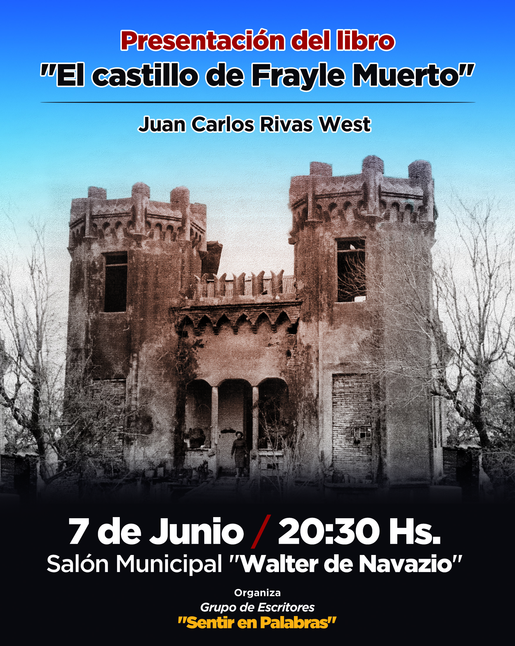 Organizado por el grupo de escritores “Sentir en Palabras”, el ingeniero agrimensor Juan Carlos Rivas West presentará hoy su libro “El castillo de Frayle Muerto” a las a las 20:30 Hs. en el Salón Municipal Walter de Navazio.