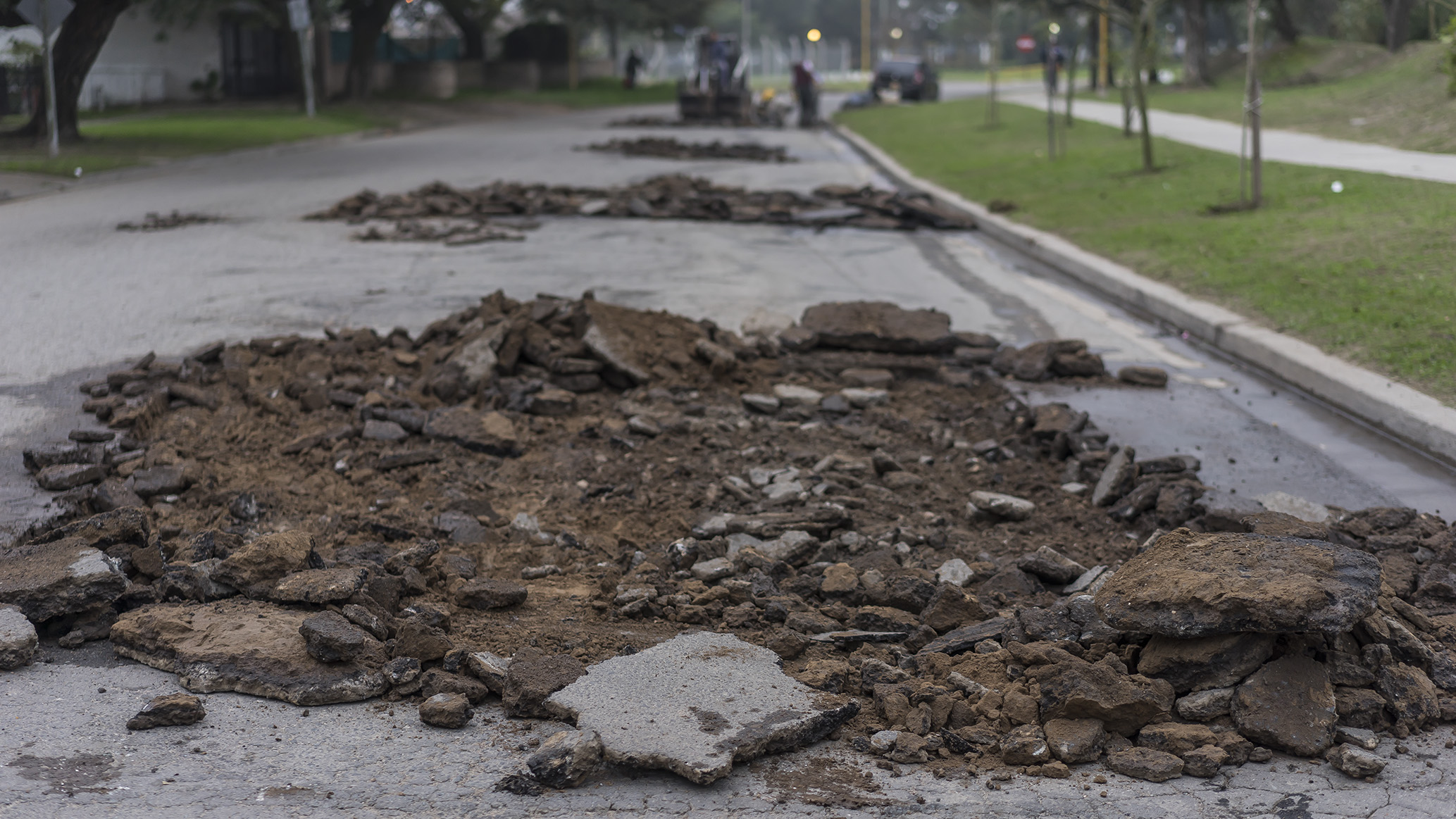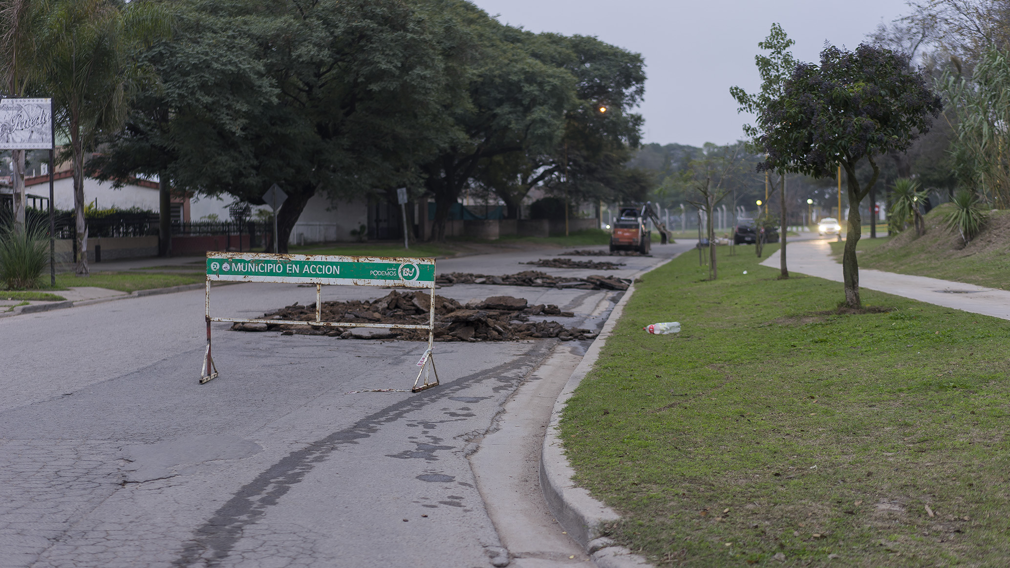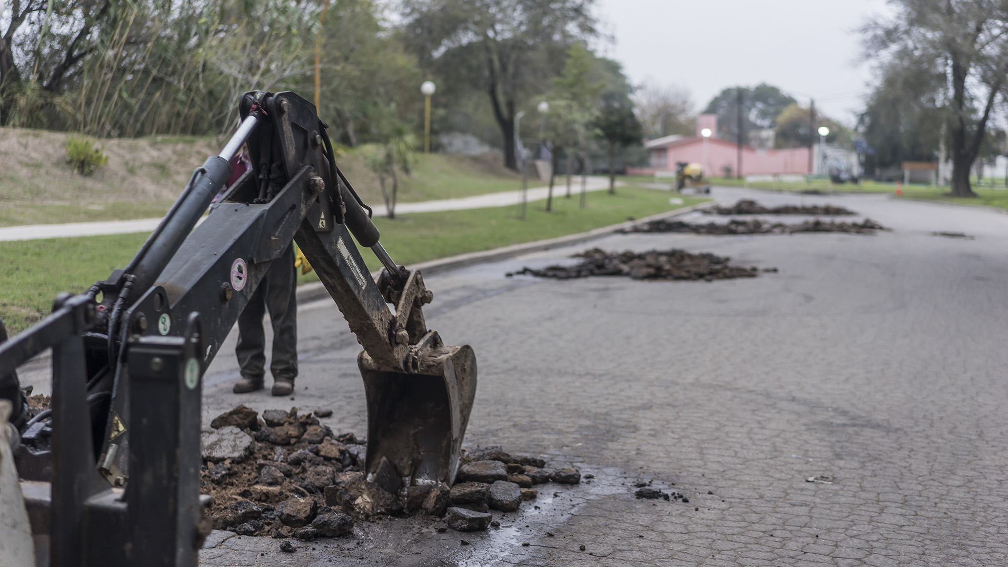 Tareas de bacheo con asfalto en caliente se cumplen en la avenida Faustino Molina. La actividad periódica en el lugar está motivada por el estado deficiente que presenta la muy transitada arteria.