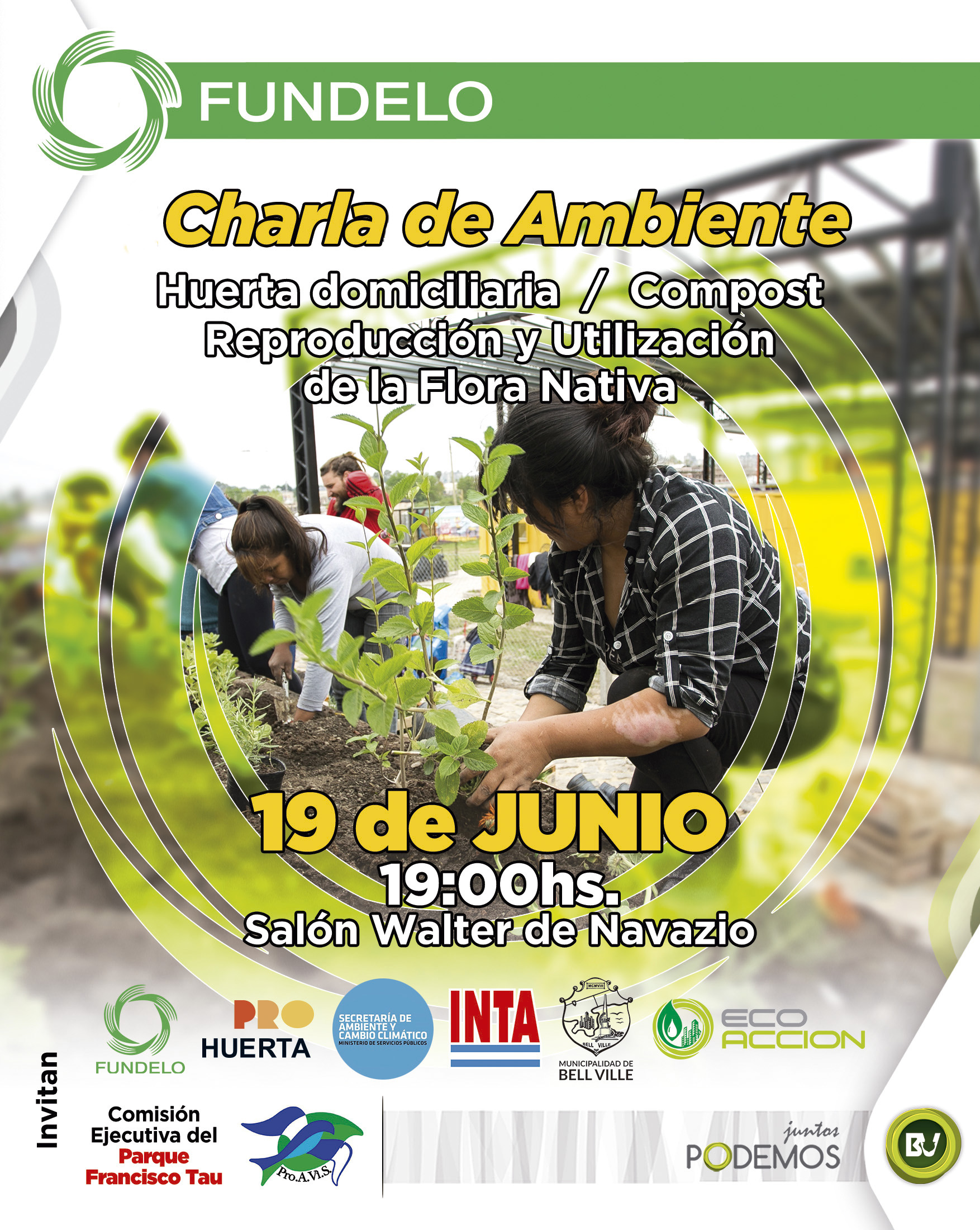 La Fundación para el Desarrollo Local (FUNDELO) en conjunto con el INTA Bell Ville estarán realizando el próximo miércoles 19 de Junio a las 19 Hs. en el salón Walter de Navazio una charla ambiental para público en general con entrada libre y gratuita. Los temas a dictarse son “Huerta domiciliaria”, “Compost” y “Reproducción y utilización de la Flora Nativa” con los disertantes Melina Pranzoni, Ing. Claudio Videla (INTA Bell Ville) y la Ing. Rebeca Quetglas (Guardaparque). Las charlas tendrán una orientación fuertemente ambiental resaltando los beneficios de la producción casera en la huerta, así como la reducción de residuos orgánicos mediante la elaboración de compost. El evento cuenta con la organización del INTA, Prohuerta, Fundelo y Municipalidad.