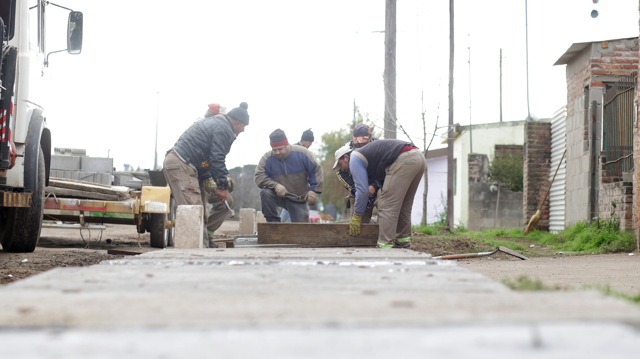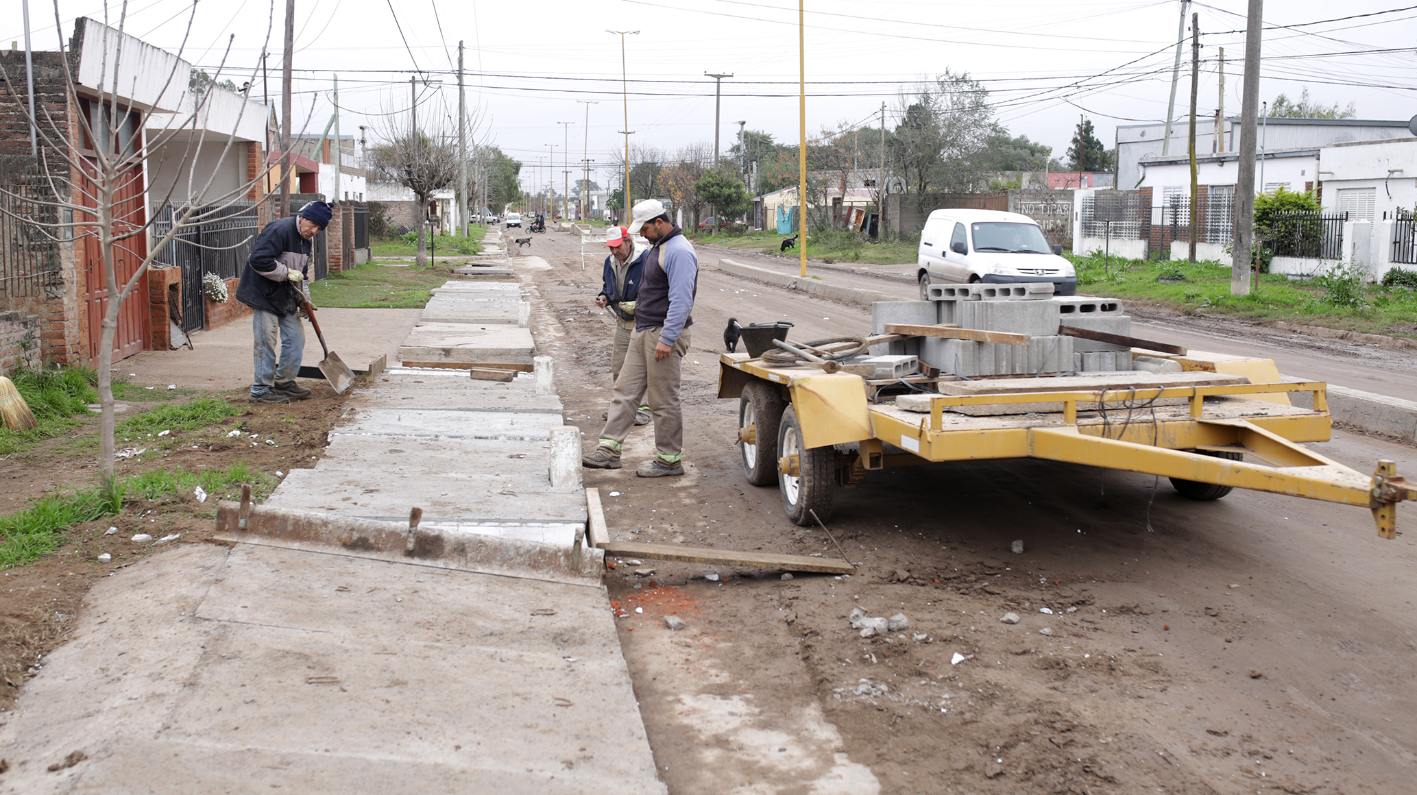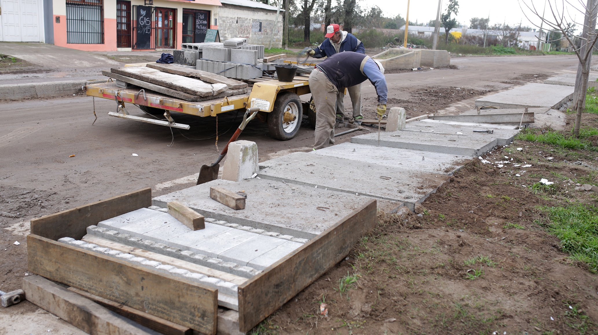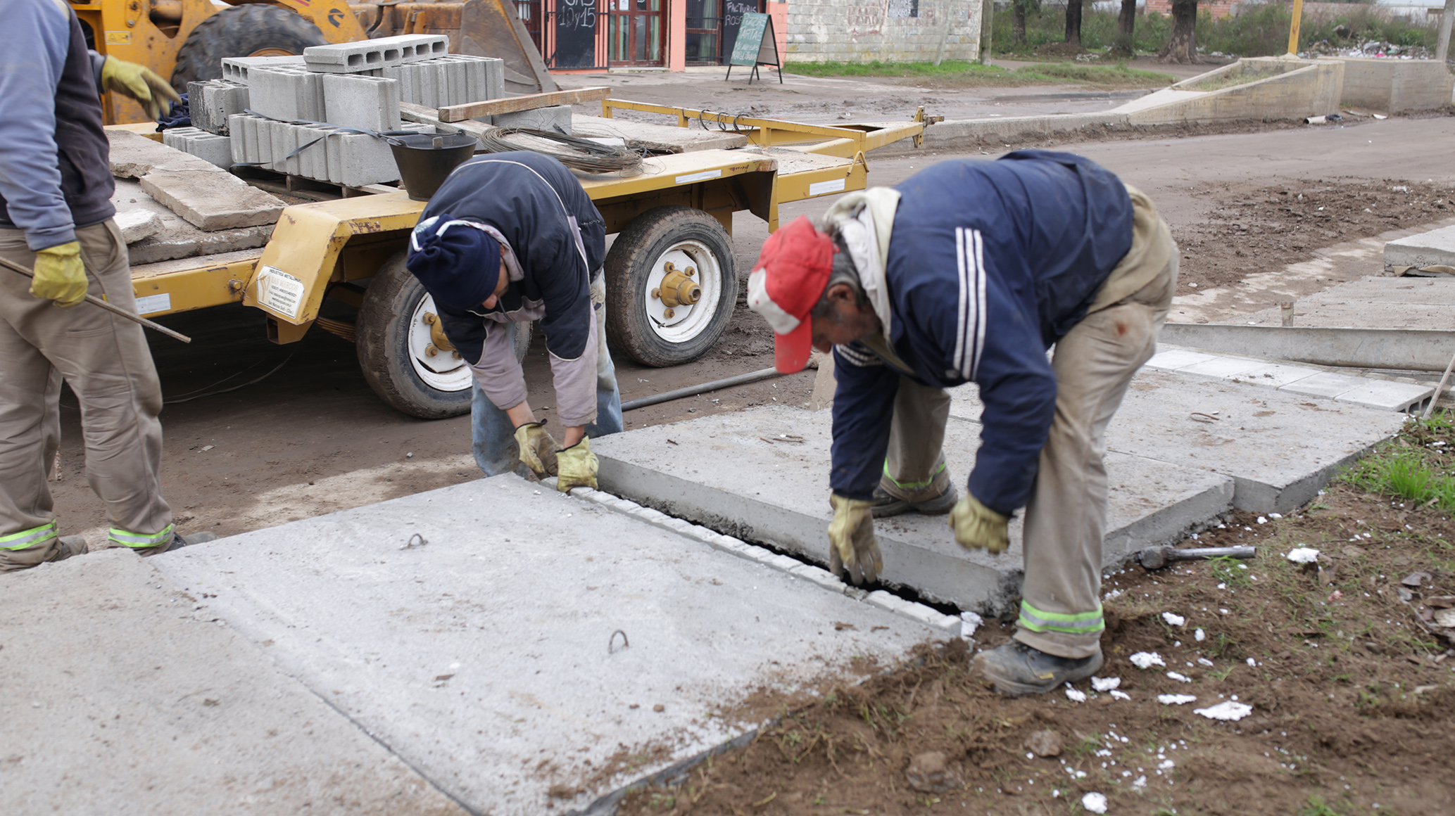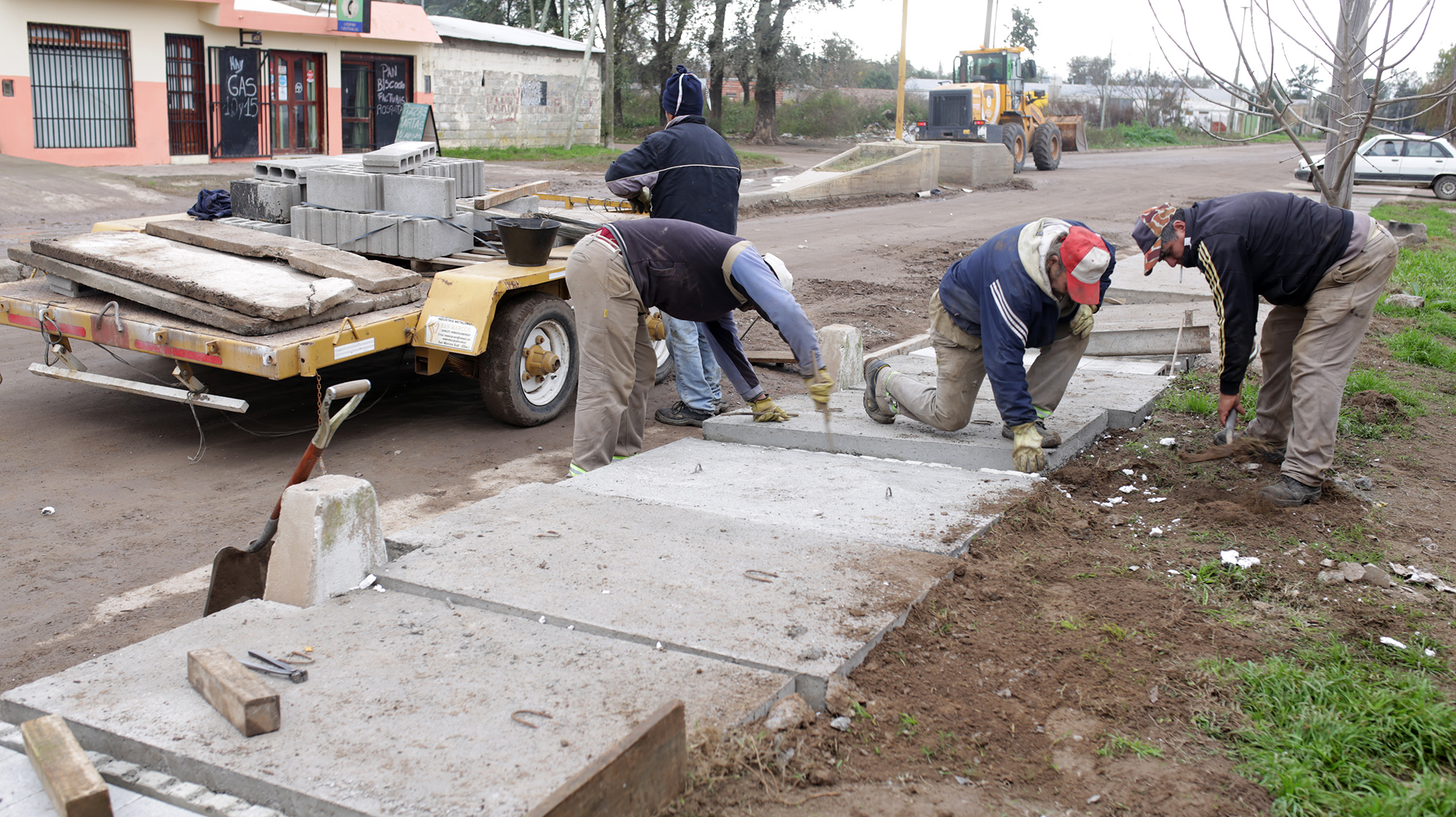 En la mañana de hoy empleados municipales continuaron con el emplazamiento de tapas de cemento en el desagüe del Bulevar Eva Perón. Por otra parte en el corralón municipal se continúa con la construcción de dichas tapas para culminar todo el recorrido del boulevard.
