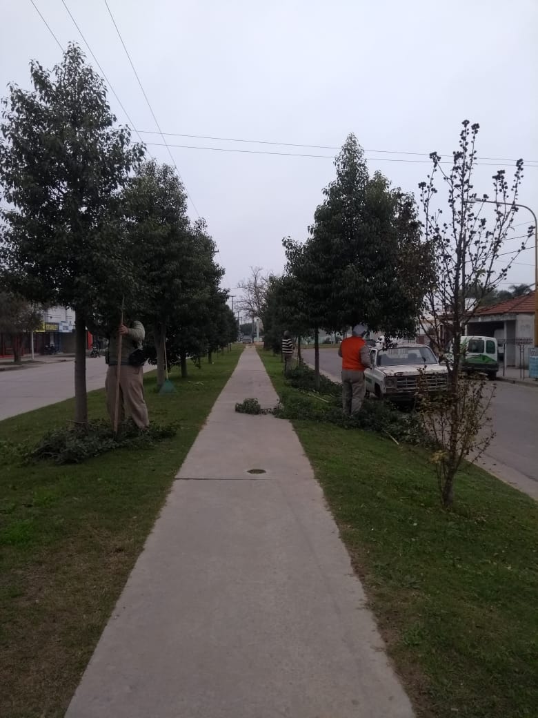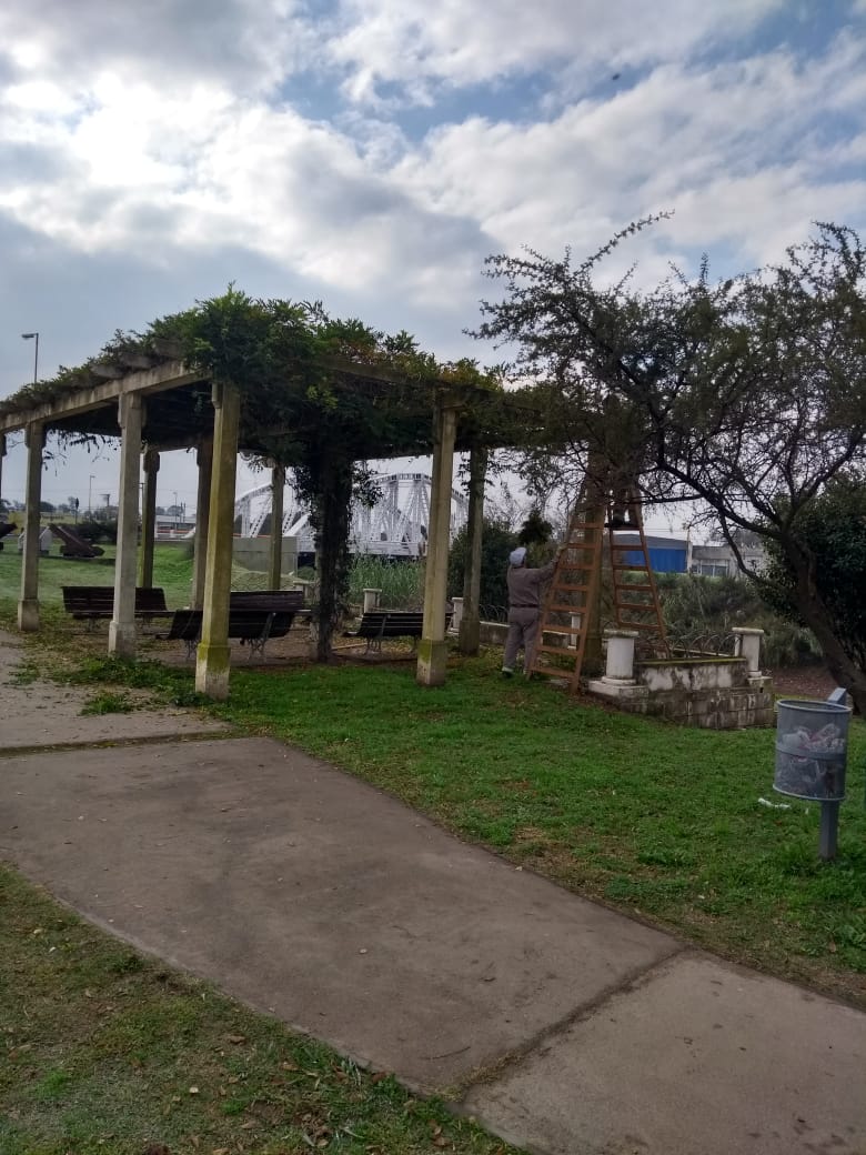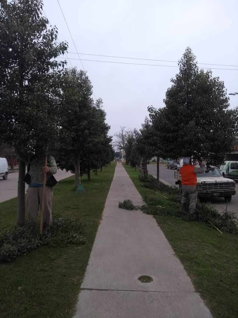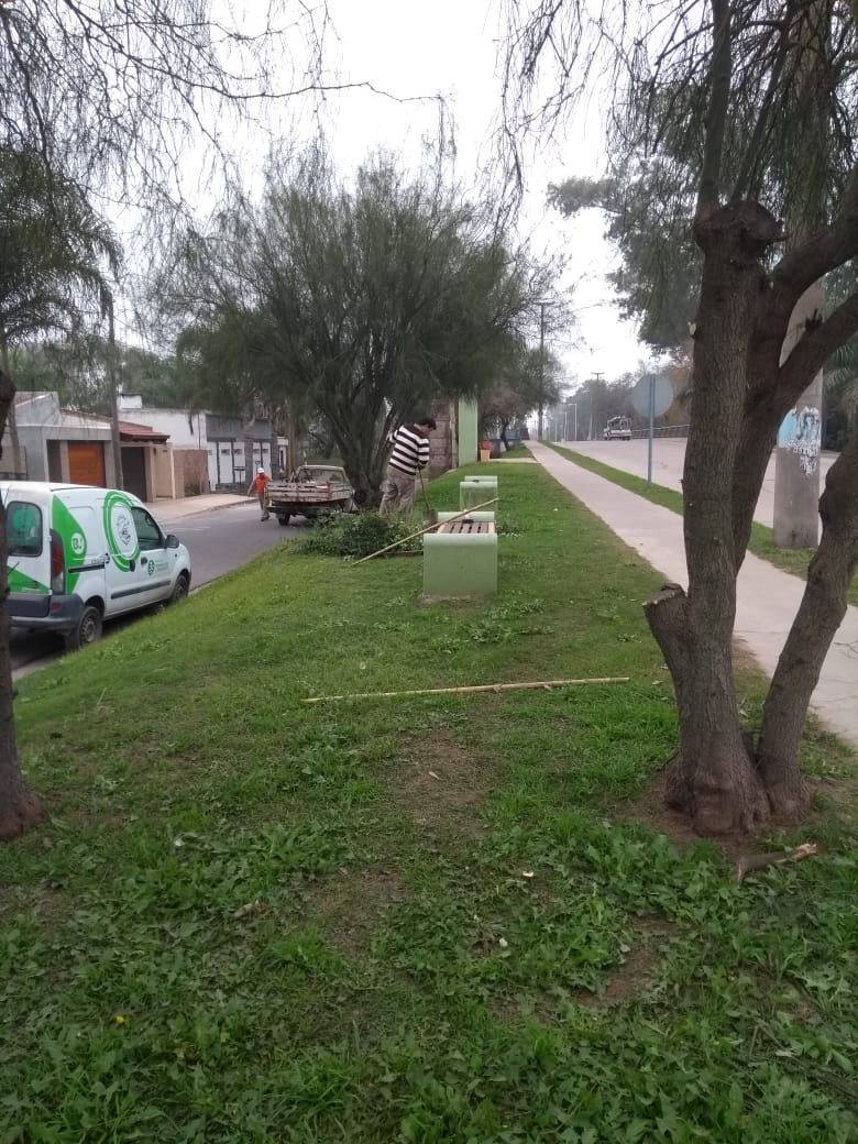 Poda, colocación de champas naturales y mantenimiento de los árboles fueron las acciones llevadas a cabo en el Barrio Portal del Río, Puente de la Historia y en la rotonda de Av. Sabattini.