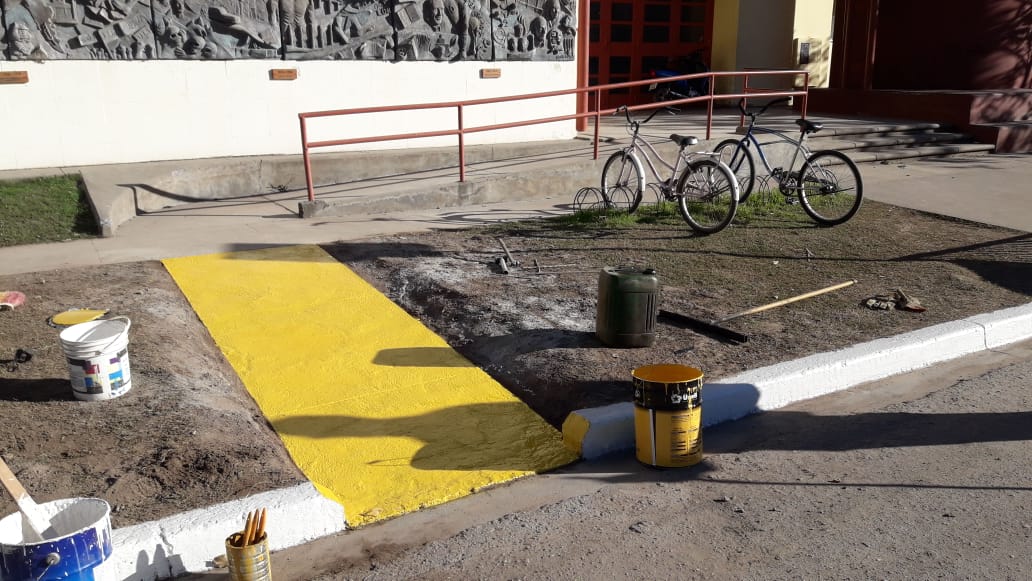 Además del nuevo acceso, se demarcaron nuevamente las zonas de estacionamiento y de la nueva rampa. Los trabajos estuvieron a cargo de personal municipal del Taller Vial.