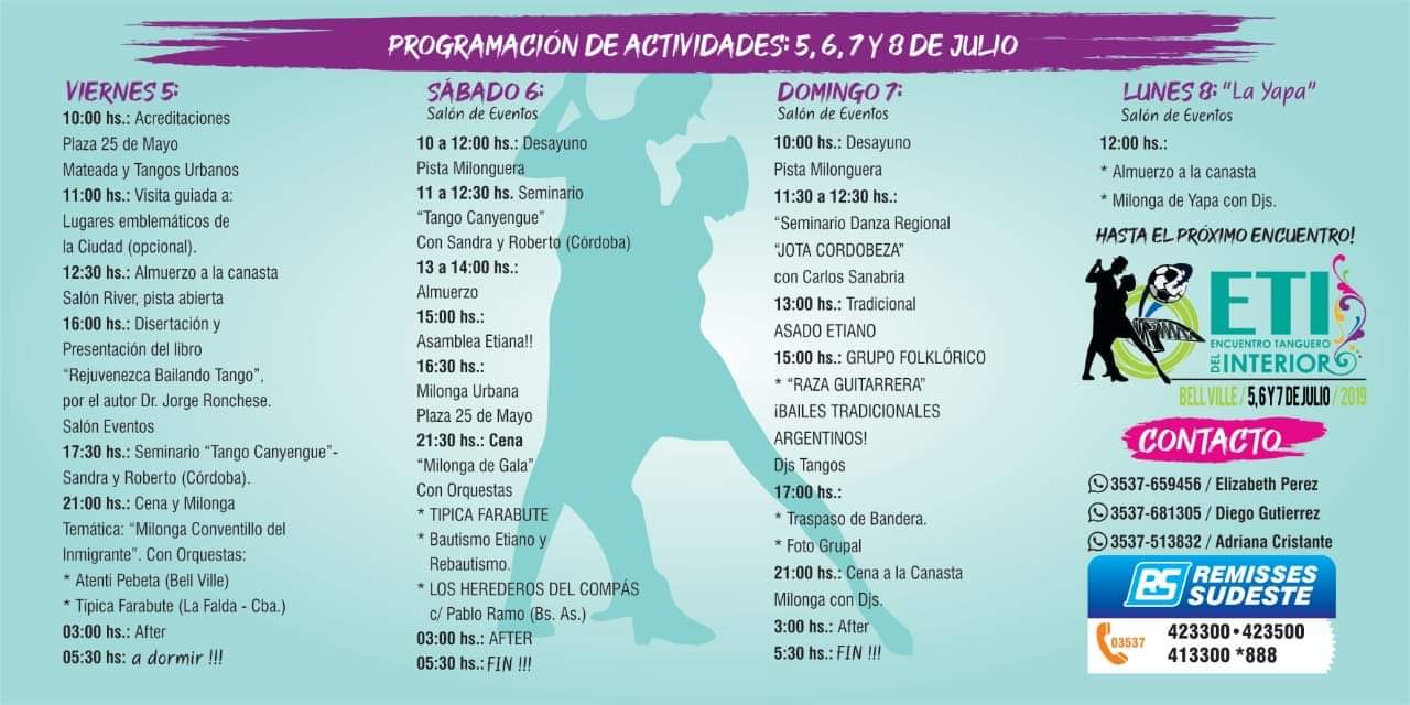 Entre el 5 y el 8 del próximo mes de julio, se desarrollará en nuestra ciudad el encuentro tanguero del interior del país, conocido como ETI.