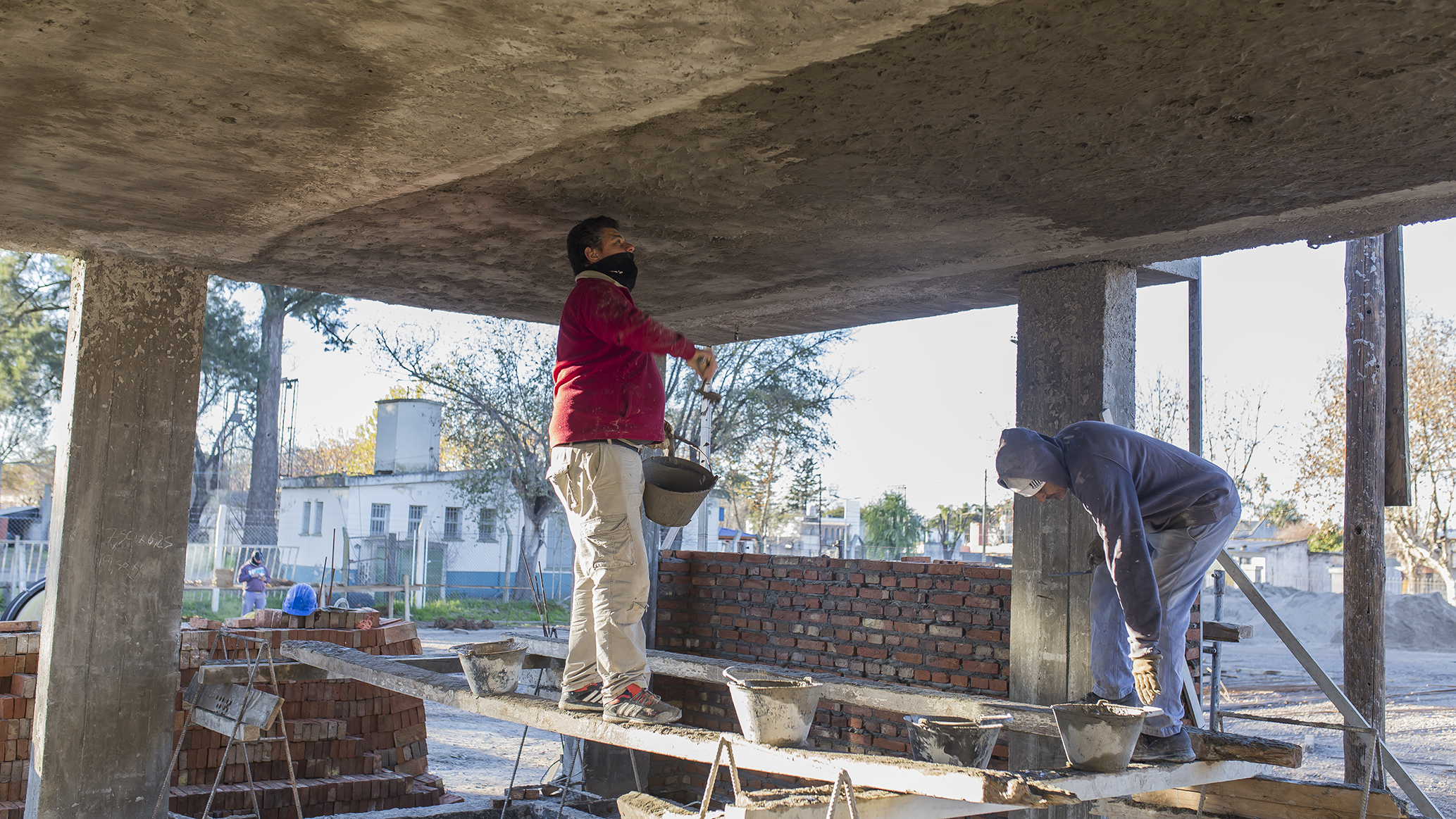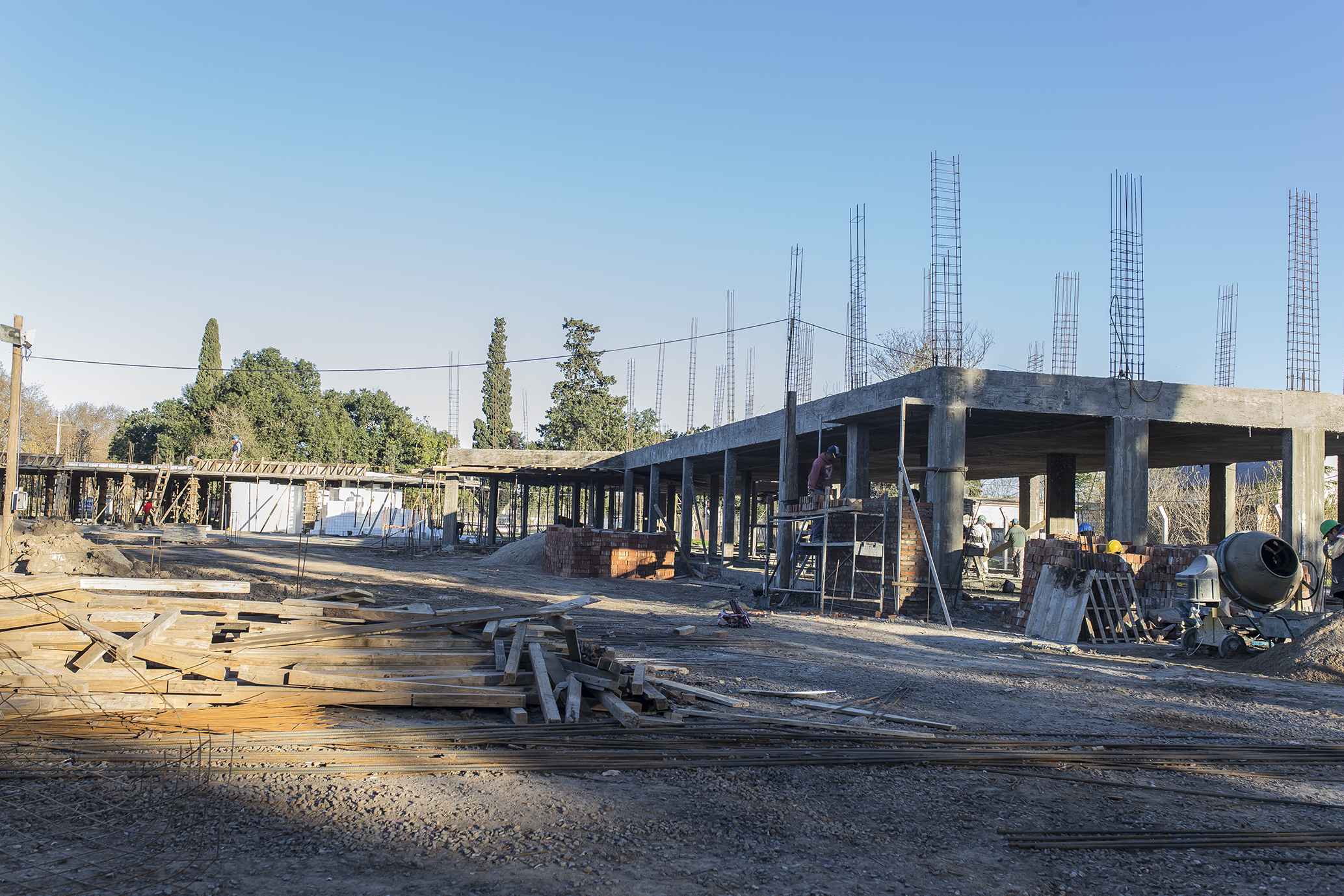 Continúa a buen ritmo la edificación de la sede propia del ISFD Profesorado Mariano Moreno, tarea a cargo de una empresa contratada por la Provincia a través de licitación pública.