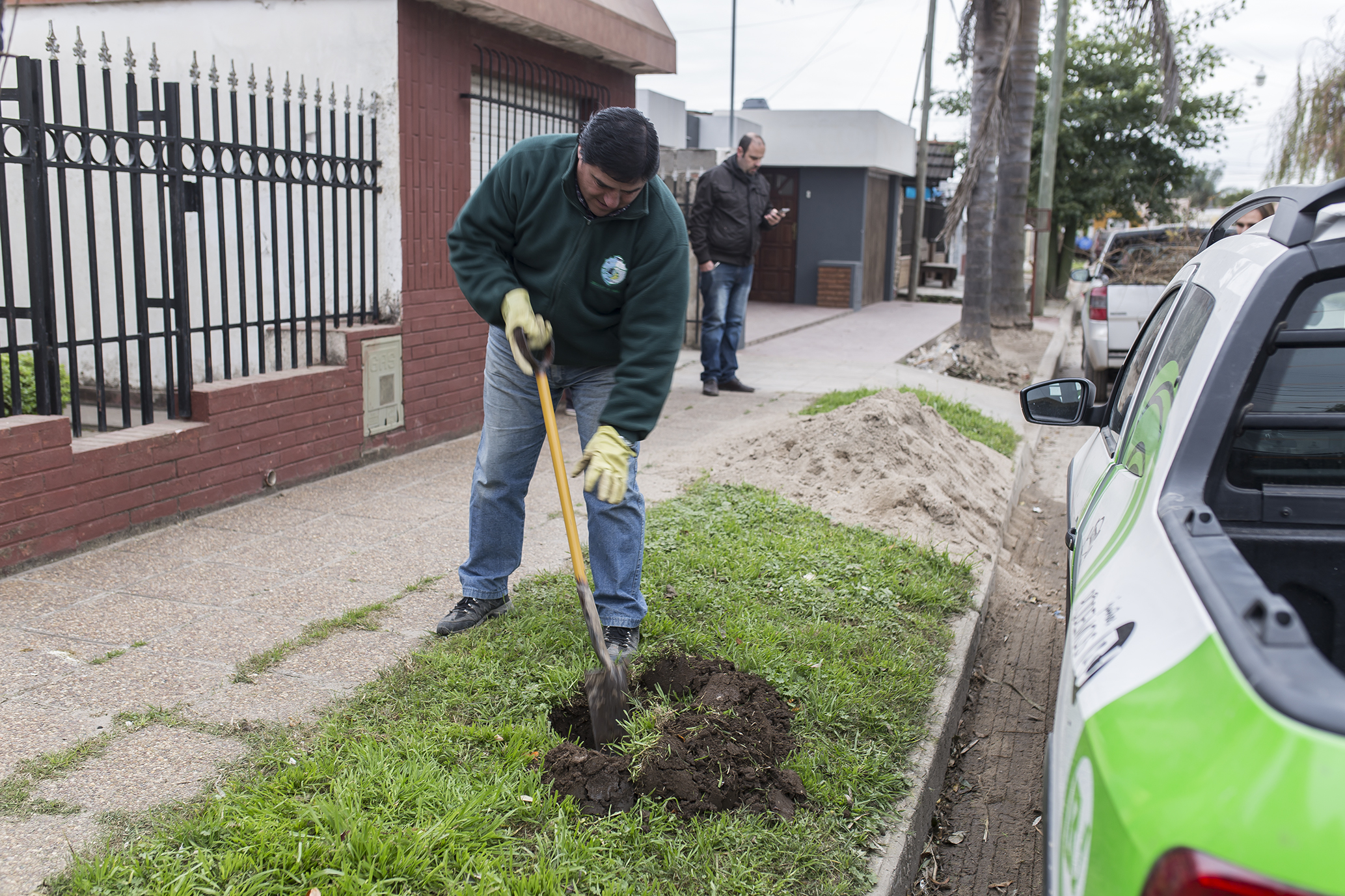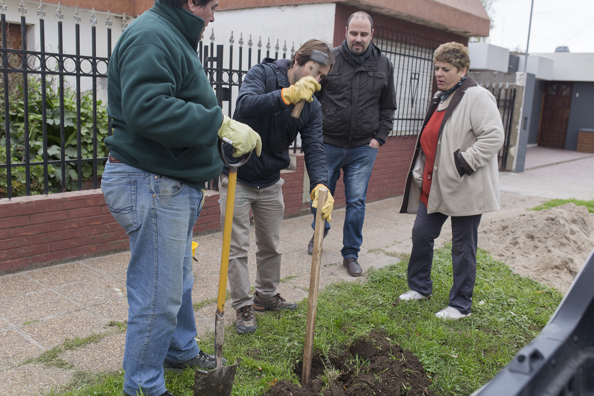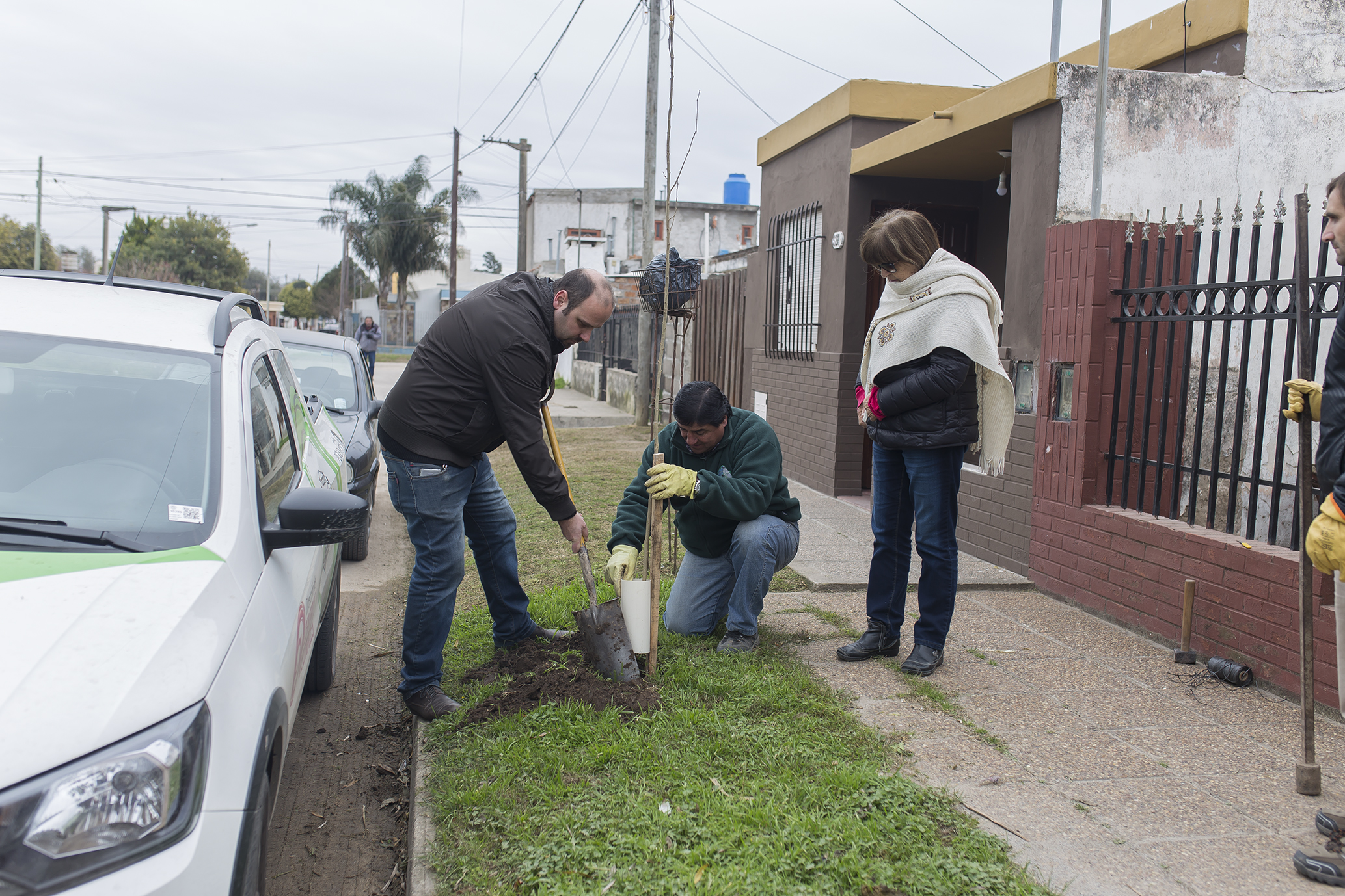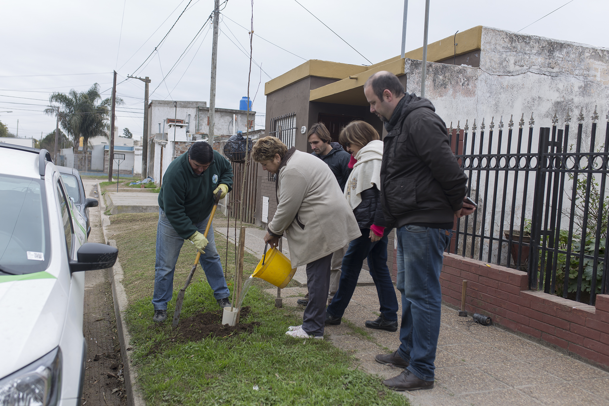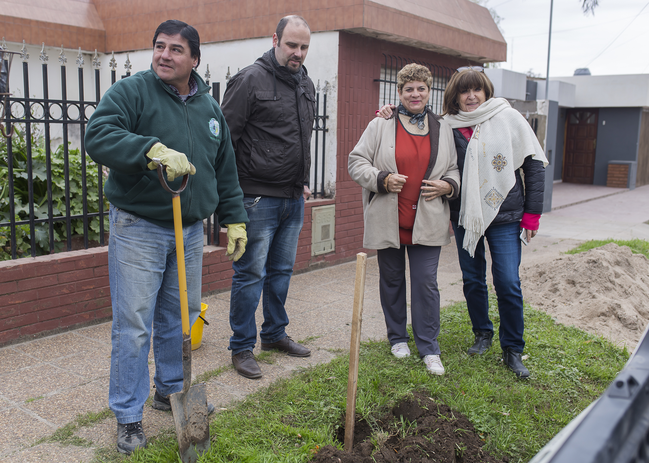 Se plantaron ejemplares frente a la vivienda de Pje. Lugones 525, participando la presidenta del Centro Vecinal, Sr. Miriam Acuña y los directores de Bromatología y Centros Vecinales, Ing. Ernesto Borrageros y Sra. Melva Sartor.