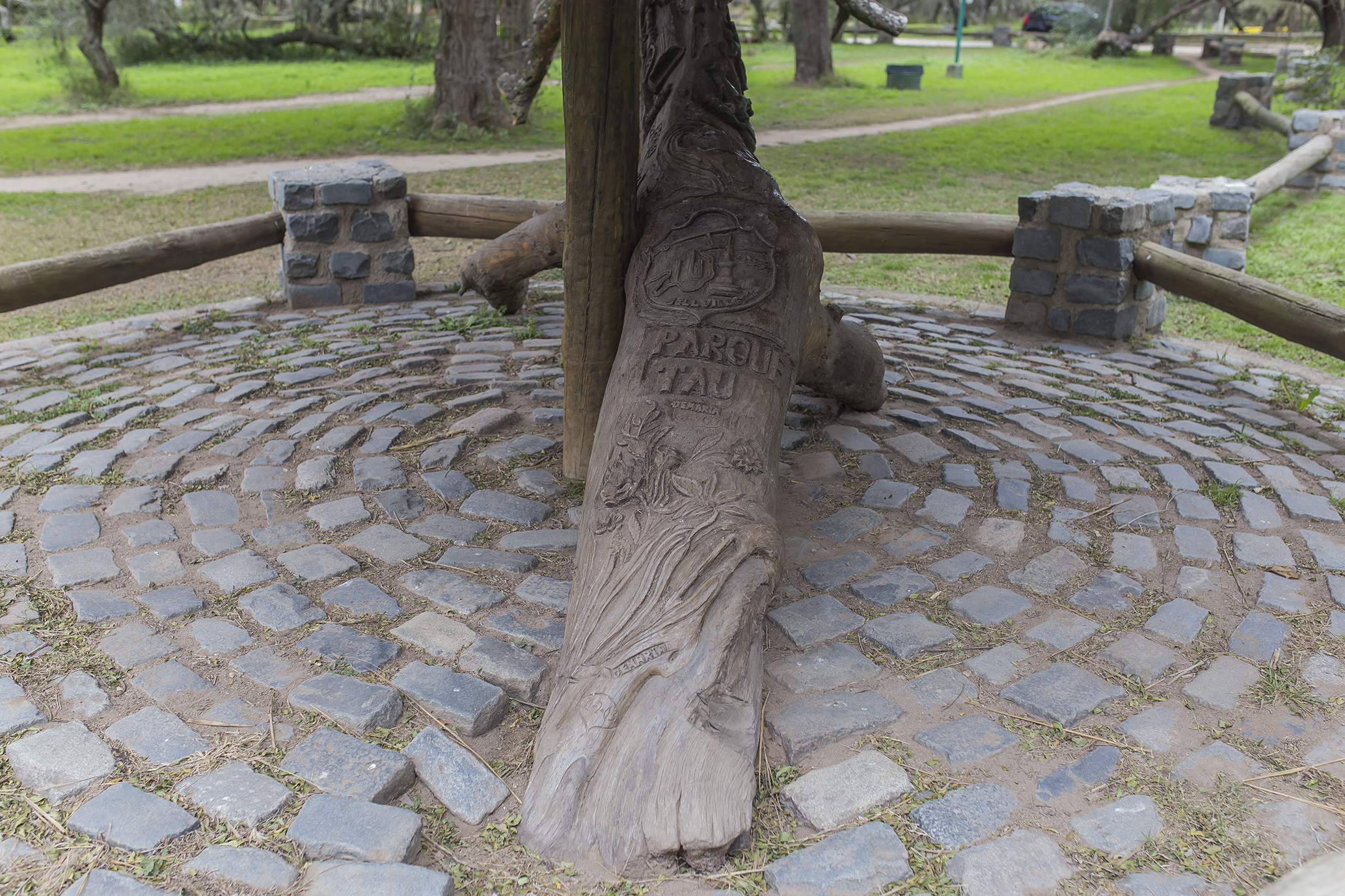 En la actualidad la obra del ebanista bellvillense Leonardo Demaría (1932-2009) que representa diversas temáticas, se encuentra en estado de abandono, evidenciándose falta de mantenimiento, deterioro por vandalismo y ausencia de carteles informativos, mientras que el techo que la recubre, compite con la obra en su verticalidad, está arruinado y no la protege. No obstante, el tallado sobre el algarrobo se encuentra en buen estado.