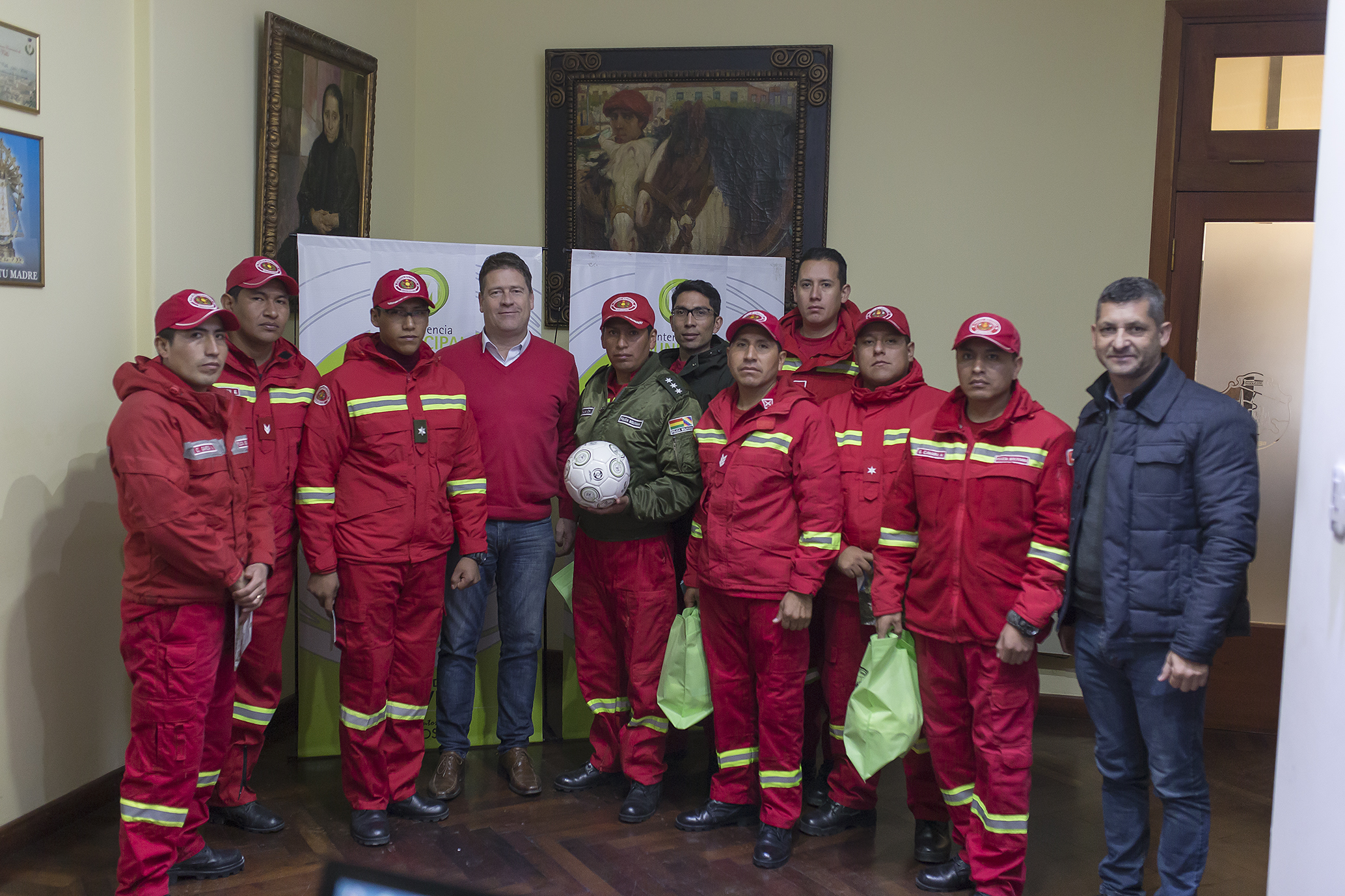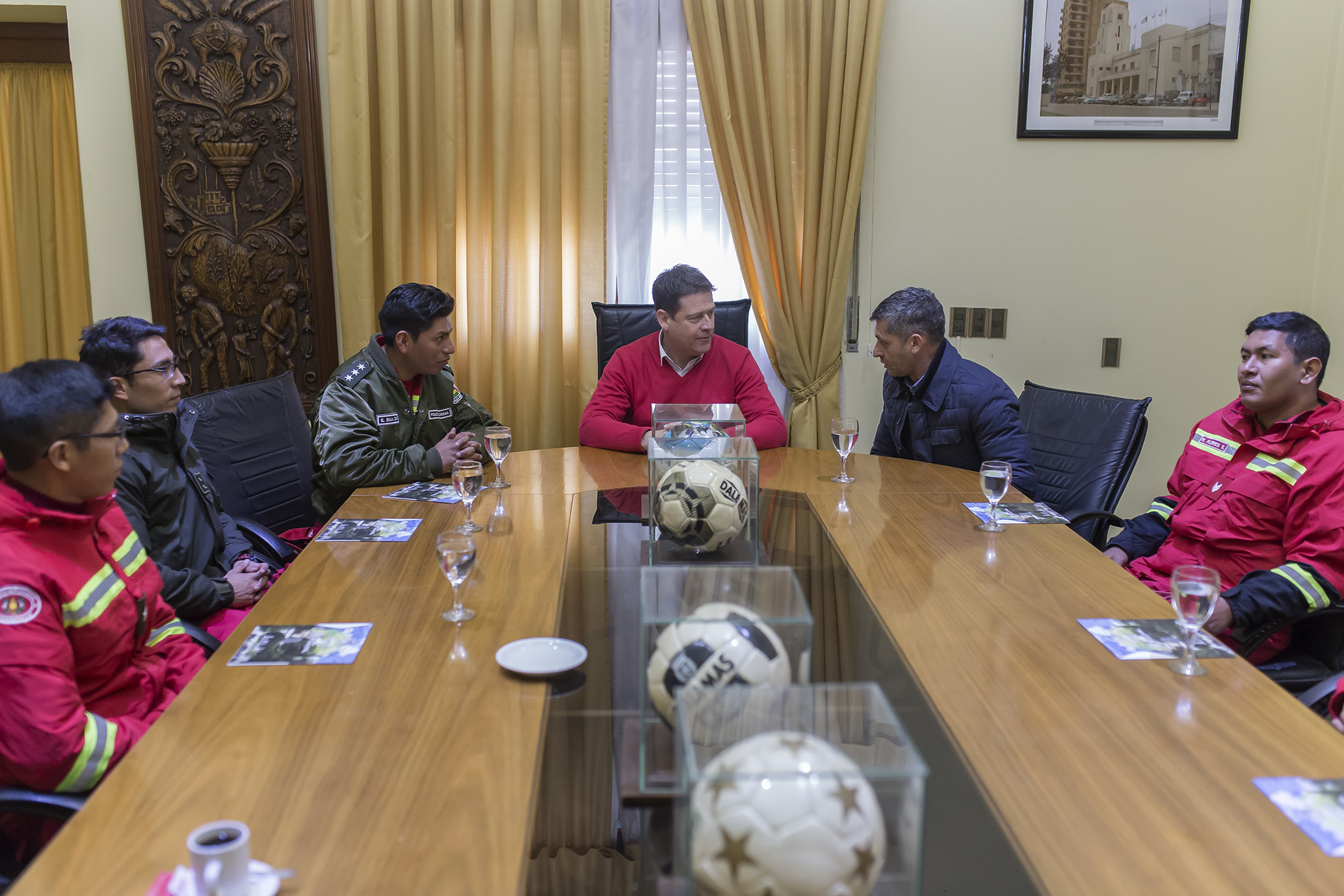 Este mediodía, el intendente municipal, Dr. Carlos Briner, recibió el saludo de efectivos de la Dirección Nacional de Bomberos de la Policía Nacional del Estado Plurinacional de Bolivia, que están participando de capacitaciones dictadas en nuestra ciudad por Bomberos Voluntarios locales.