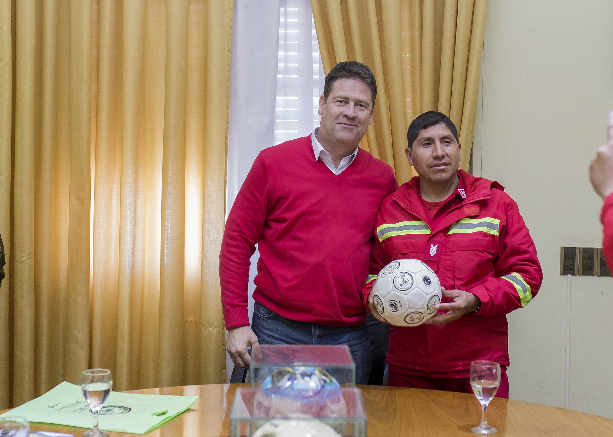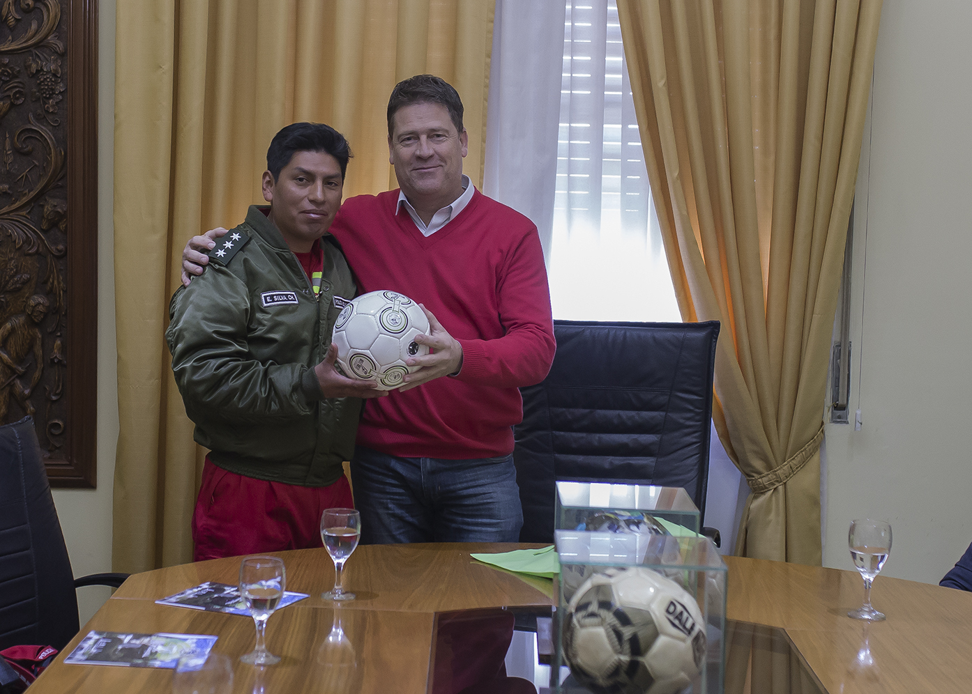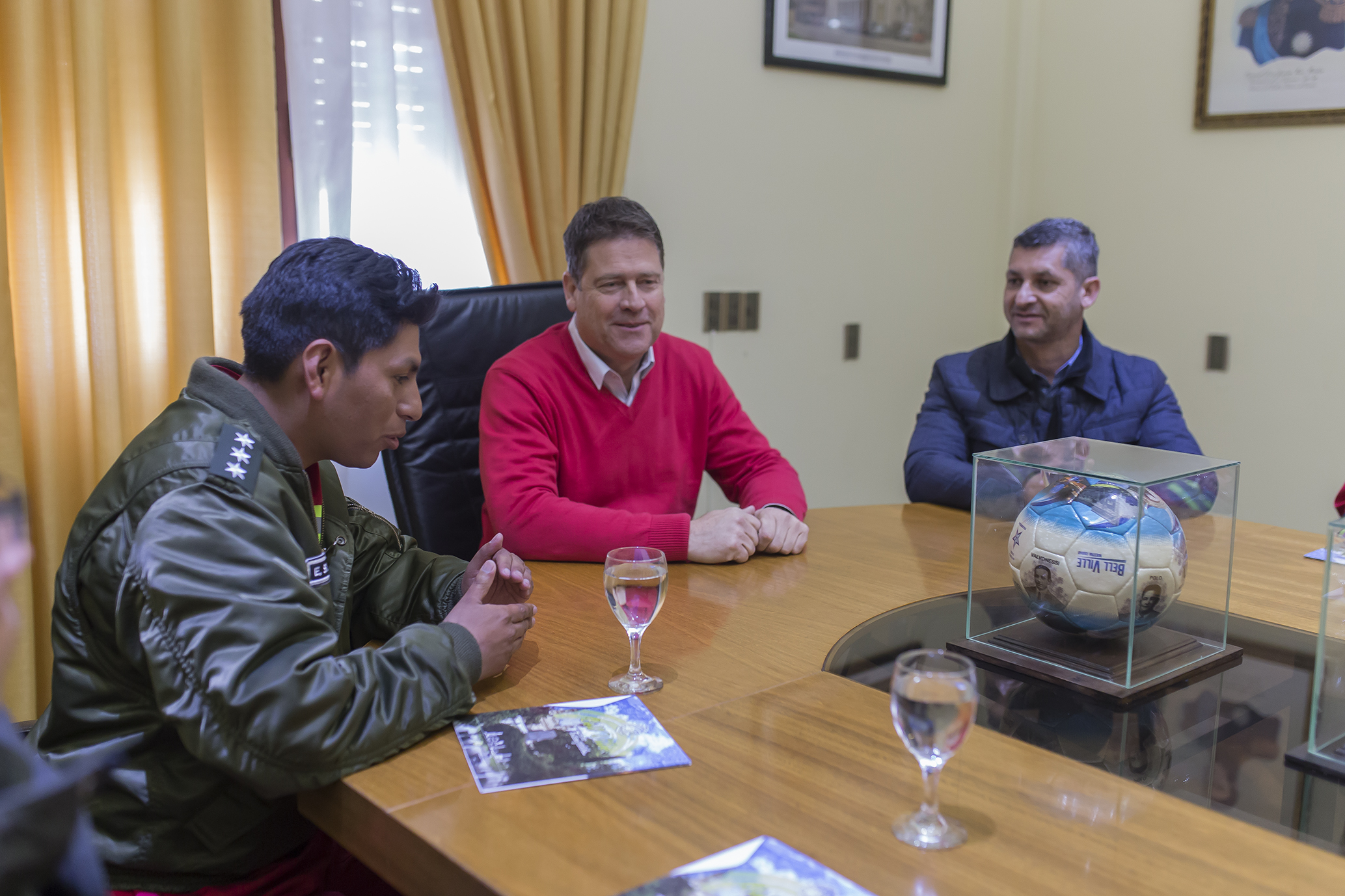 En un diálogo cordial, el Dr. Briner entregó folletería y balones deportivos que identifican a nuestra ciudad como Capital Nacional de la Pelota de Fútbol.