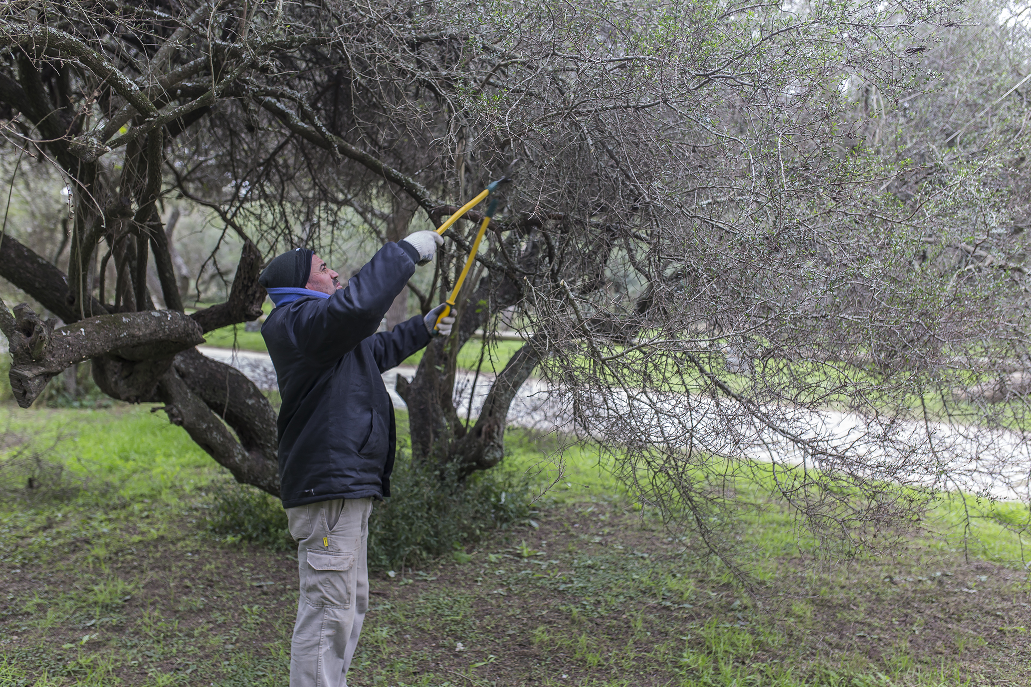Personal especializado que cumple funciones en la reserva natural, está llevando a cabo la poda correctiva anual en especies arbóreas del Parque Tau.