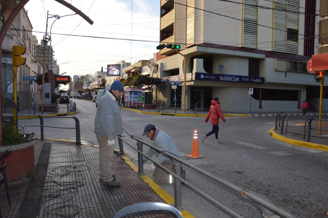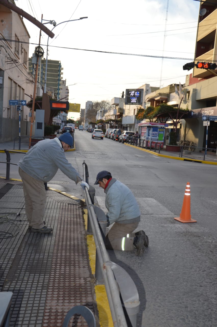 Las barandas existentes en la zona céntrica de calle Córdoba, están siendo objeto de reparaciones y pintado.