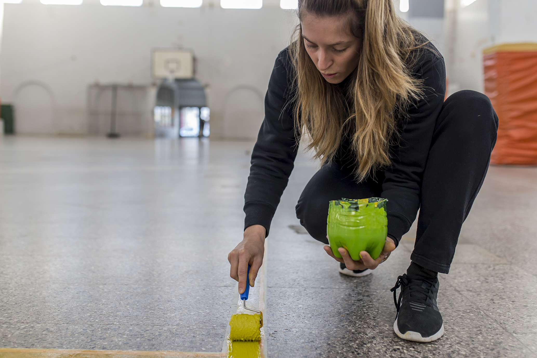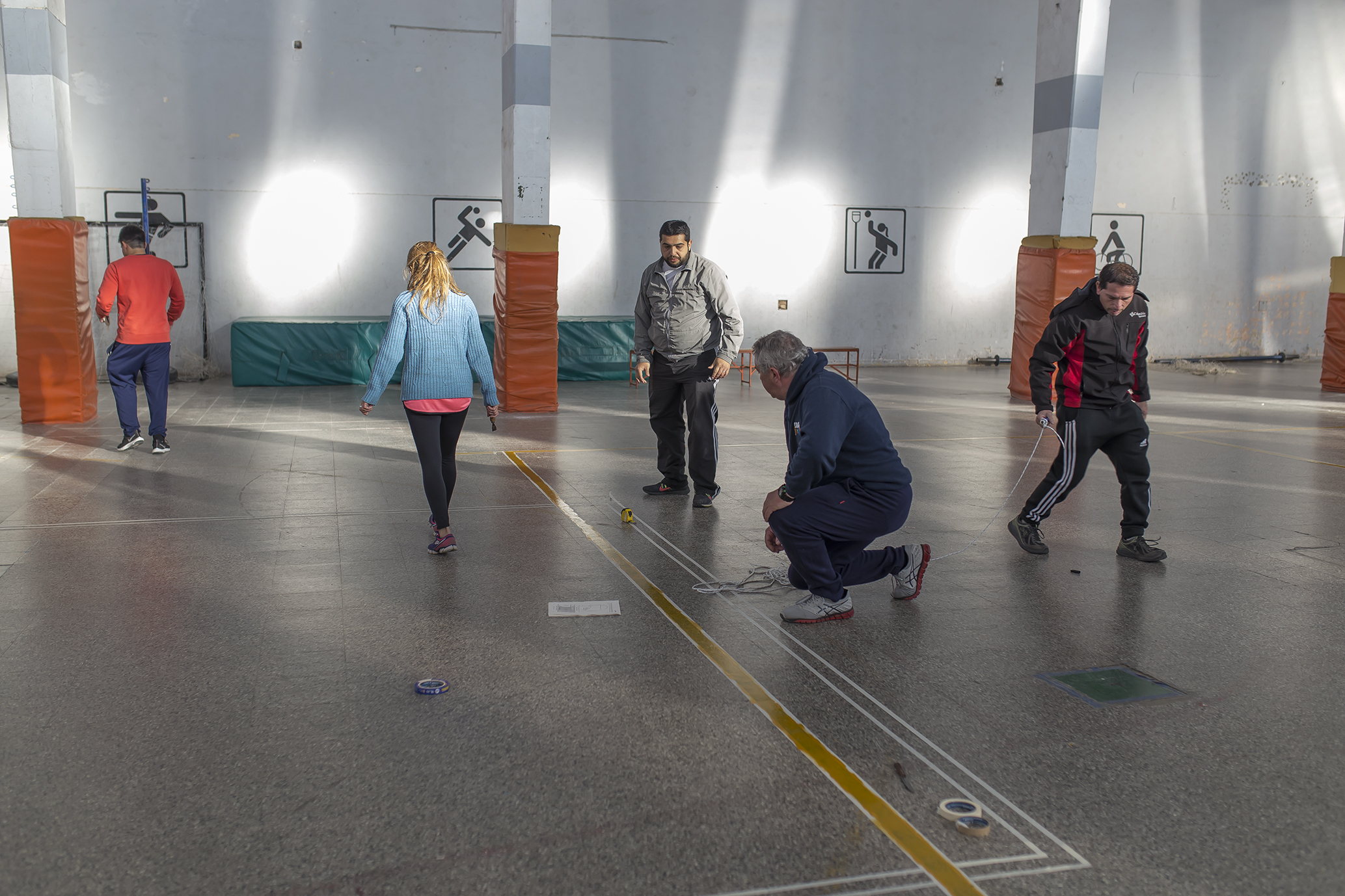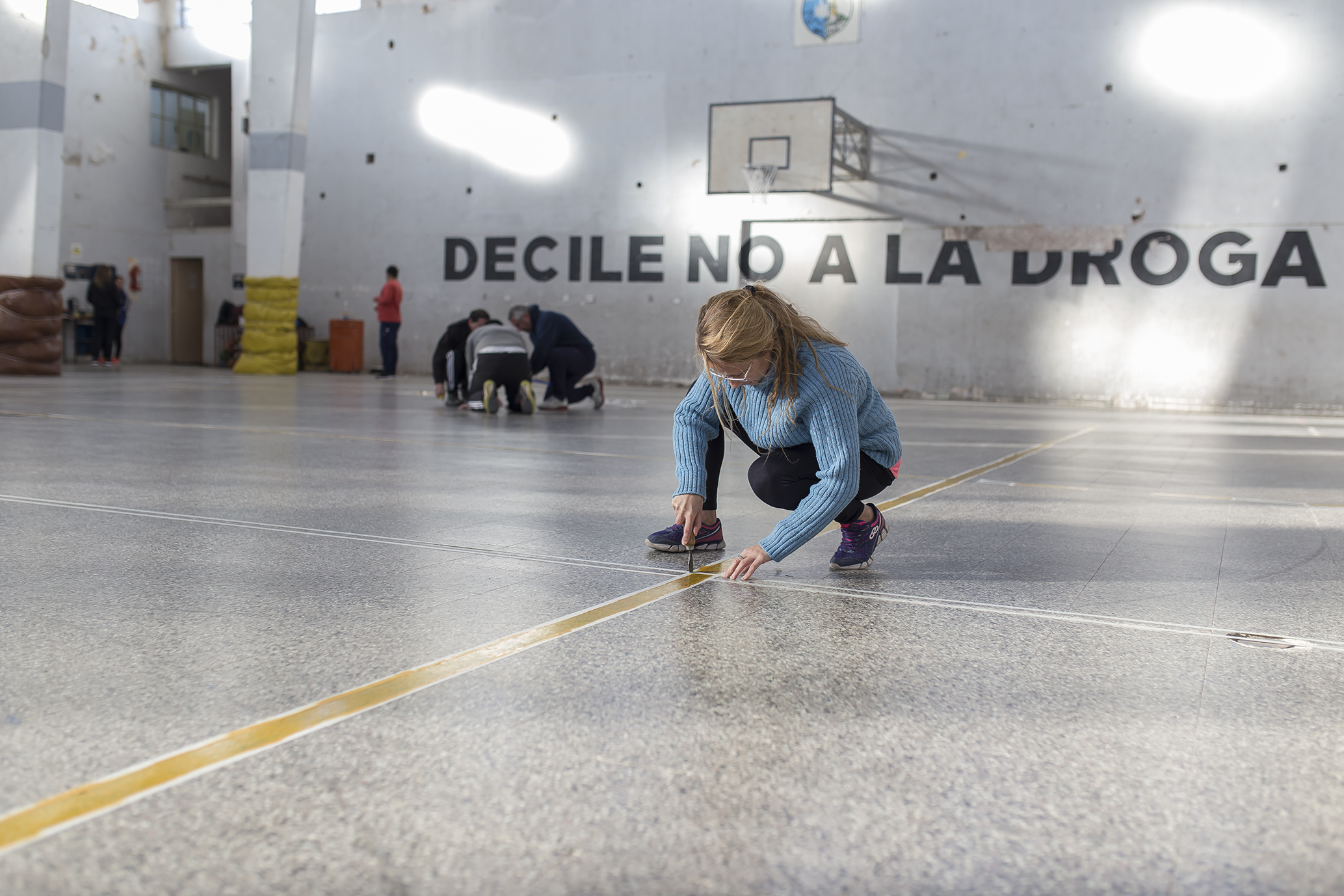 A fin de poder adaptarlo a cada disciplina deportiva que se practica en el lugar, personal de la dirección de Deportes, pintó los sectores correspondientes en el Salón de Usos Múltiples que el municipio posee en calle Tucumán.