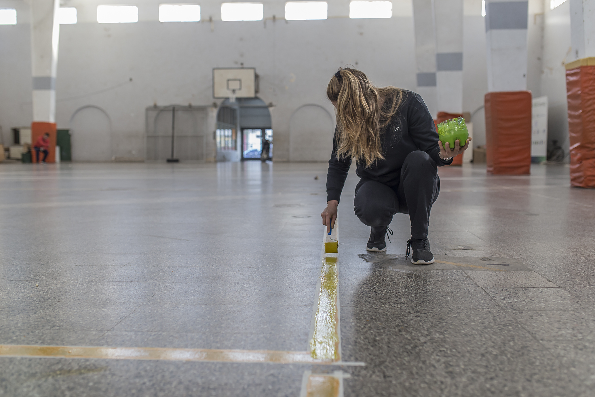 Pintado de la cancha del Salón Municipal de calle Tucumán.