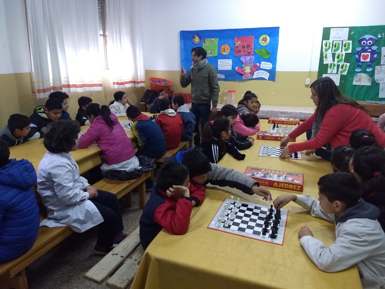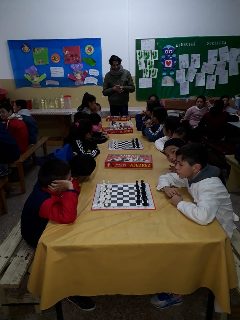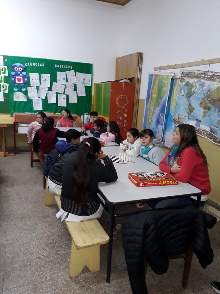 Autoridades municipales y el profesor Fernando Urquiza acercaron información a los pequeños y sus maestros, de este trabajo conjunto de las áreas de Deportes y Centros Vecinales que aspira a llegar con la valiosa disciplina a sectores sensibles de nuestra comunidad. La propuesta de una demostración simultánea en el aula captó sumo interés en su pretensión de estimular el descubrimiento del ajedrez y sus beneficios.