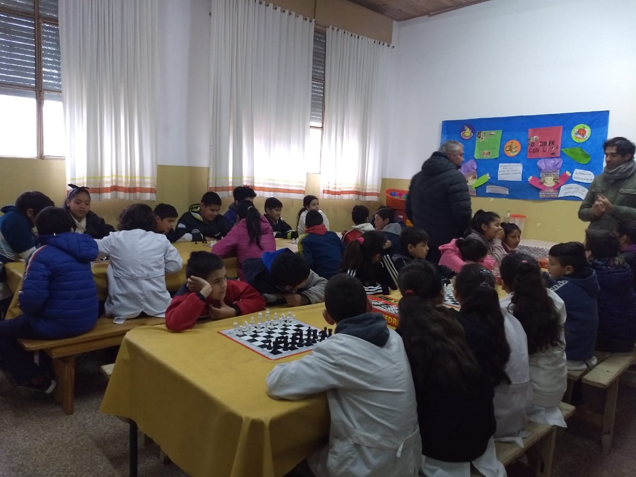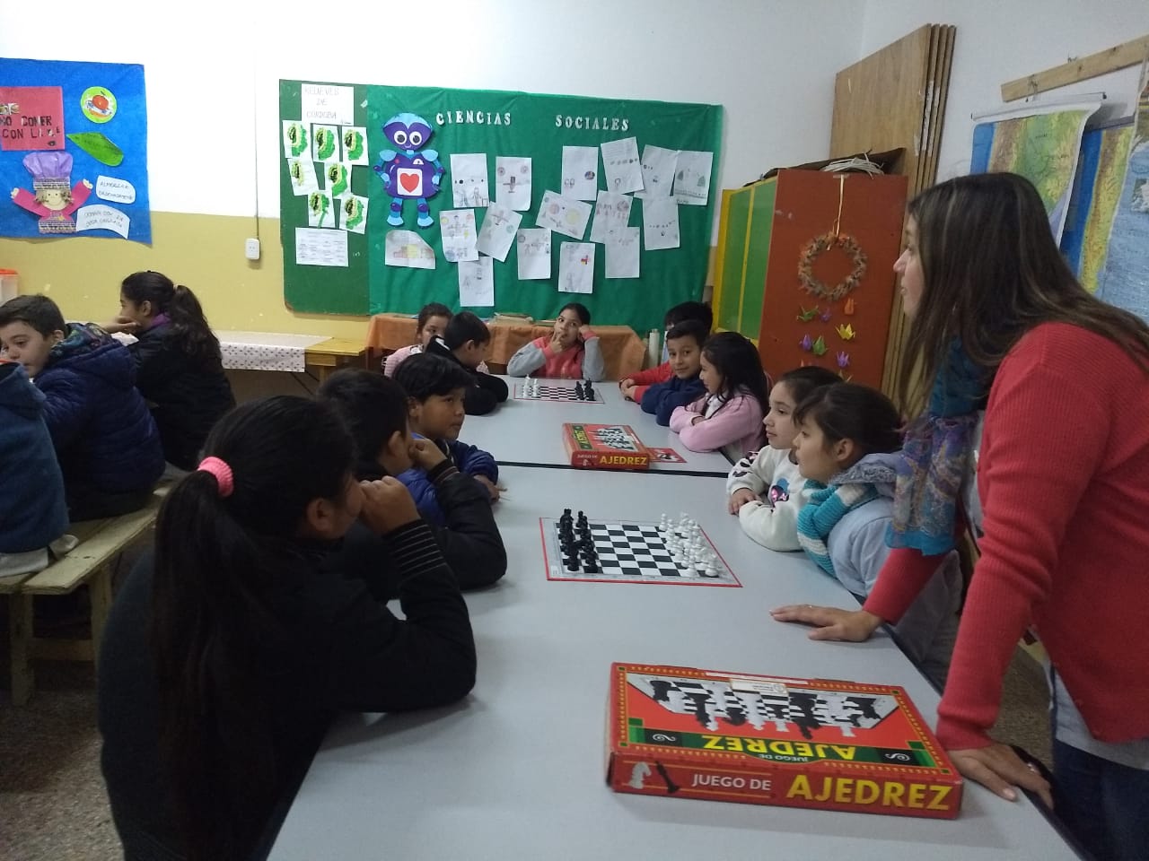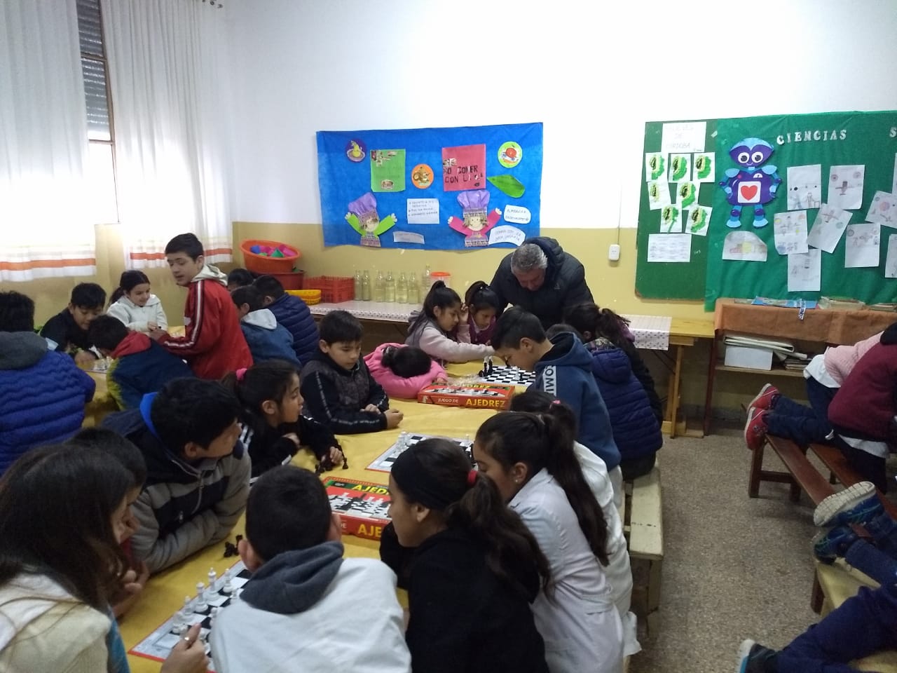 Autoridades municipales y el profesor Fernando Urquiza acercaron información a los pequeños y sus maestros, de este trabajo conjunto de las áreas de Deportes y Centros Vecinales que aspira a llegar con la valiosa disciplina a sectores sensibles de nuestra comunidad. La propuesta de una demostración simultánea en el aula captó sumo interés en su pretensión de estimular el descubrimiento del ajedrez y sus beneficios.