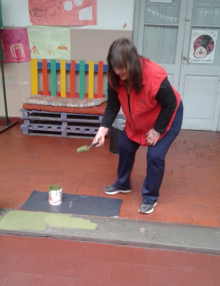 La Municipalidad y la Provincia, a través del FODEMEEP, proveyeron el material necesario para los revoques (arena, cal y cementos), como así también la pintura para las paredes.