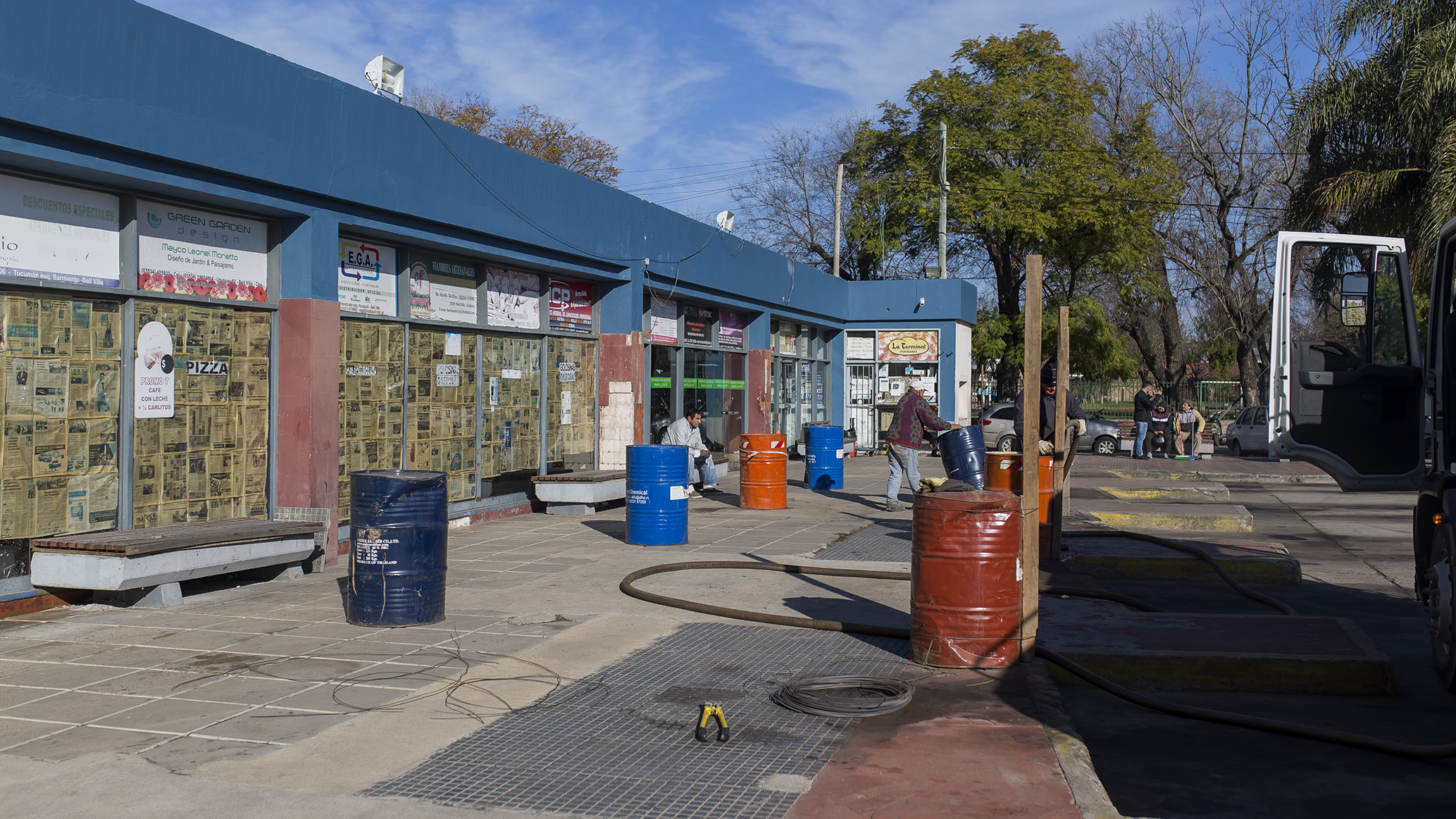 Aprestos para el alero de la Terminal de Ómnibus.