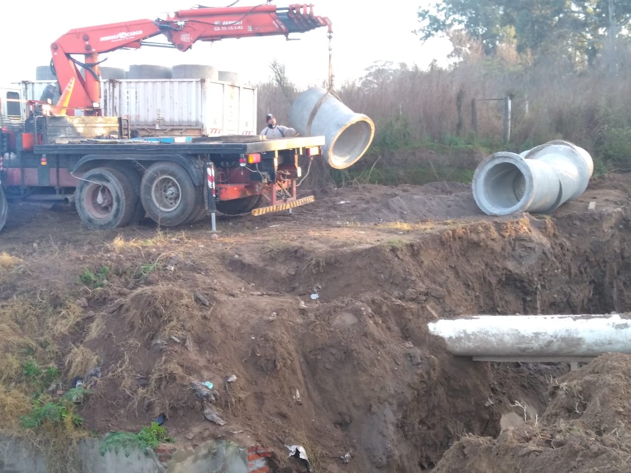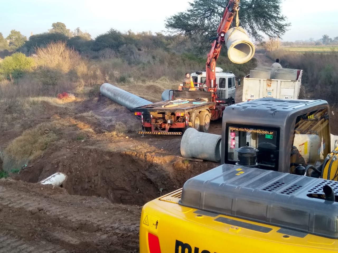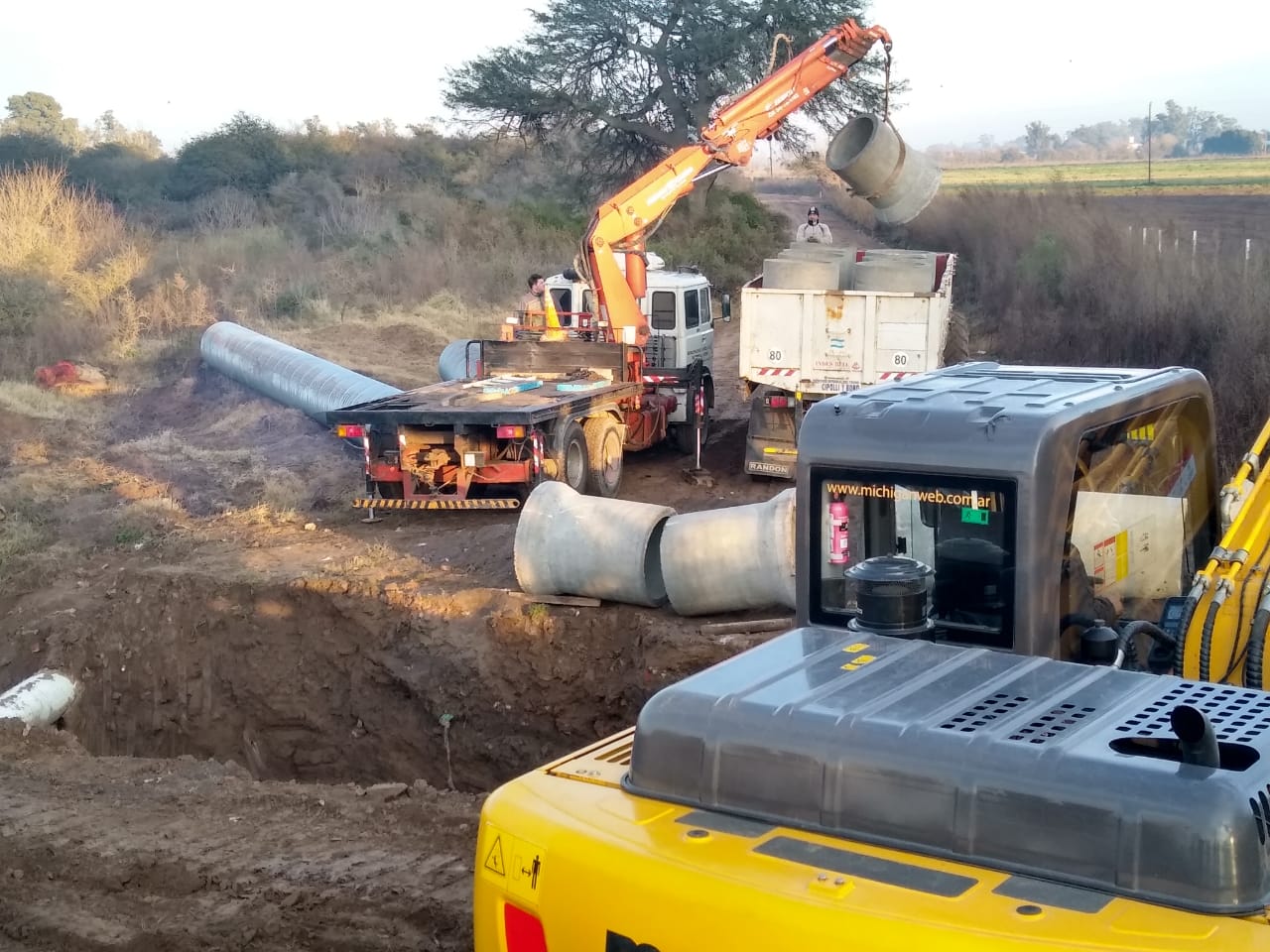 Prosigue la colocación de ductos de mayor capacidad en la parte final del canal de calle Chubut que desagua en el río Ctalamochita.