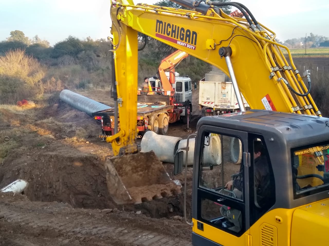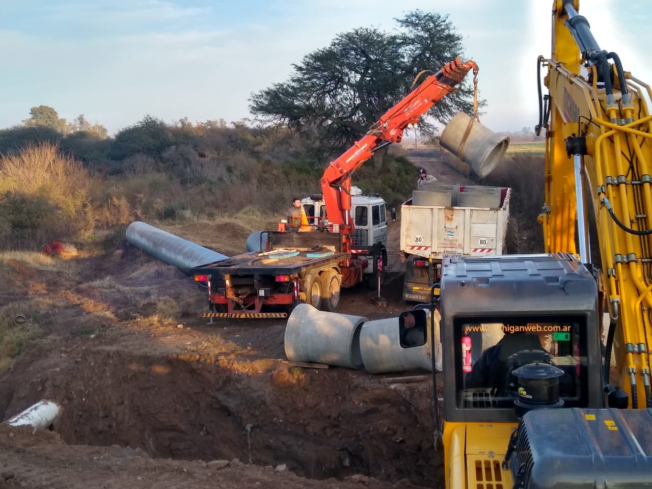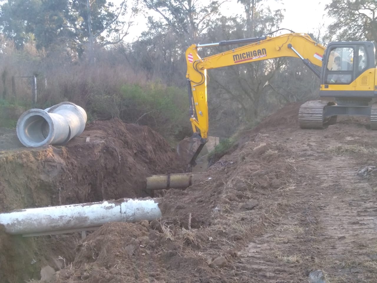 Prosigue la colocación de ductos de mayor capacidad en la parte final del canal de calle Chubut que desagua en el río Ctalamochita.