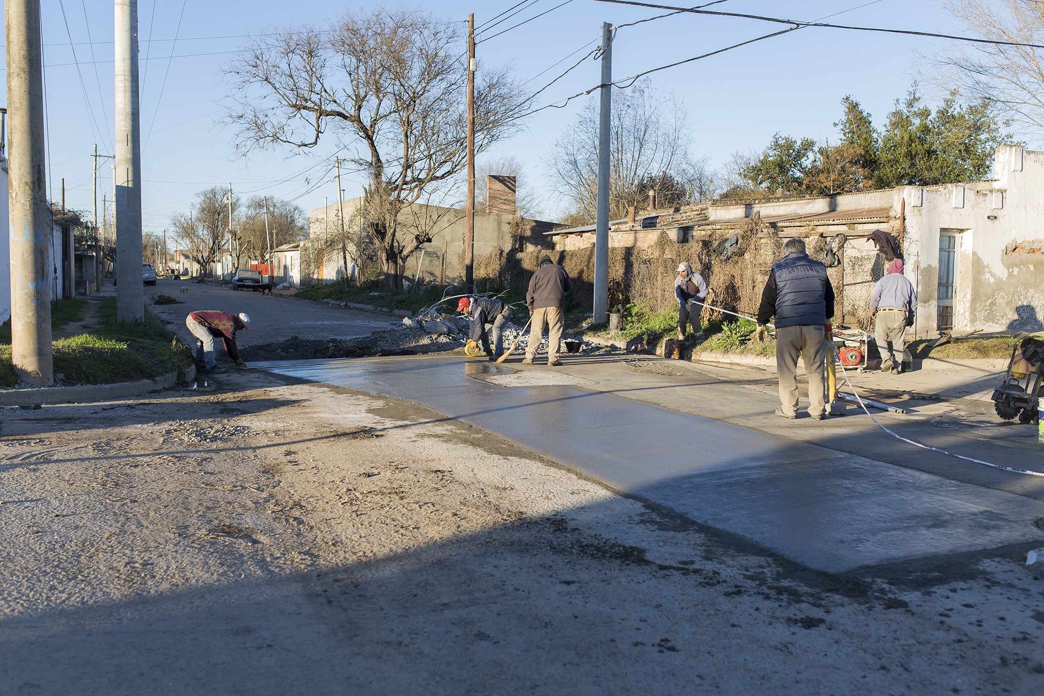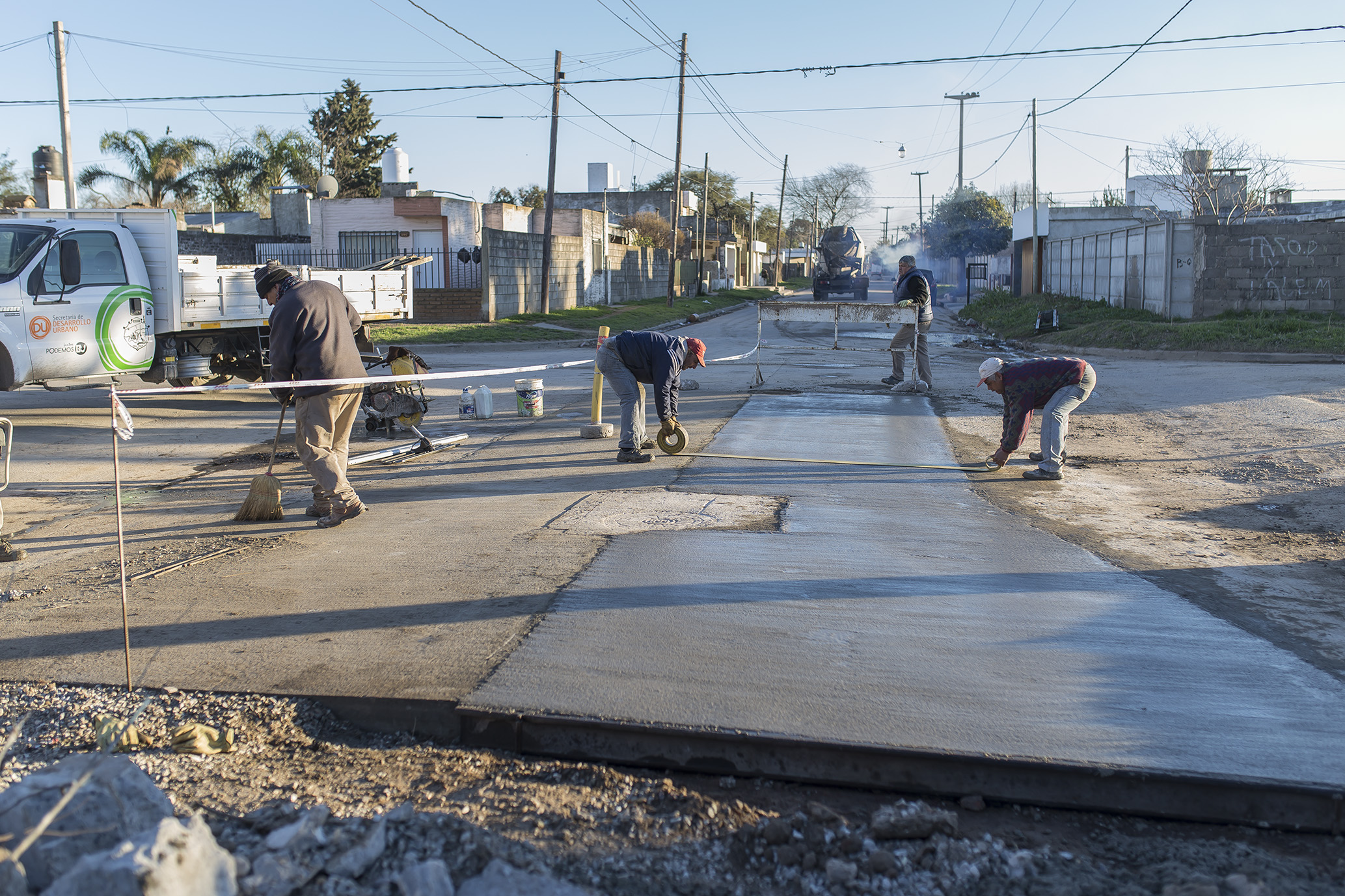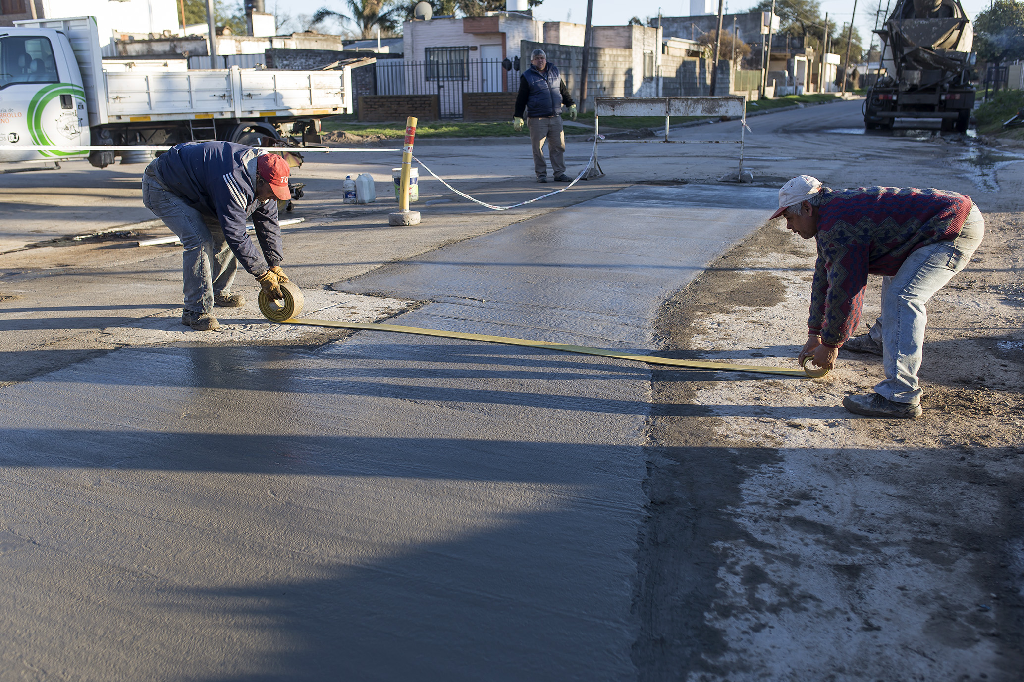Culminado el relleno con hormigón, finalizó el trabajo de reparación de la bocacalle de bulevar Maipú y Constitución.