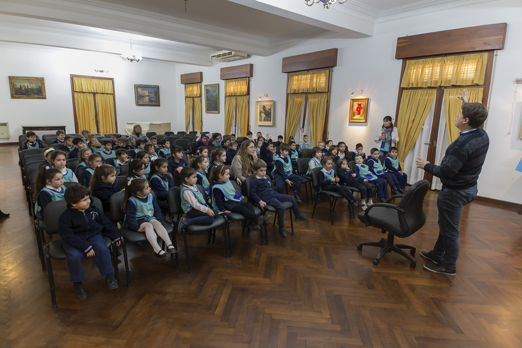 El jefe municipal, por su parte, saludó a cada uno de los niños y sus docentes y entregó el símbolo de la Capital Nacional de la Pelota de Fútbol para que se luzca en un lugar de la sala.