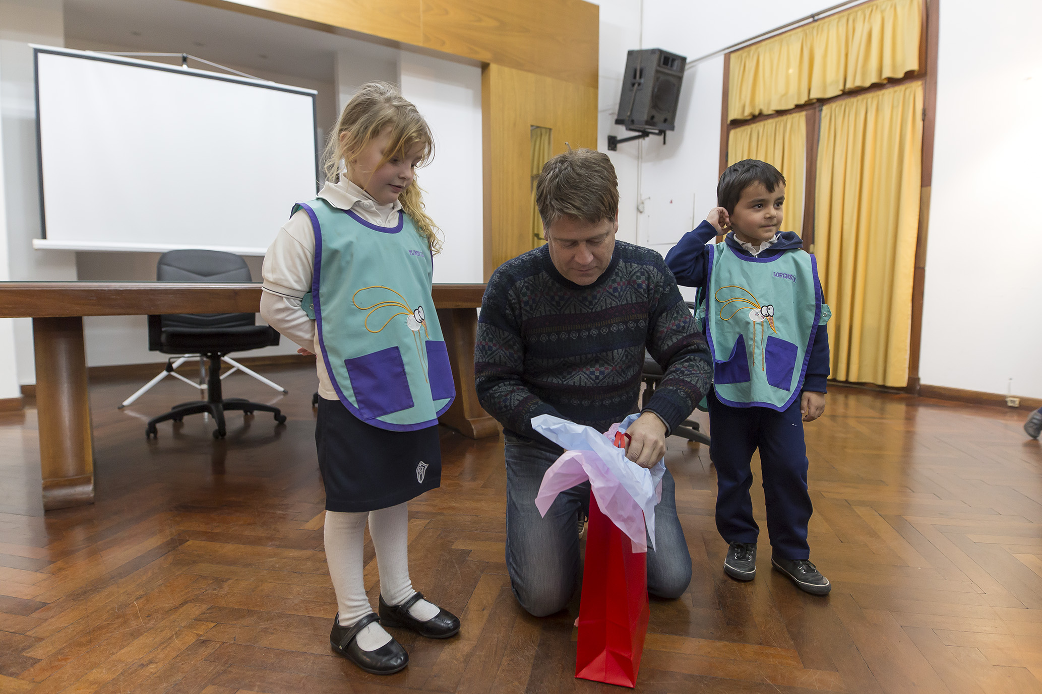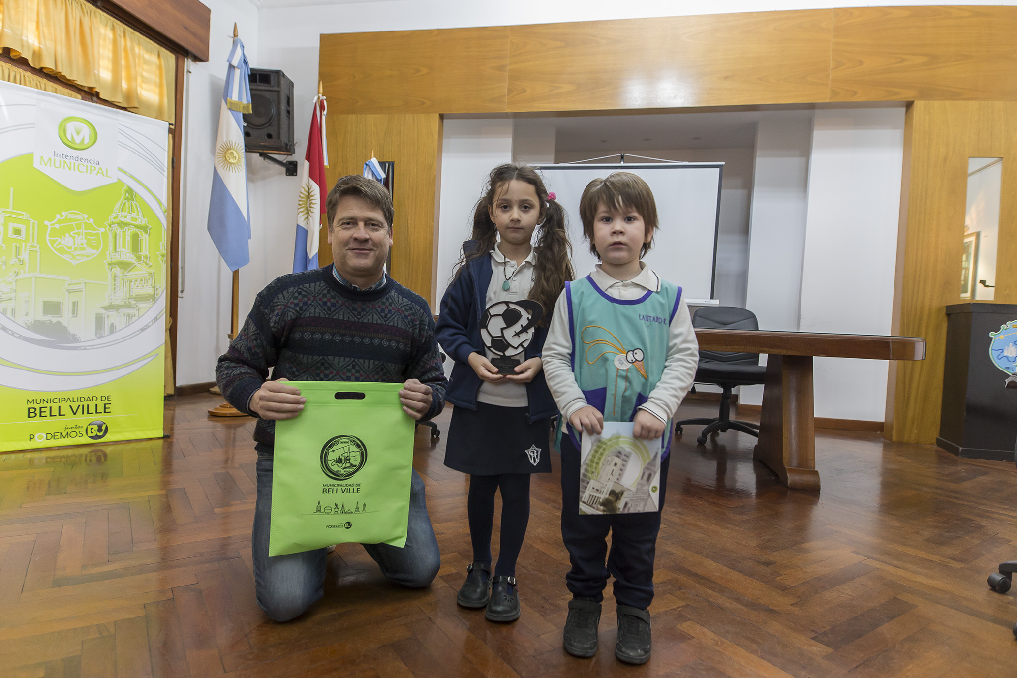 Aparte de entregarle un presente, los pequeños le hicieron varias preguntas sobre la ciudad, ecología y otras de importancia que hacen al interés por el ámbito local.