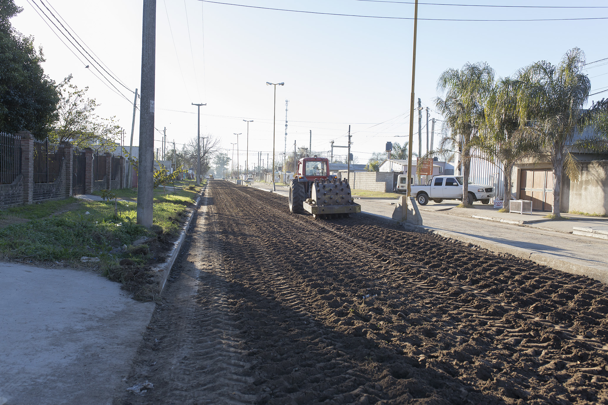 El nivelado, compactado e incorporación de áridos se cumple en bulevar Eva Perón.