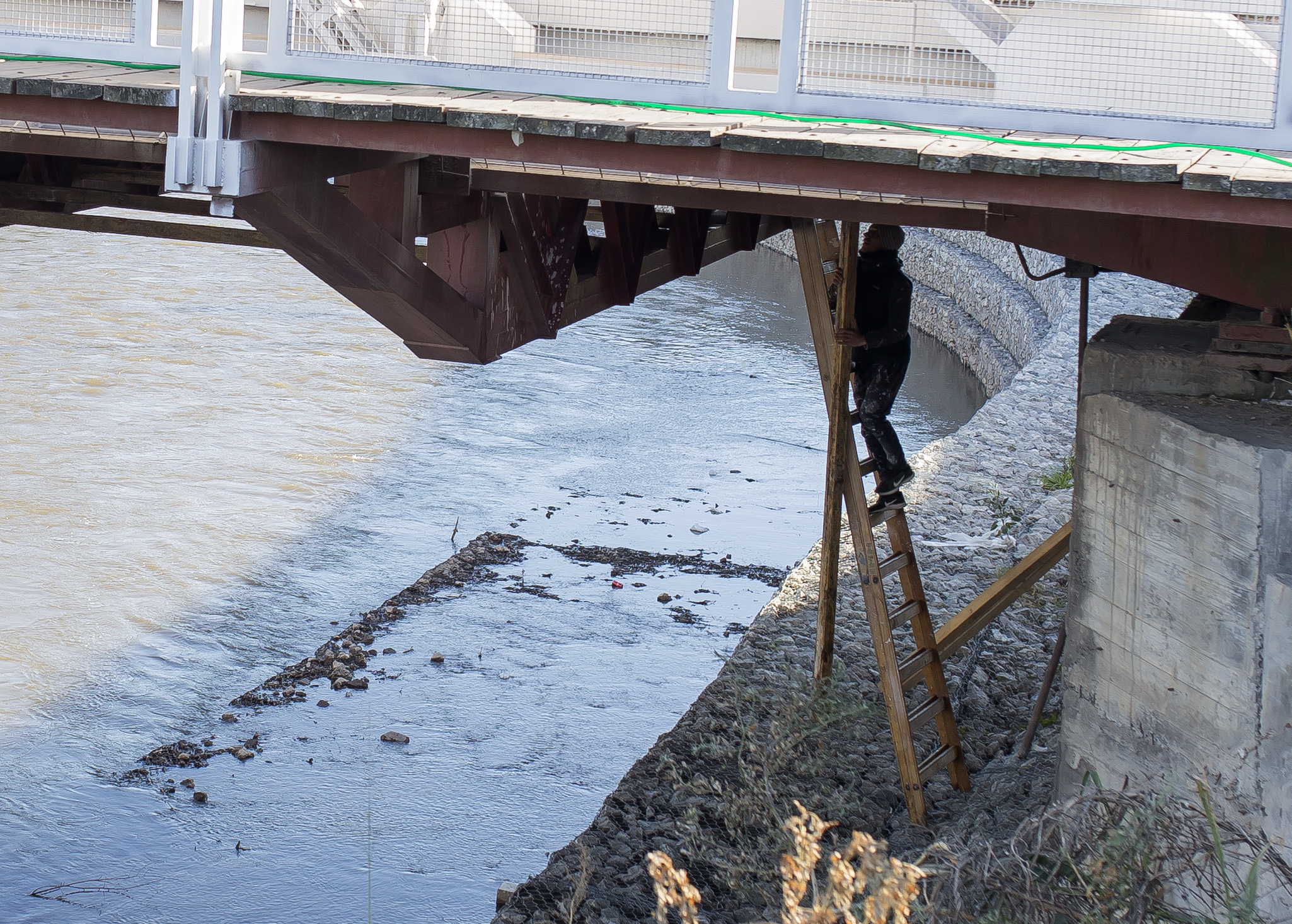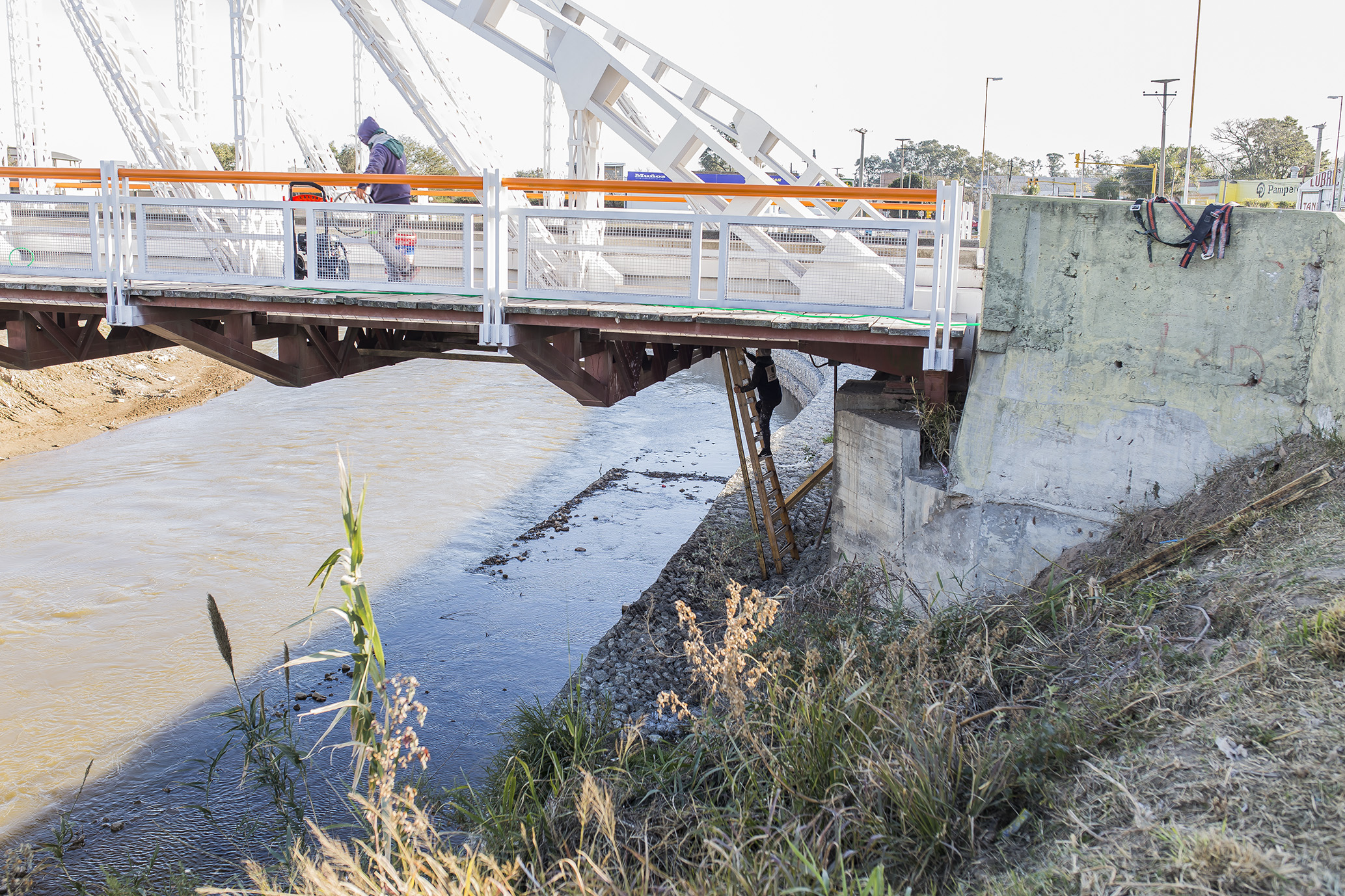 Se están cumpliendo tareas de inspección y mantenimiento en toda la base del Puente de la Historia.