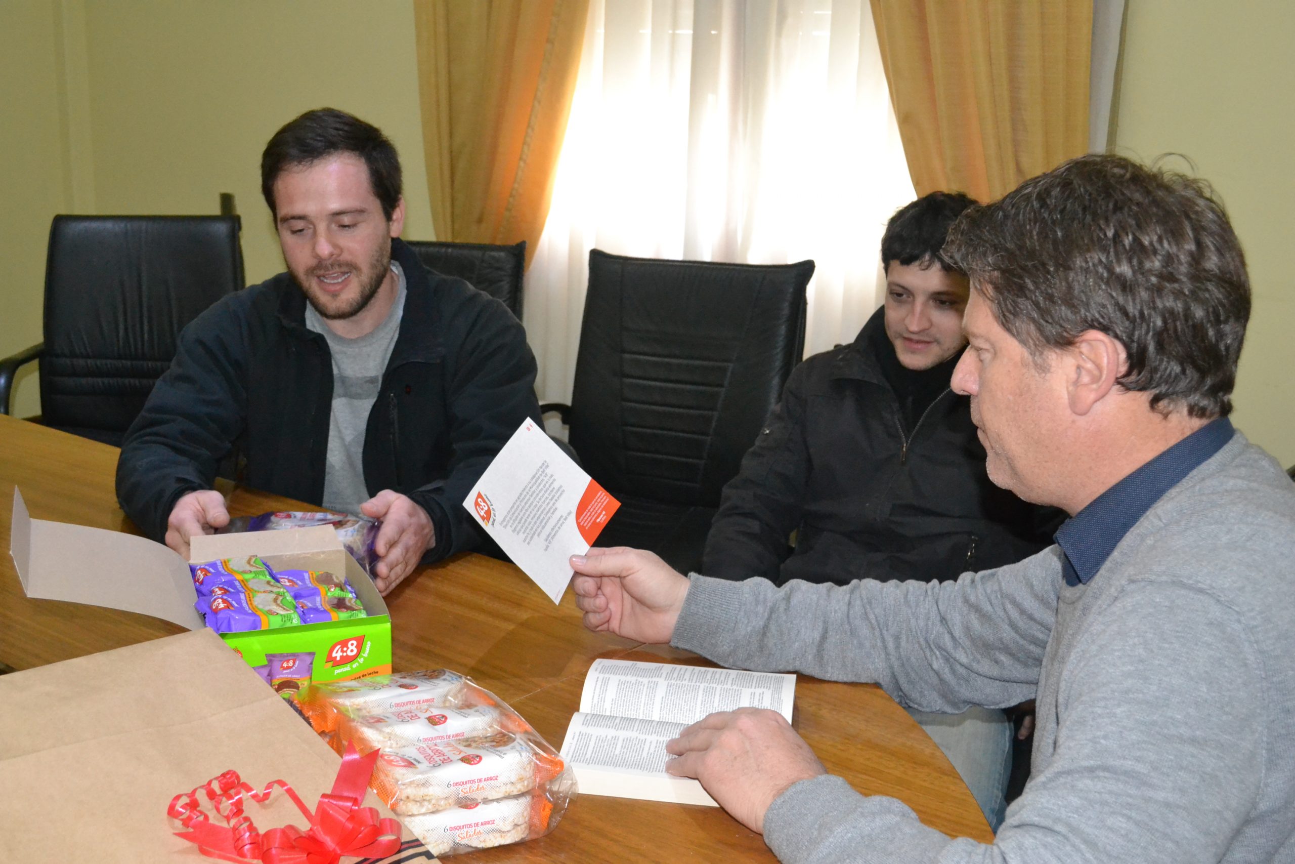 Junto con los tradicionales productos, disquitos de arroz (dulces y salados) y los alfajores de arroz, le entregaron un ejemplar de la Biblia “porque consideramos que es lo más valioso que puede tener en su casa. Su lectura diaria alimenta nuestras vidas, renueva nuestras fuerzas, sostiene nuestra fe y todo lo que emprendemos como familia tratamos sea sustentado en sus palabras. Deseamos sea de provecho para su vida personal y familiar”, señalaron los jóvenes emprendedores.