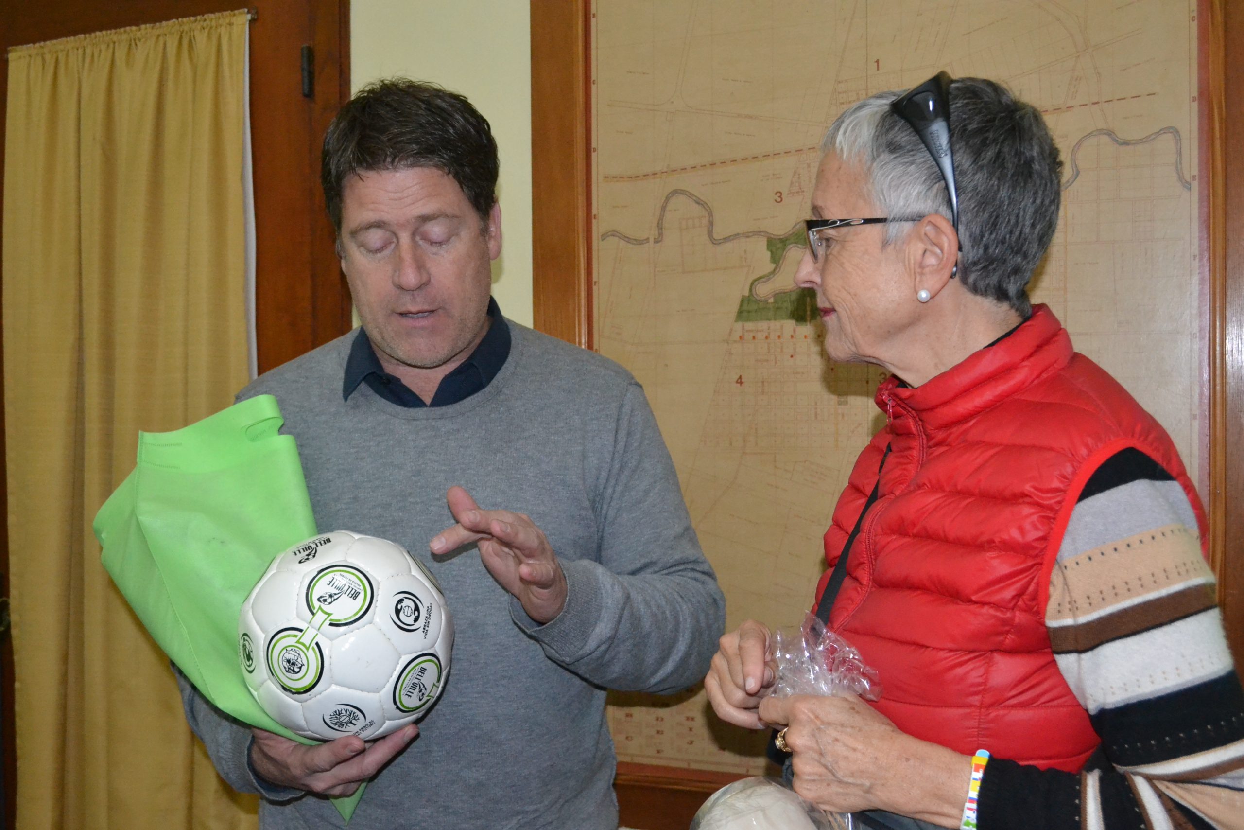 Las visitantes de Suiza y Uruguay recibieron balones deportivos, de manos del intendente, simbolizando a la ciudad como Capital Nacional de la Pelota de Fútbol.