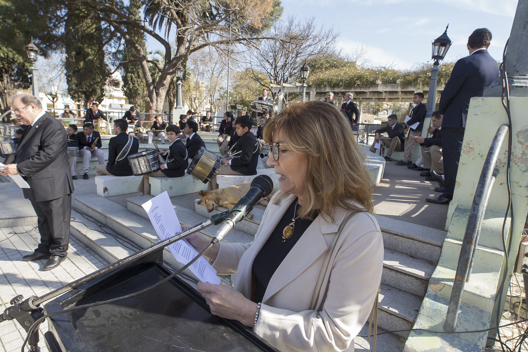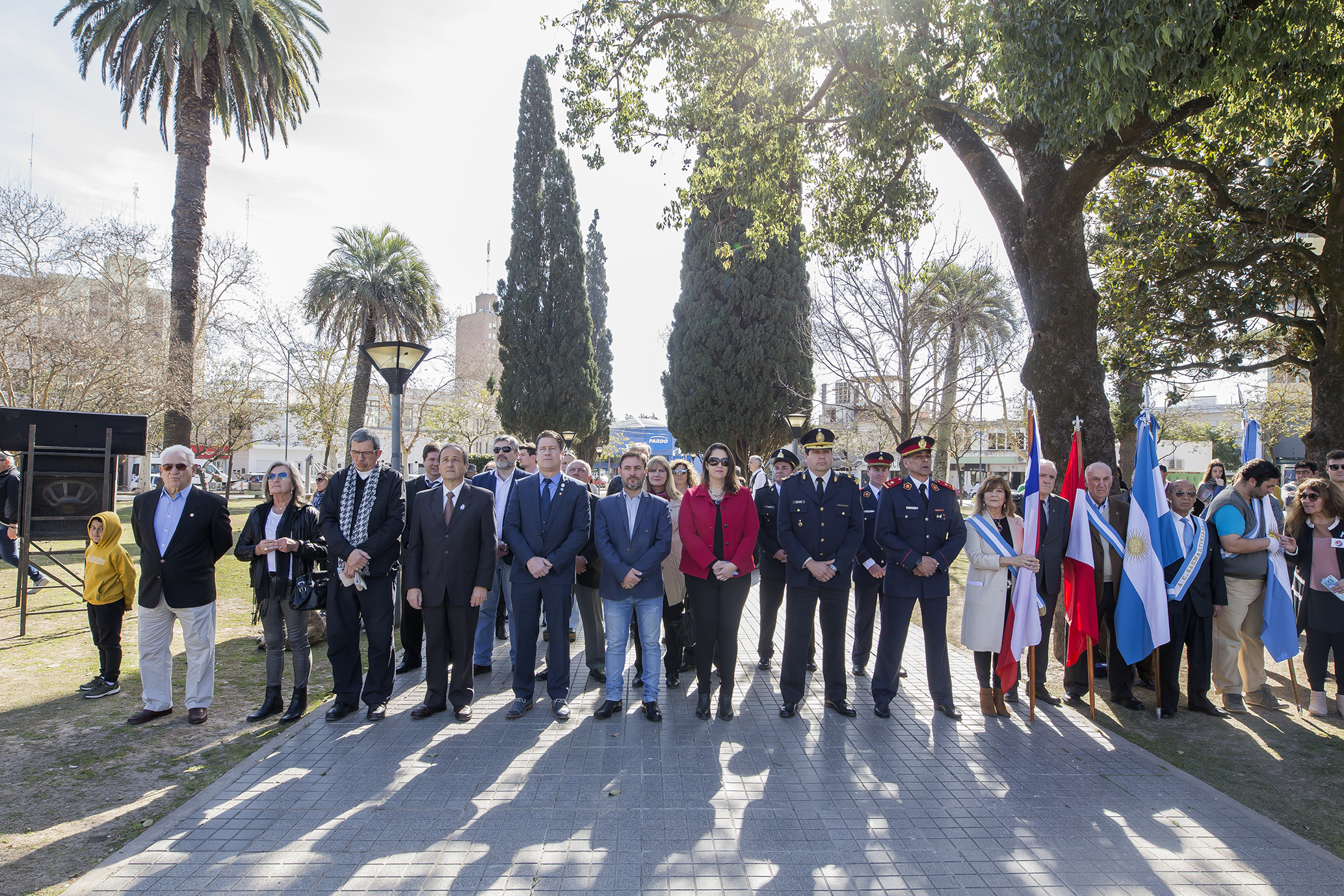 Luego del Himno Nacional con el marco musical de la Banda Municipal “Ernesto Alfonso Bianchi” y la voz del artista Hugo Villarroel, hubo un minuto de silencio marca por la trompeta del maestro Julio Labay y el tañer de las campanas de la Parroquia de la Inmaculada Concepción.