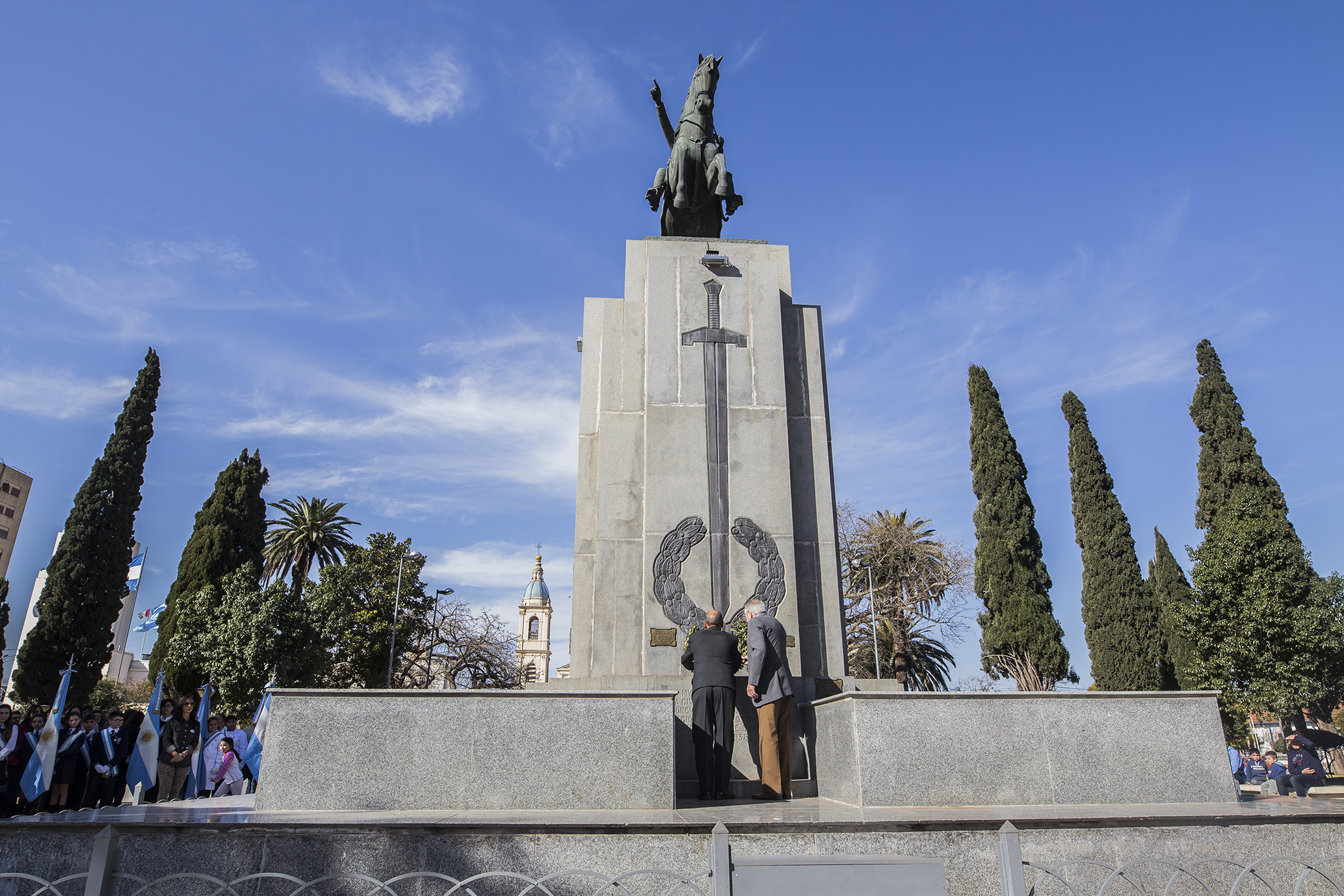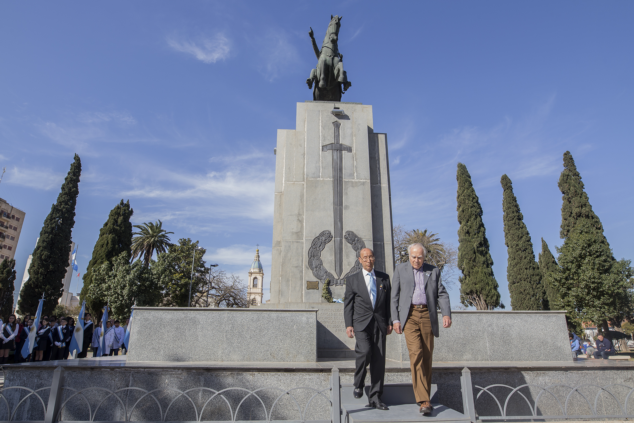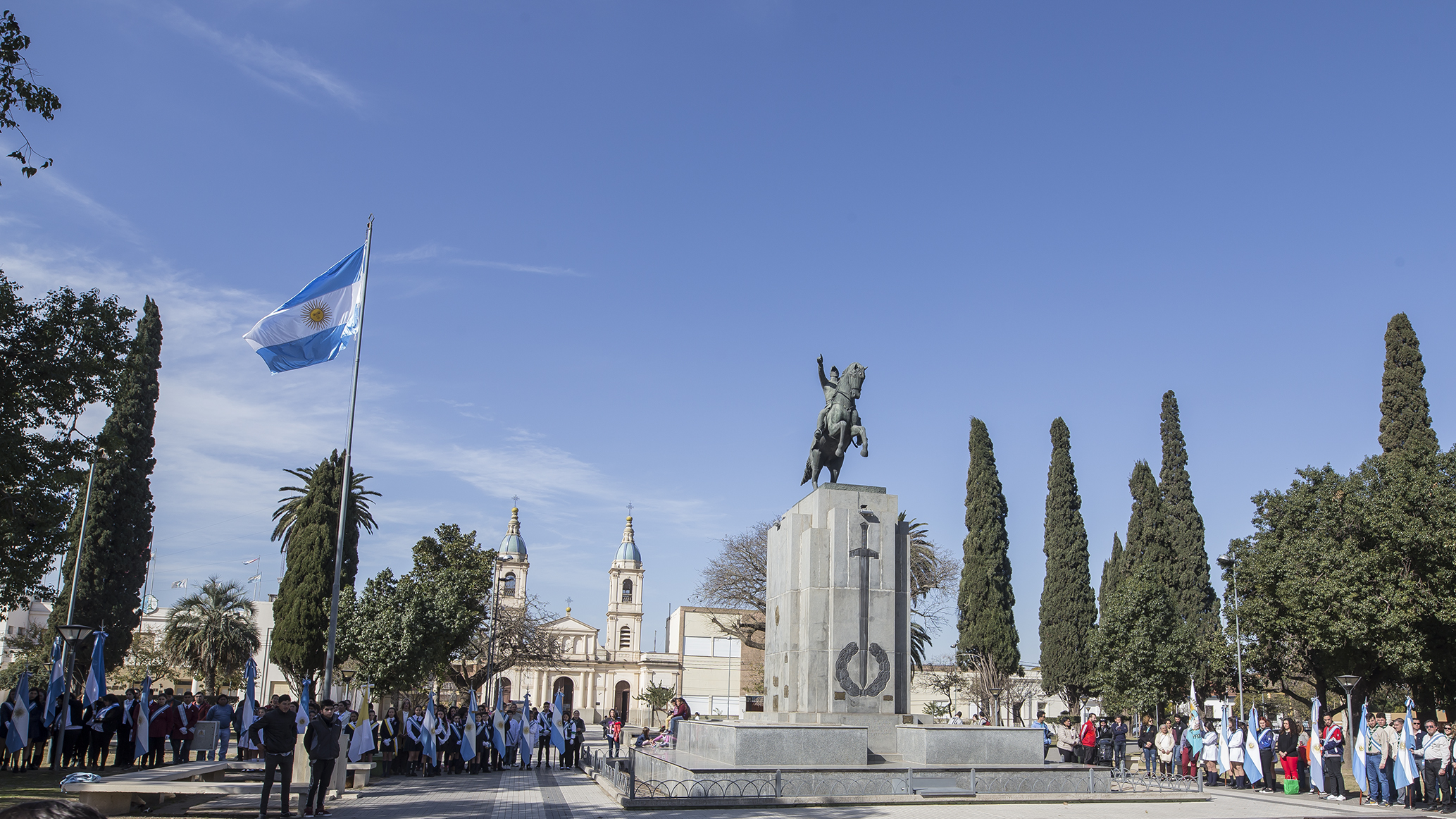 Organizado por la Municipalidad y la Asociación Cultural Sanmartiniana “Atilio Zarini”, el lugar del encuentro fue frente al monumento al prócer en la Plaza 25 de Mayo.