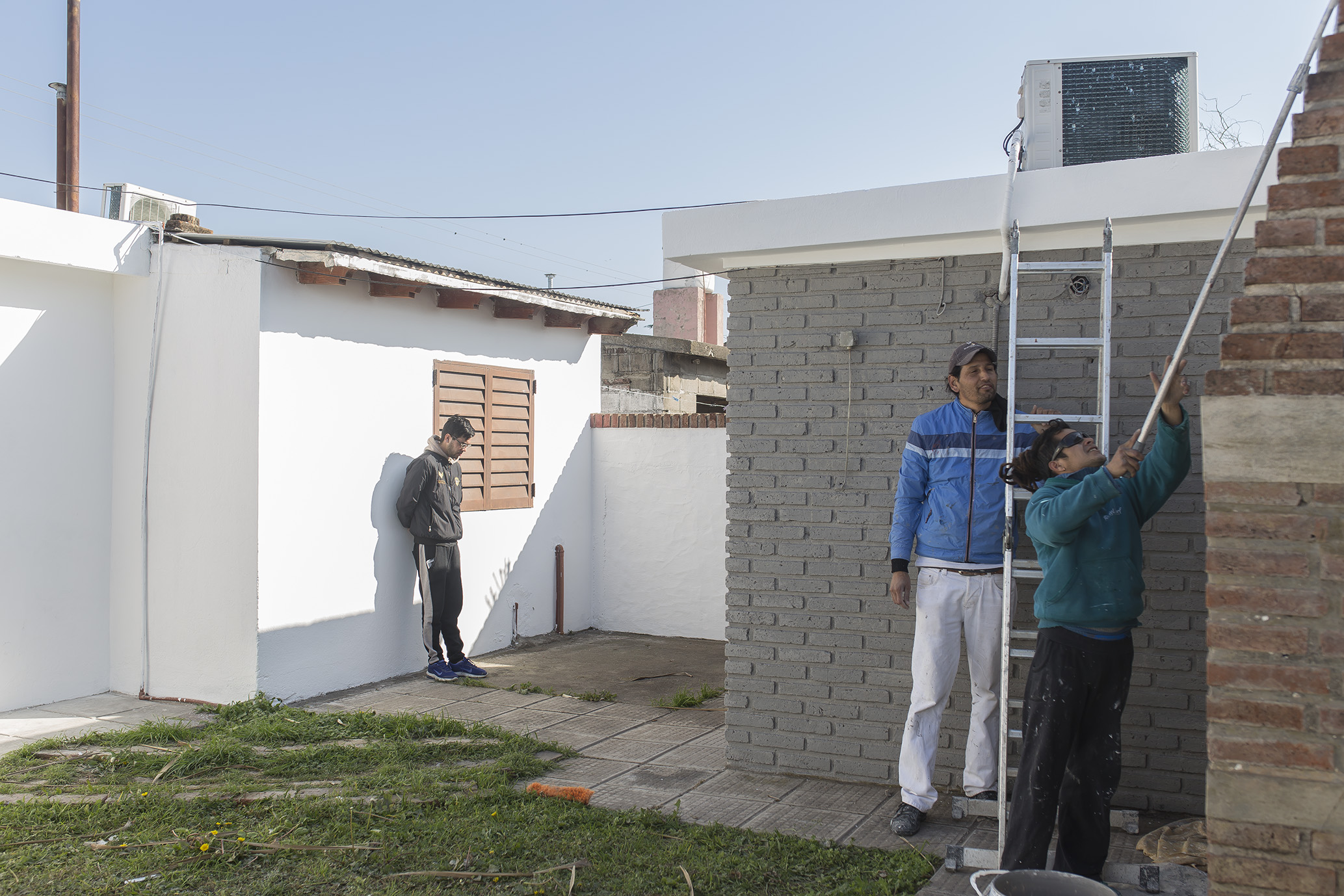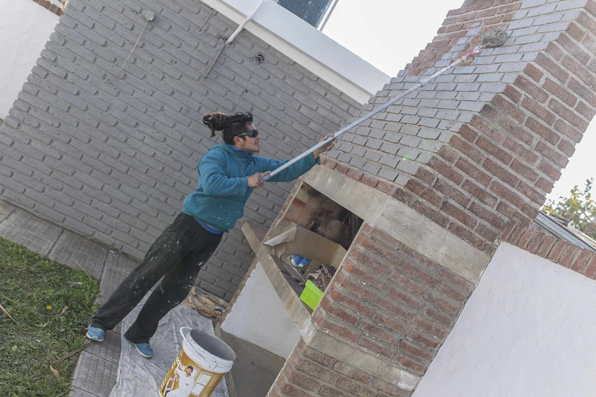 Previamente se efectuaron reparaciones en el techo y trabajos de albañilería en general. La pintura del edificio está a cargo del Sr. Hugo Aguirre, contratado por el municipio para esa labor.