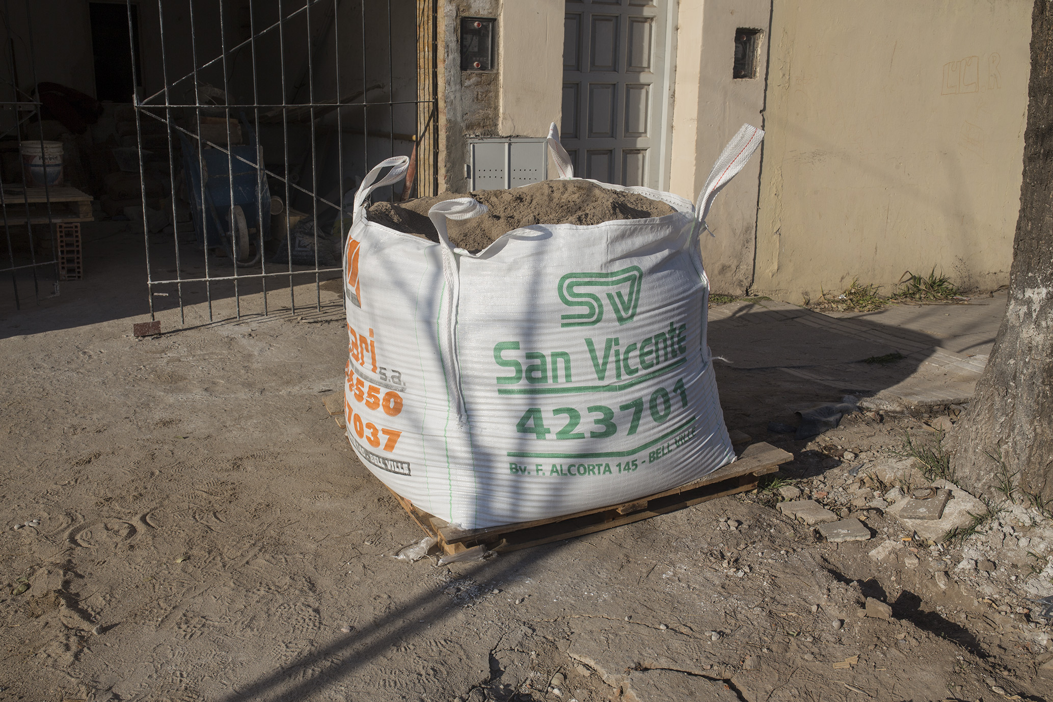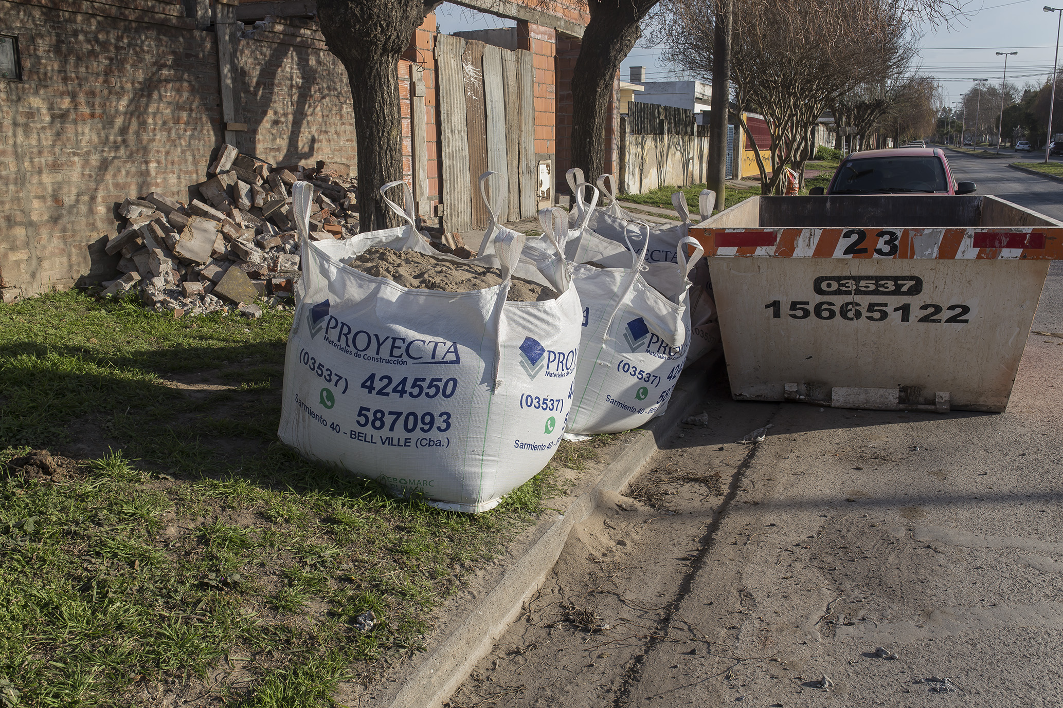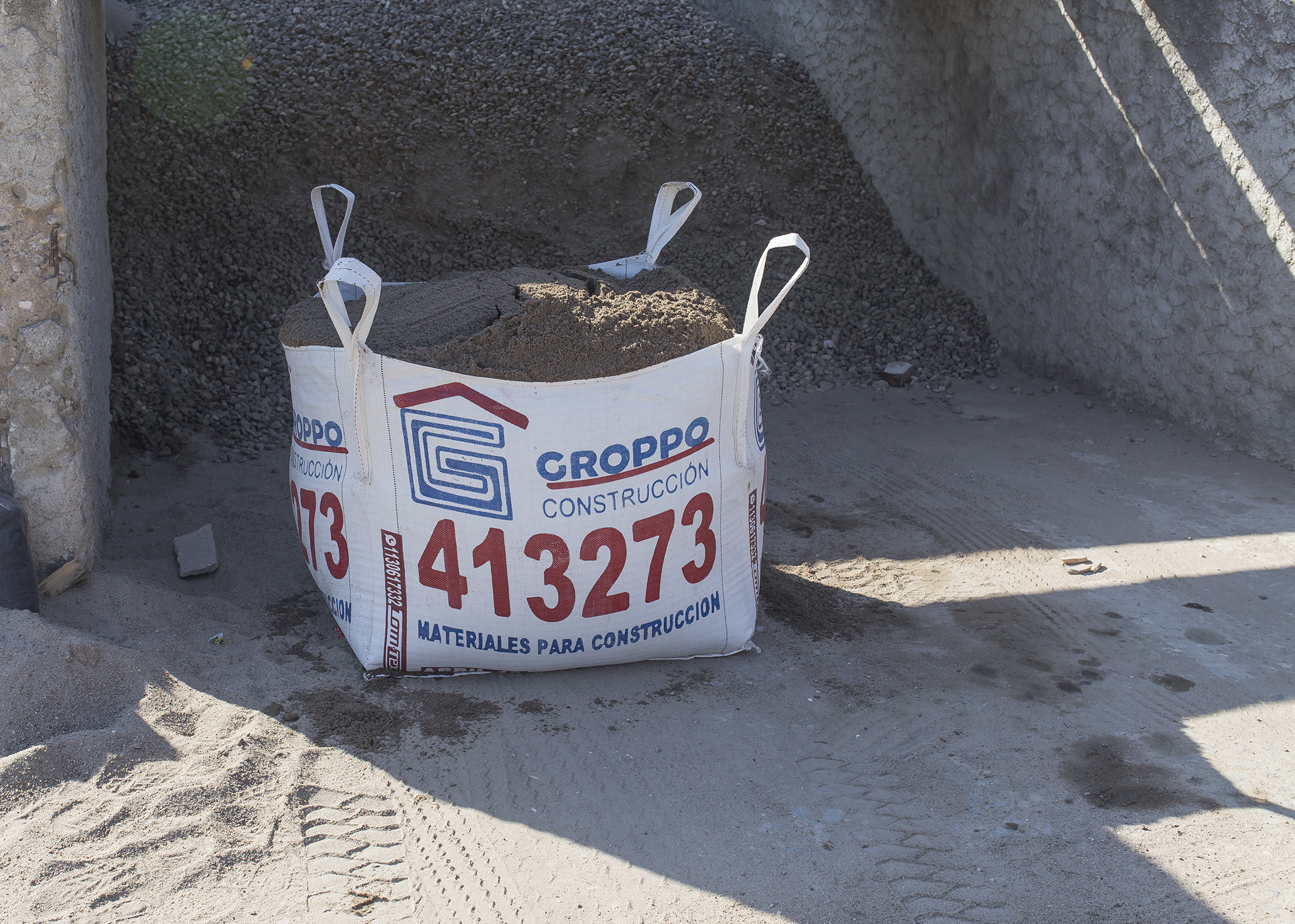 Sin mediar ordenanza alguna, las tres principales empresas proveedoras de materiales de construcción están utilizando bolsones o contenedores para la colocación de áridos, principalmente arena, en obra.