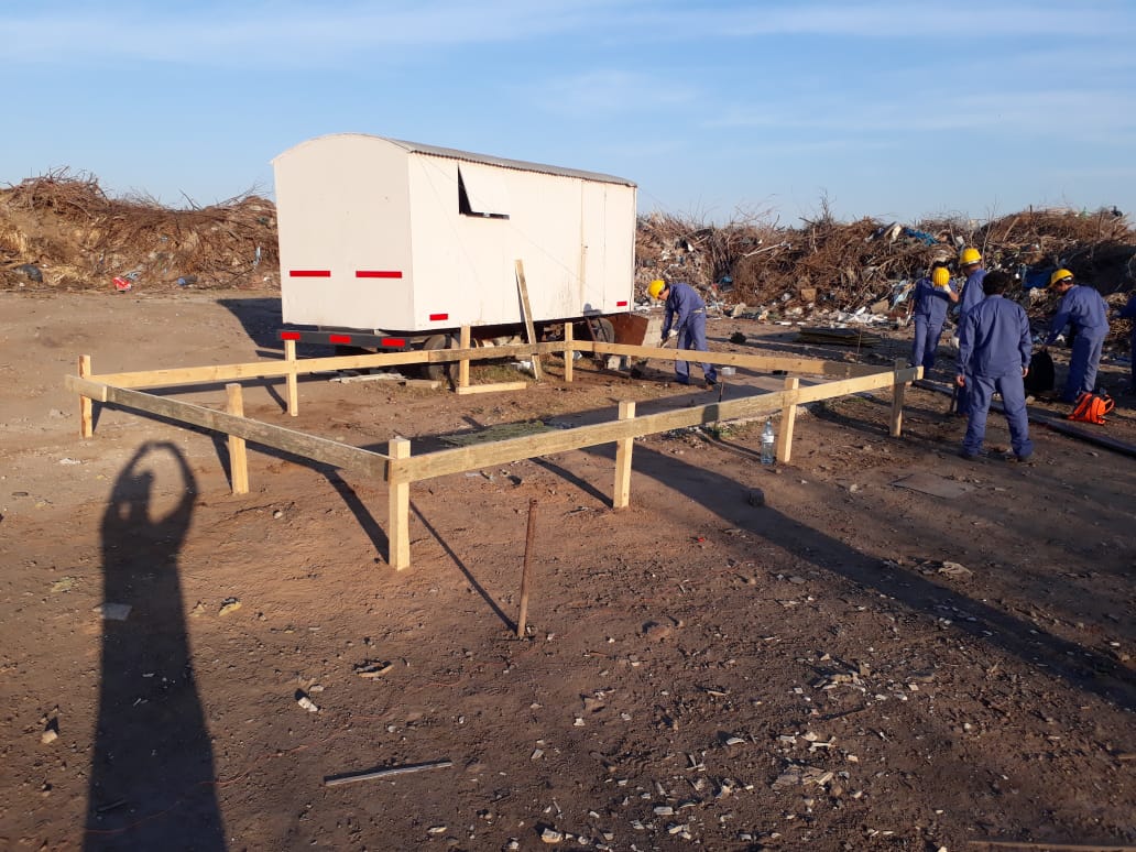 Con financiamiento en materiales, insumos y elementos de seguridad a cargo de UOCRA; y las herramientas por parte del municipio, se comenzó con el levantamiento del puesto de control del depósito municipal de ramas.