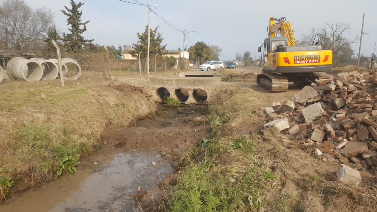 En la continuidad de estas tareas, se procede a la limpieza del canal de desagüe de calle Perito Moreno el cual en épocas de lluvia transporta un importante caudal de agua, proveniente de un amplio sector de la parte Este de la ciudad.