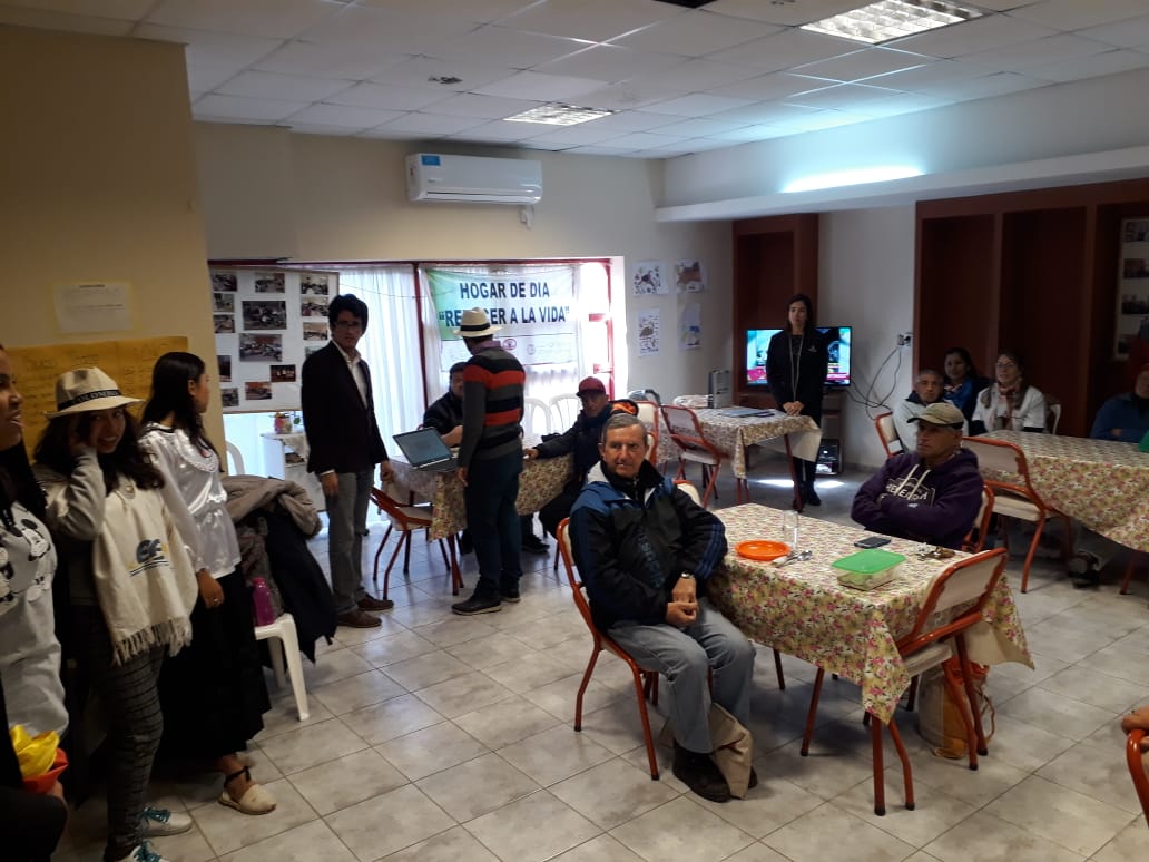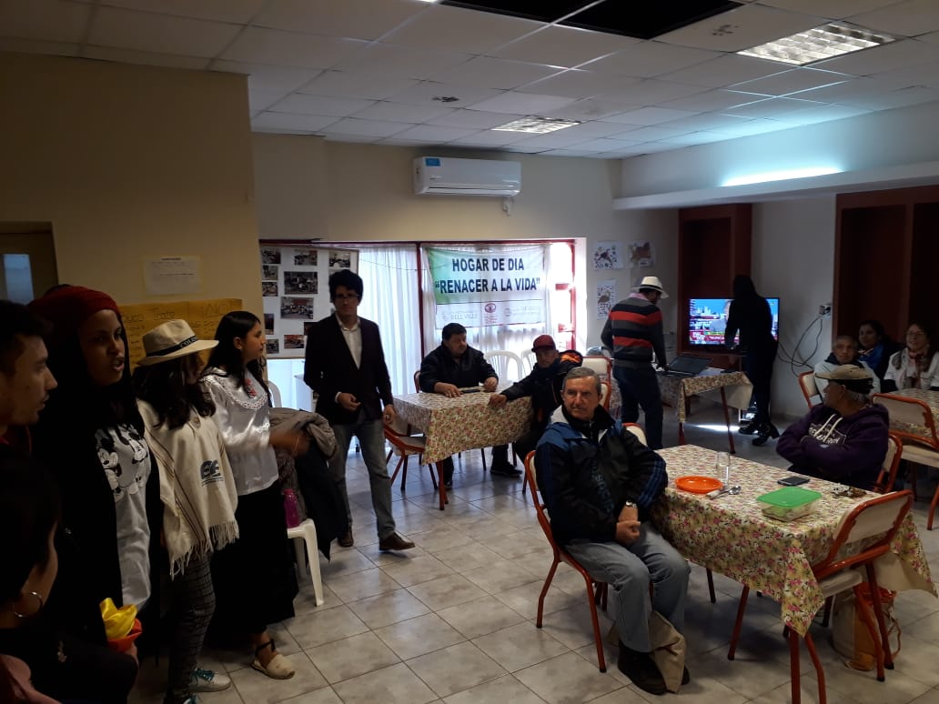 En un ambiente familiar, cálido y de gran afecto, los visitantes y los adultos mayores compartieron un almuerzo, donde se prolongó la extensa y riquísima conversación, entre culturas diferentes pero con un objetivo común, el de la confraternidad.