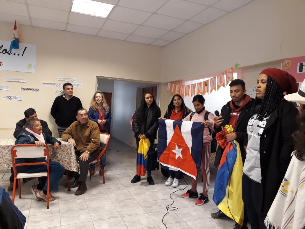 Los jóvenes de Brasil, Colombia, Bolivia, México, Alemania y Estados Unidos hablaron de sus costumbres y experiencias de vida, recibiendo también relatos de los que a diario concurren al hogar municipal.