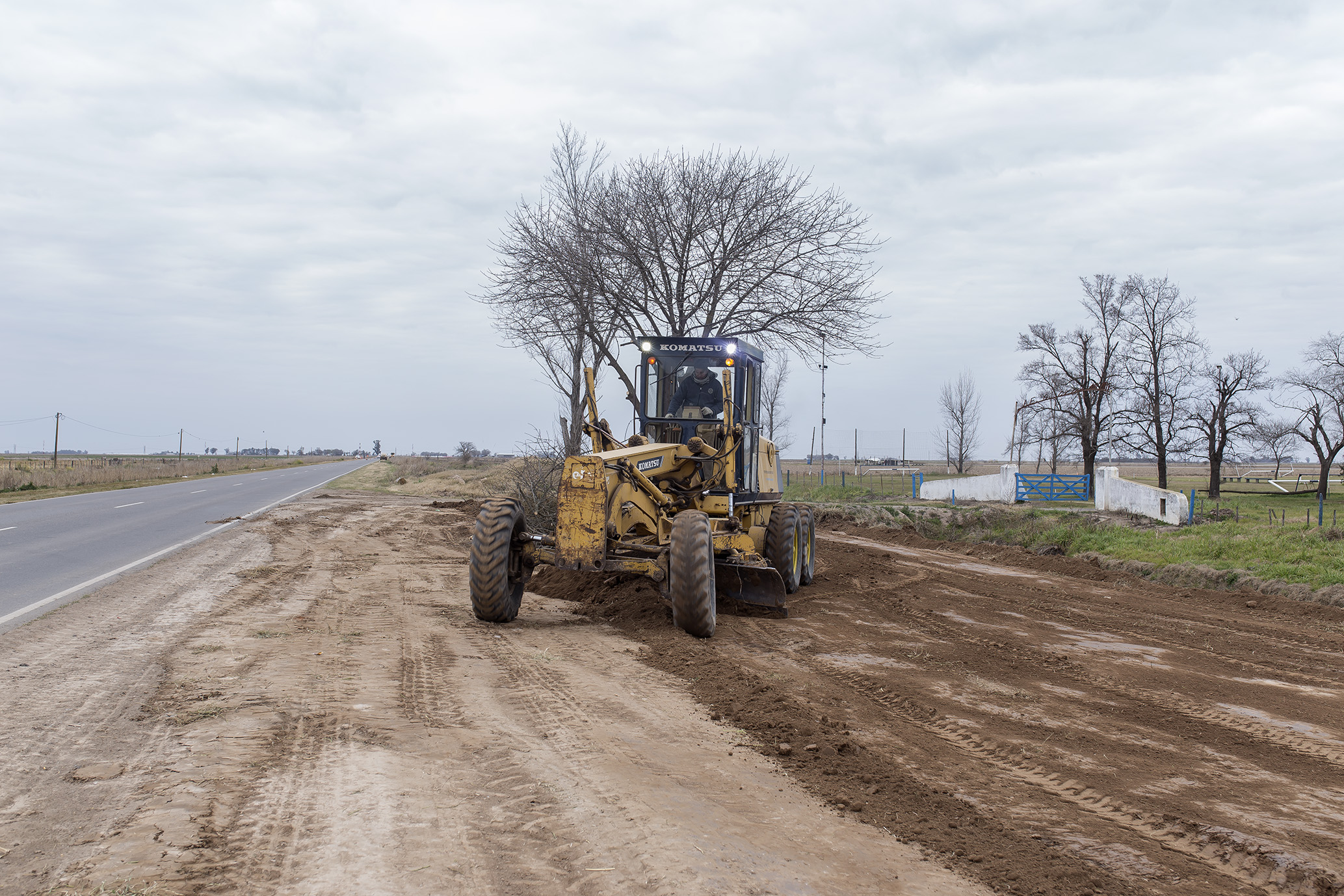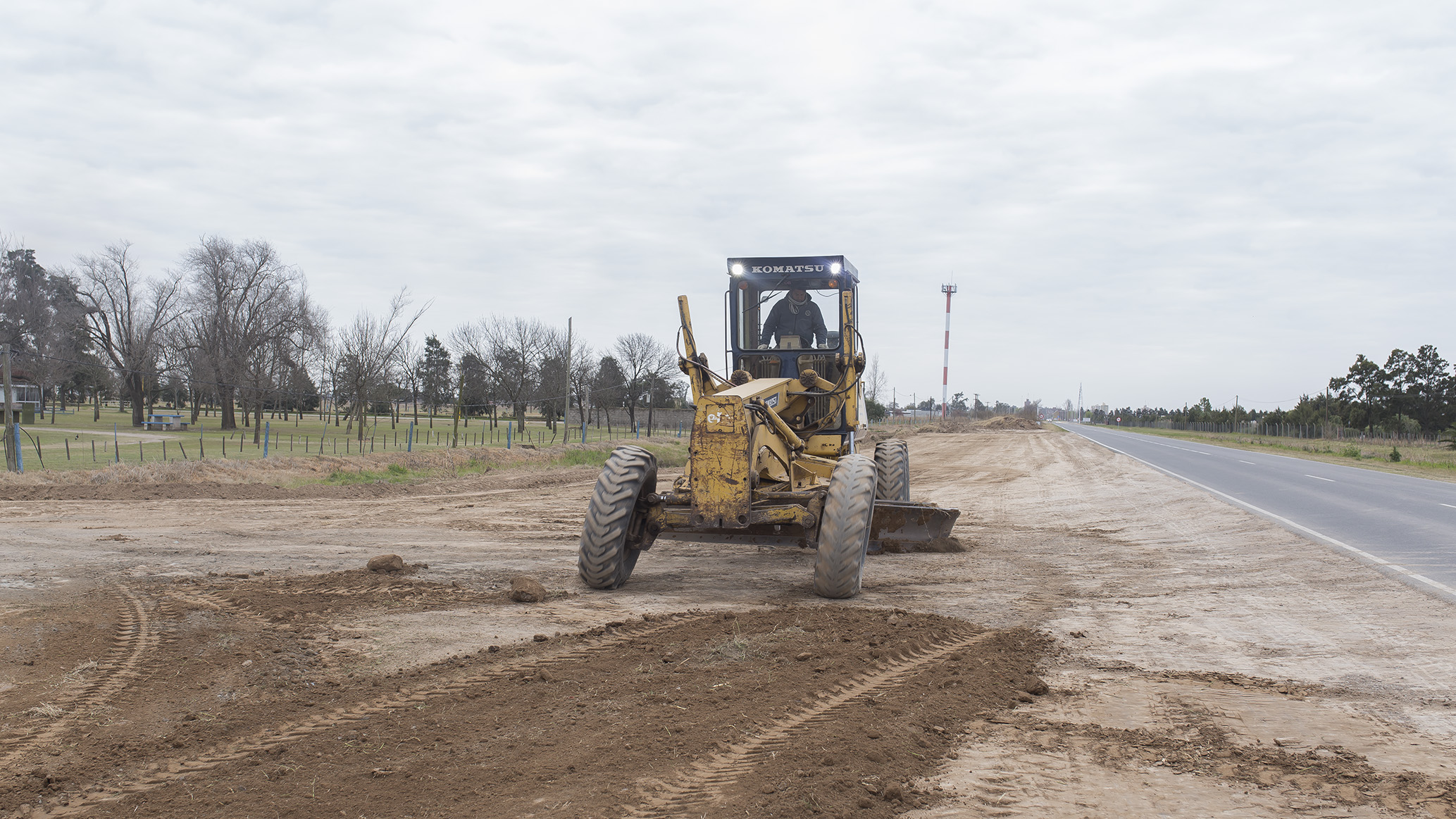 Maquinarias y personal de Obras Públicas del municipio, se encuentra nivelando las banquinas de la Ruta Nº 3, en inmediaciones del Aero Club Bell Ville.