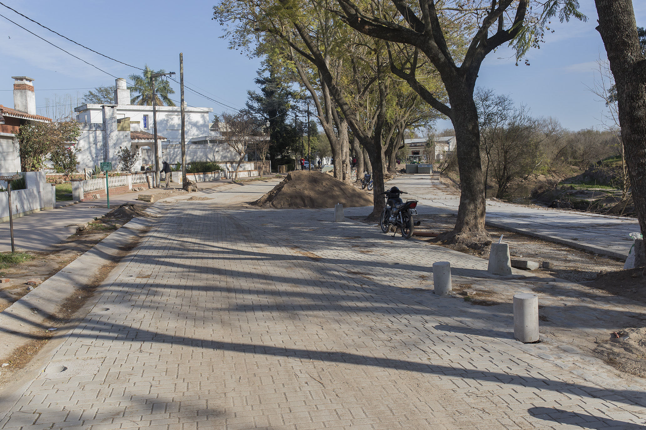 A la construcción de cunetas en hormigón, se le suman las tareas de adoquinado y nivelado de la última parte comprendida en la obra.
