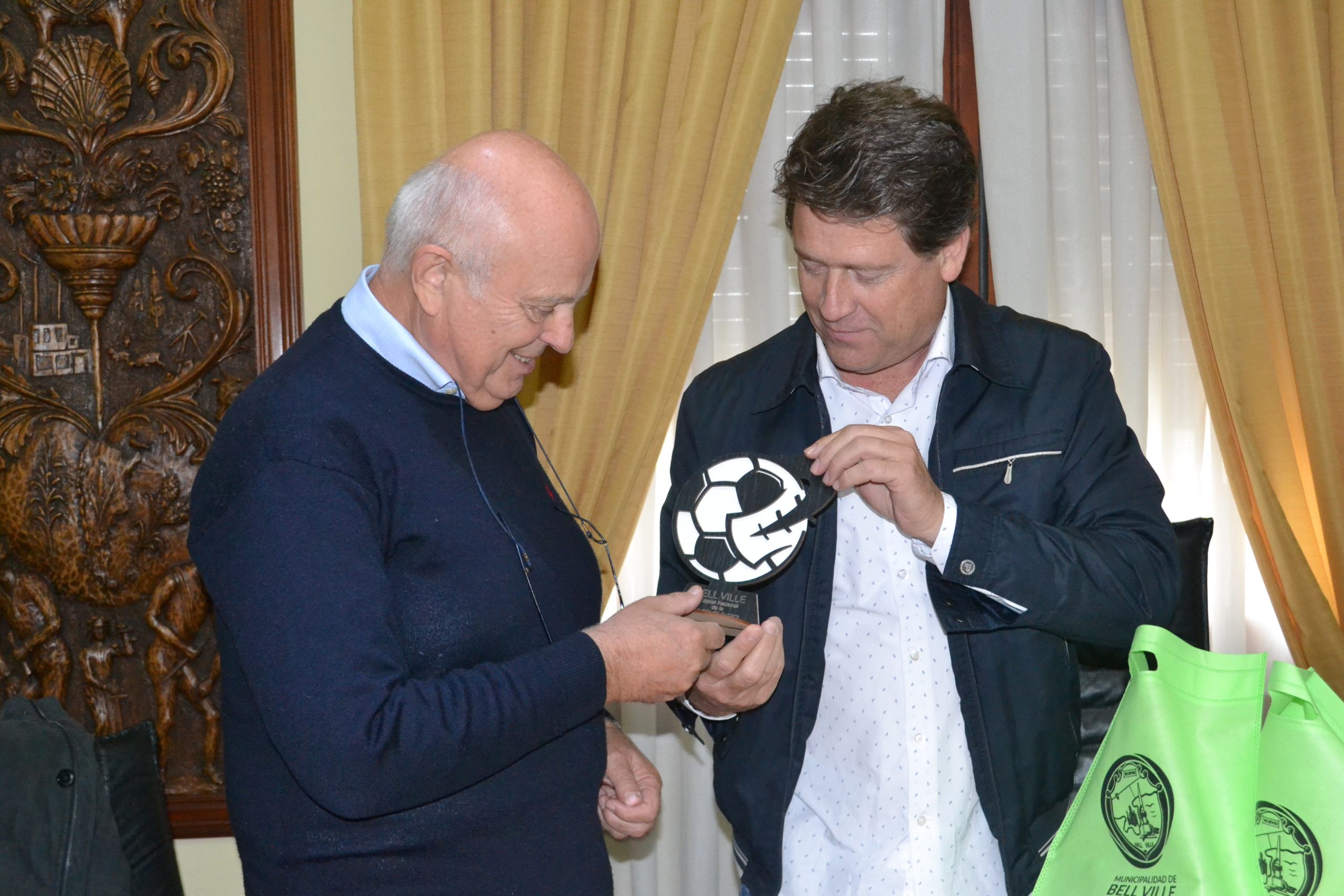 Vidoni, recibió distintos presentes que identifican a nuestra ciudad como la Capital de la Pelota de Fútbol.