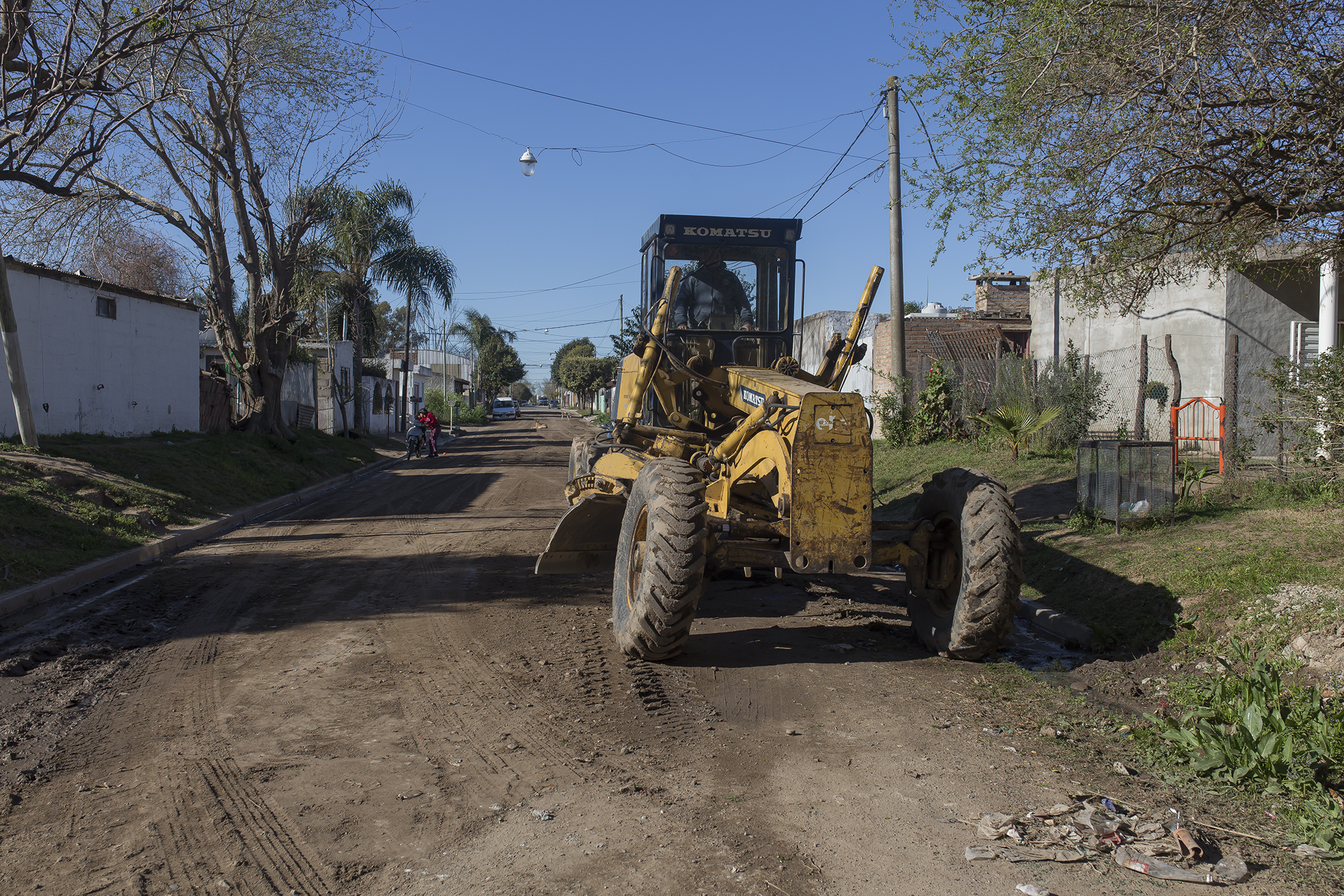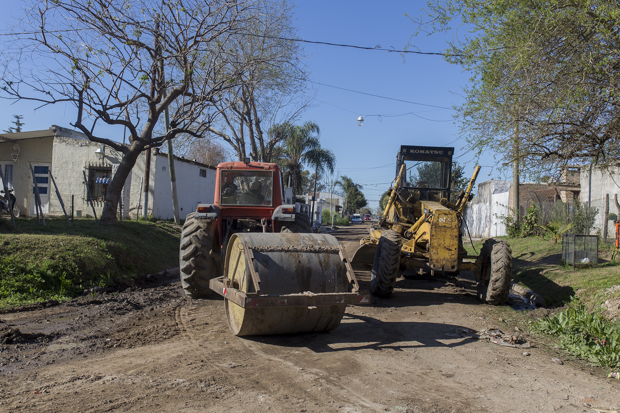 No cesan los trabajos de nivelación y compactación de calles de tierra. Máquinas y cuadrillas municipales del área de Obras Públicas, se encuentran trabajando en la zona sudeste de la ciudad.