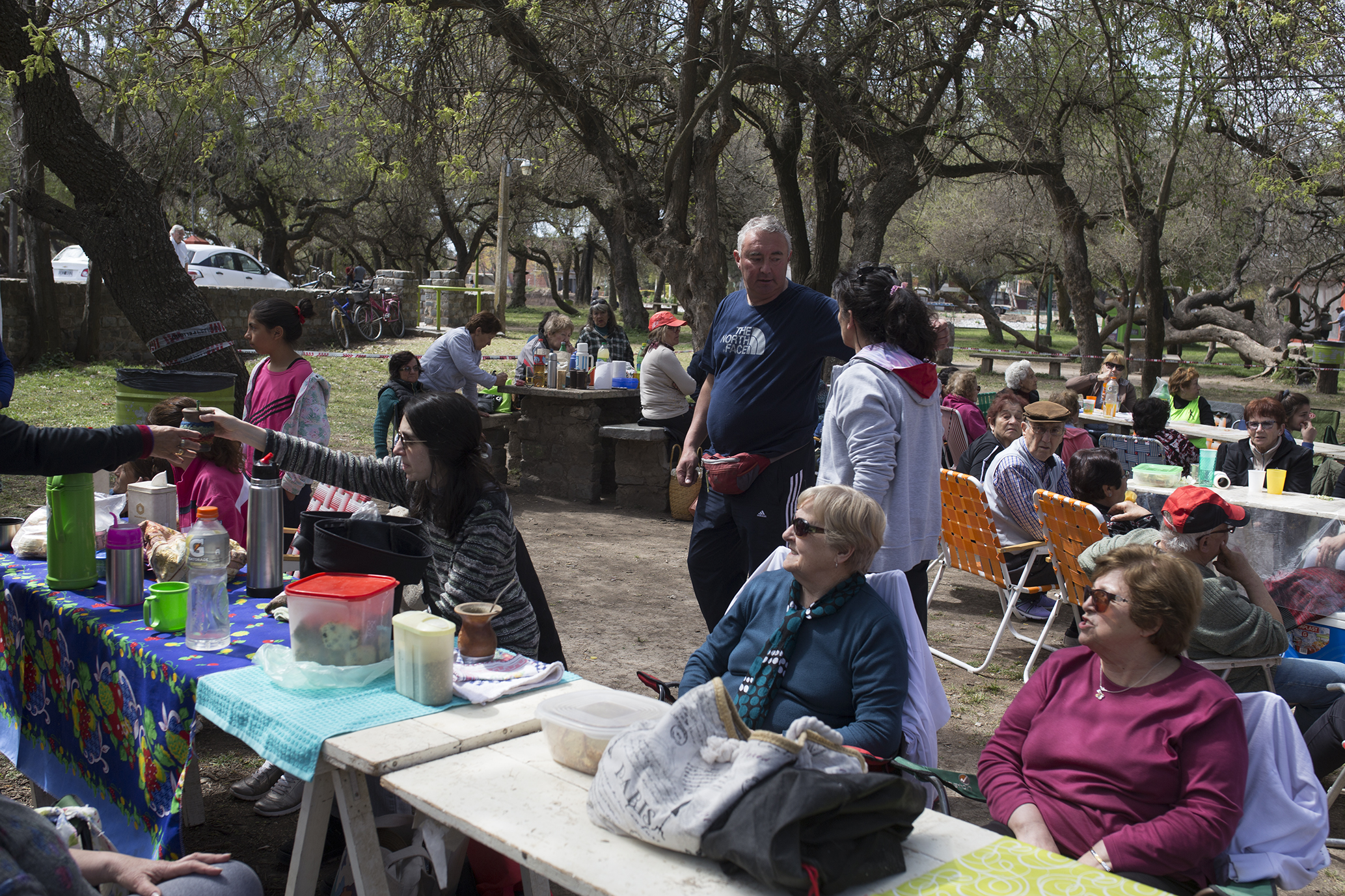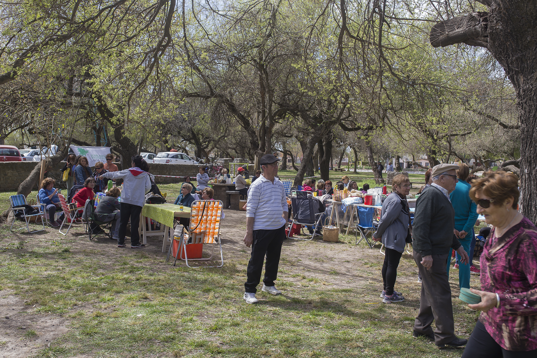 Coloridas mesas congregaron a quienes celebraron el Día del Jubilado, en el Parque Tau.