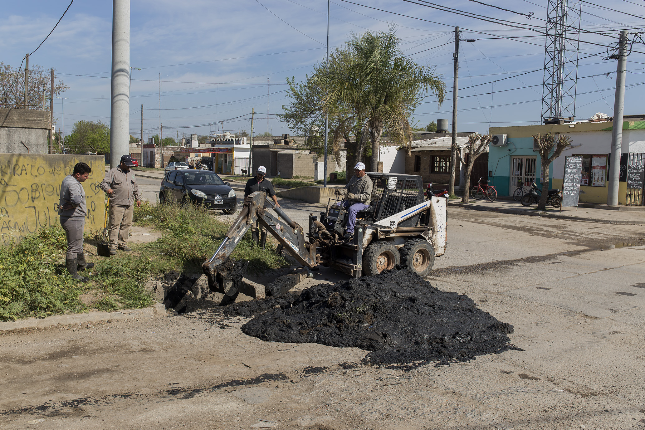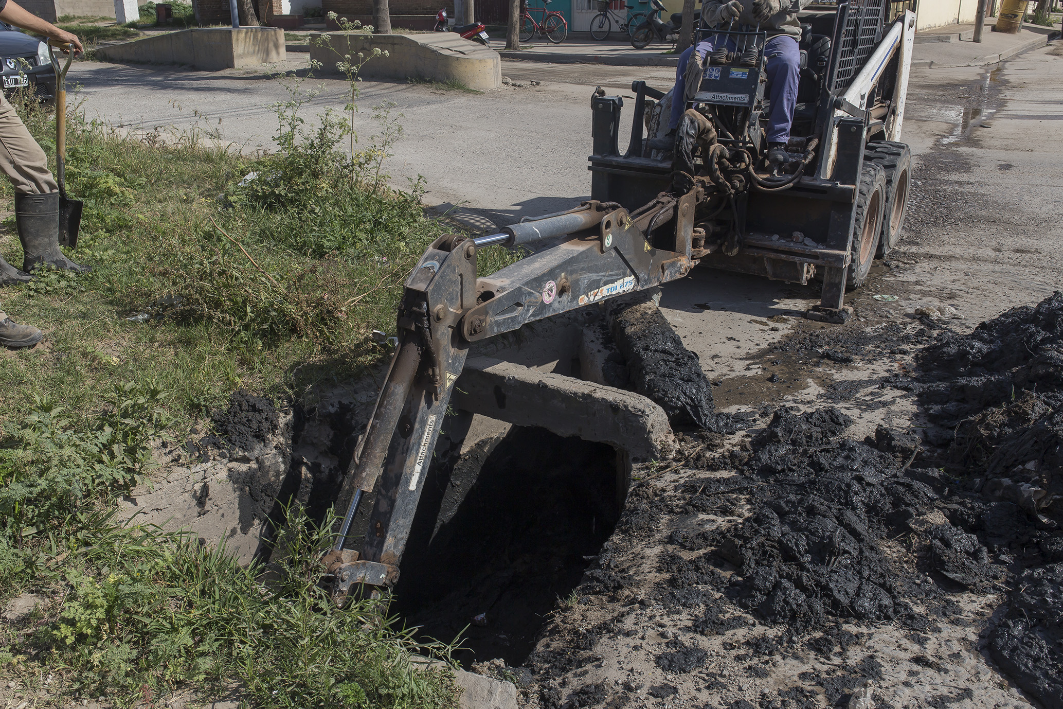 Se continúa con la planificación de limpieza permanente de canales de desagüe. Ahora se trabaja en otro tramo del existente en bulevar Eva Perón. La tarea se viene cumpliendo por sectores debido a que desde hace varios años no se le habían realizado tareas de limpieza y mantenimiento.