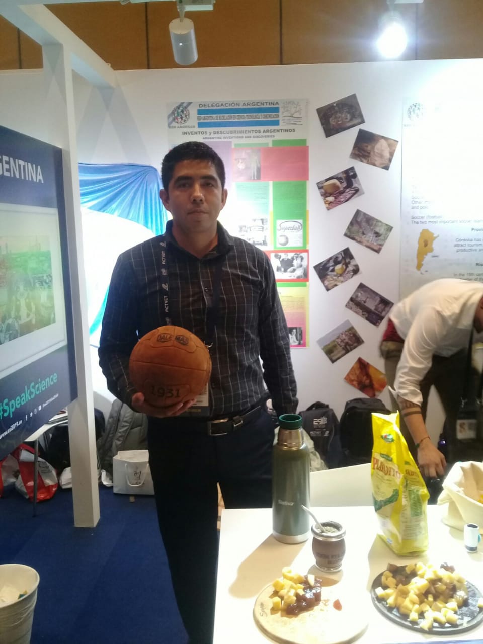 Alumnos del Instituto Privado Provincial José Hernández de la vecina localidad, quienes presentaron durante setiembre dos proyectos escolares en el evento más grande centrado exclusivamente en la creatividad científica de jóvenes aspirantes de todo el mundo, tuvieron la iniciativa de contar orgullosos en ese ámbito, que de su región, su provincia y de su país, surgió el invento que revolucionó el fútbol mundial desde 1931.