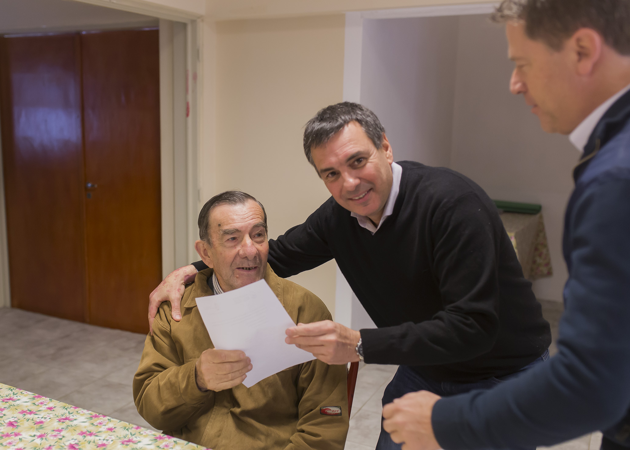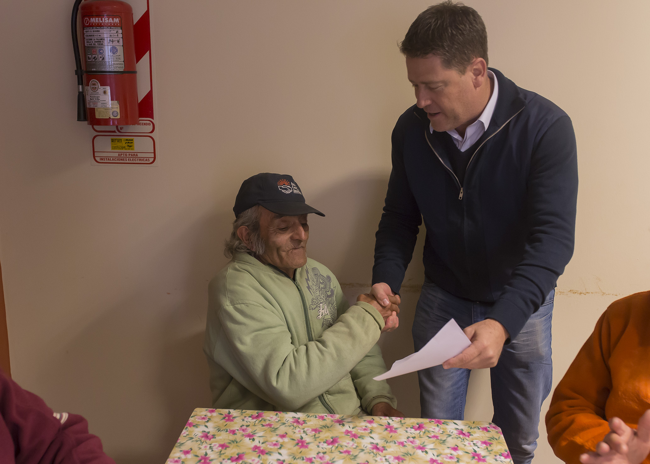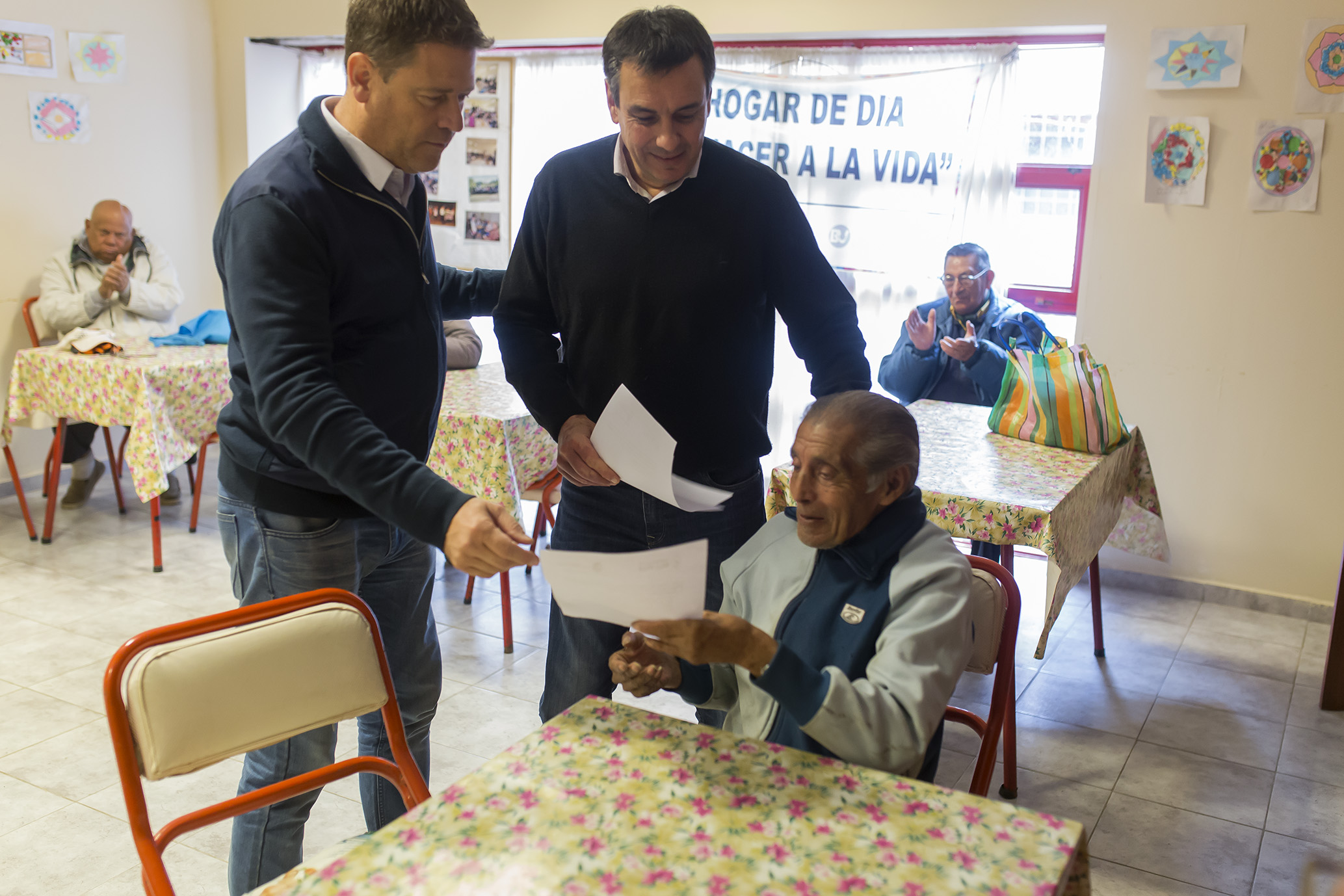 Junto al intendente, estaban el director de Acción Social, Horacio Pelletti; Ivana Alegnani de la misma dependencia y personal que a diario atiende a los adultos mayores.