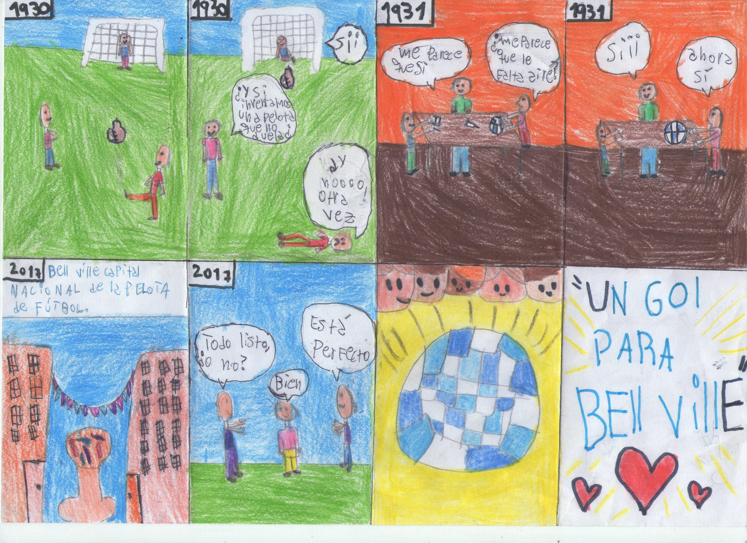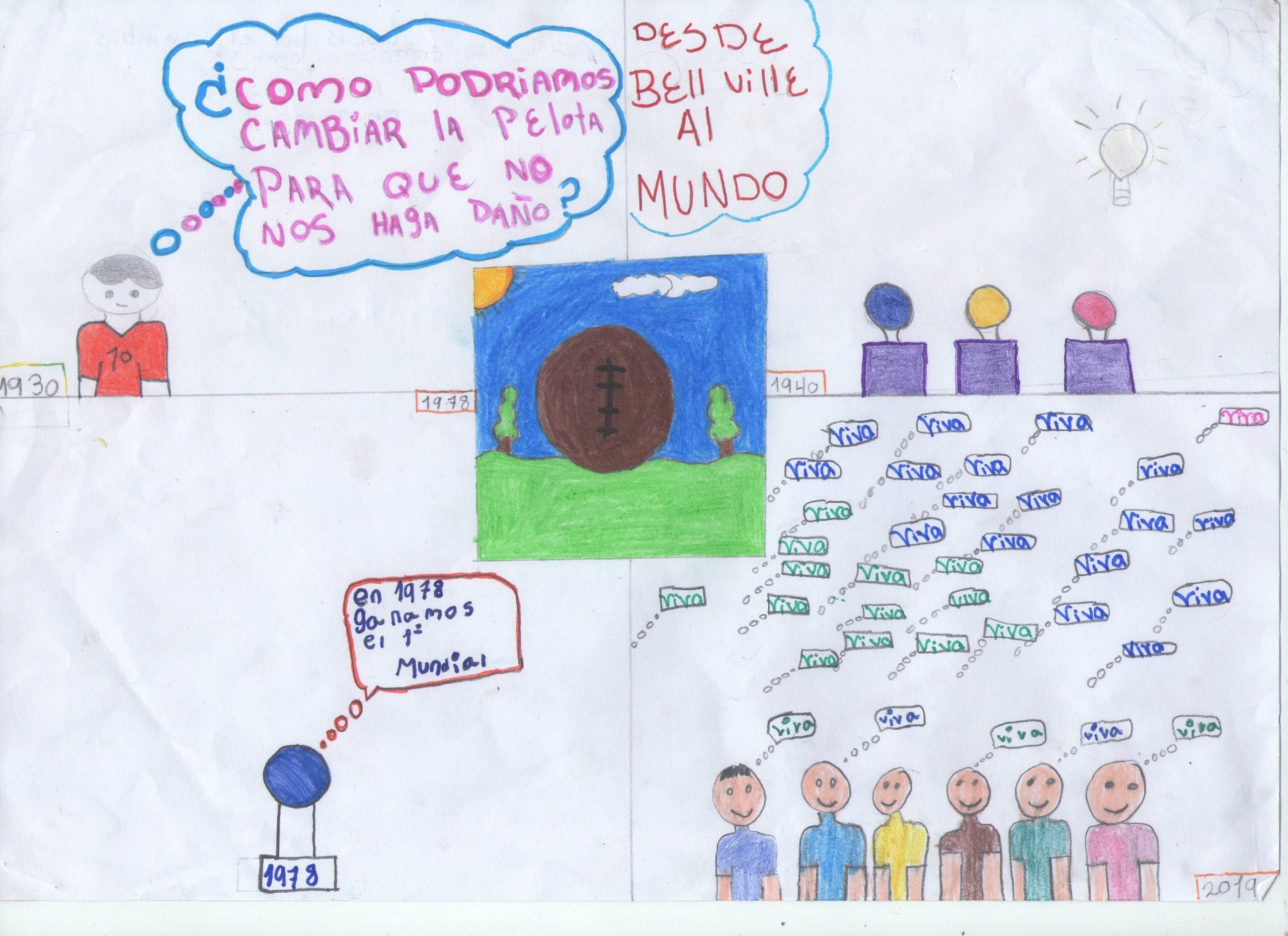 Los alumnos trabajaron sobre la creación de la pelota de fútbol de boca y costura invisible, teniendo como propósito generar un espacio donde los estudiantes pusieron en práctica sus conocimientos acerca de la historia de este invento bellvillense, a través de la creatividad narrativa y artística.