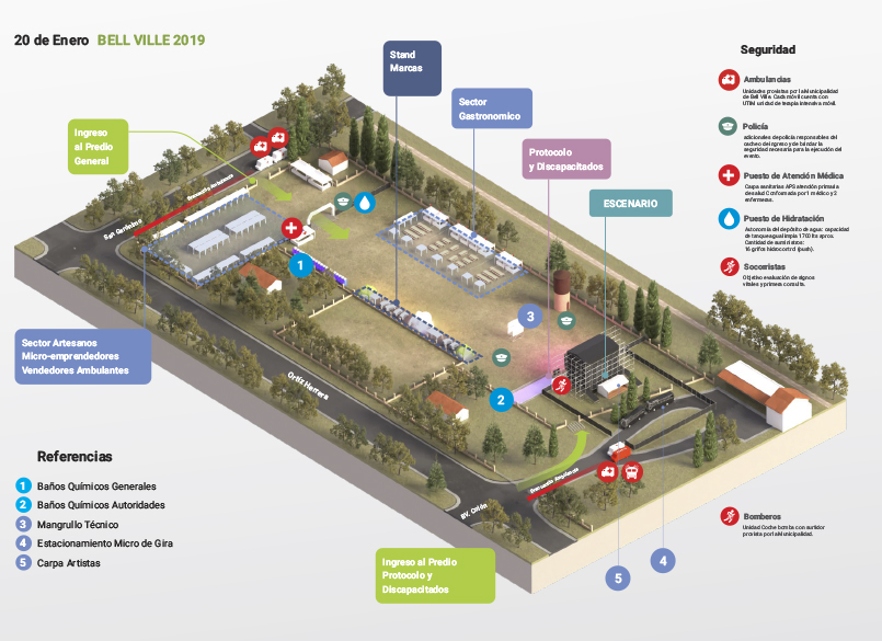 El ingreso de público será por calle San Jerónimo, estando previsto sectores para artesanos, microemprendedores, vendedores ambulantes, stands de marcas y gastronomía. Asimismo, habrá un lugar especial para discapacitados, cercano al escenario.