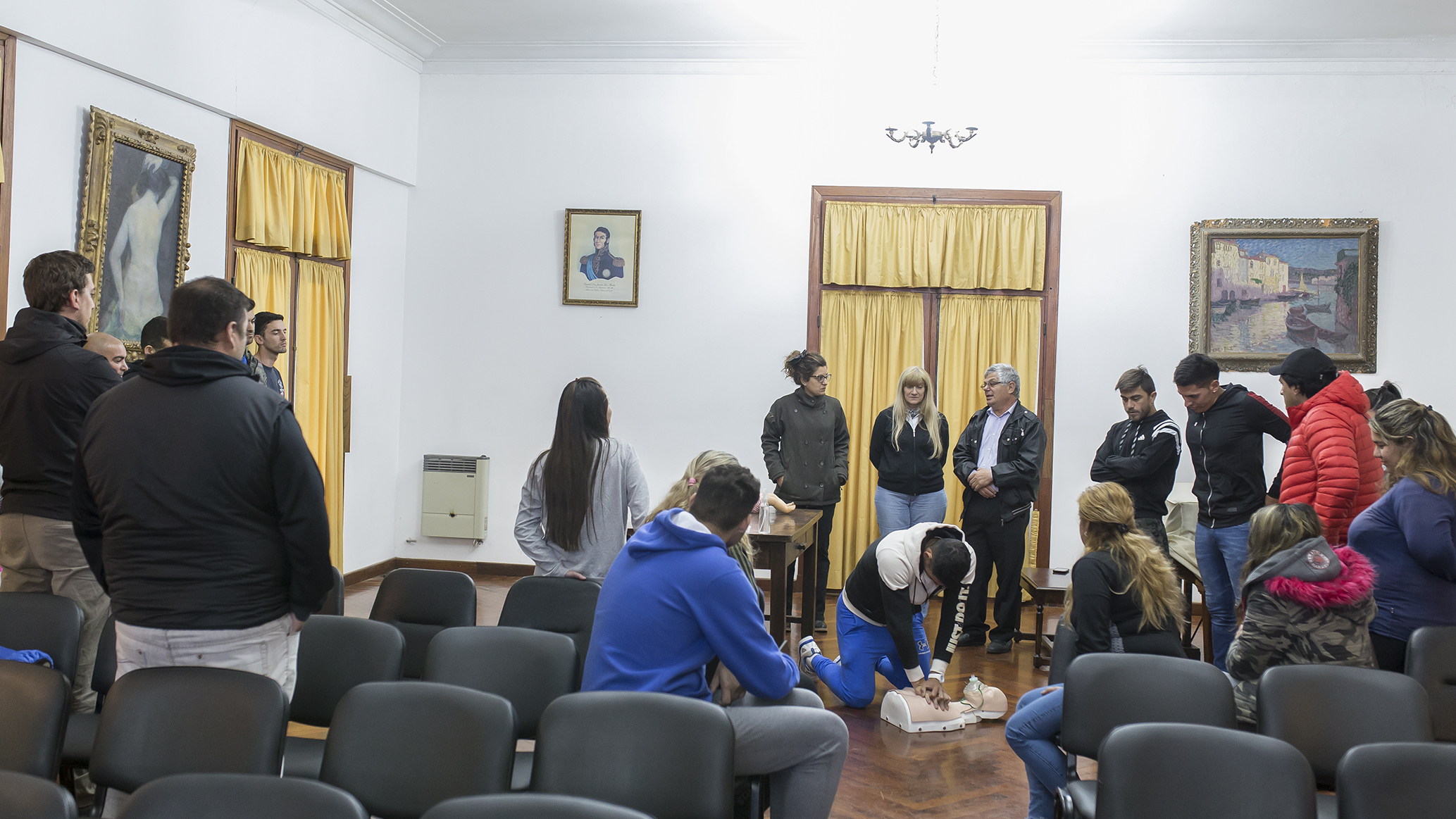 Esta mañana en el salón Walter de Navazio, el Sr. José Luis Medina, técnico en Emergencias TEM, enfermero profesional y bombero (retiro efectivo), dictó una capacitación de primeros auxilios y RCP (Reanimación cardiopulmonar).