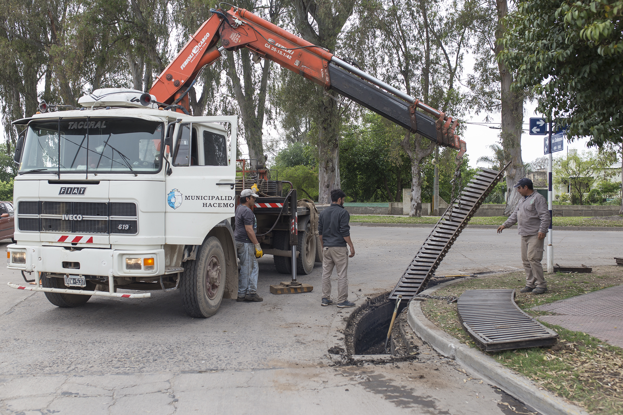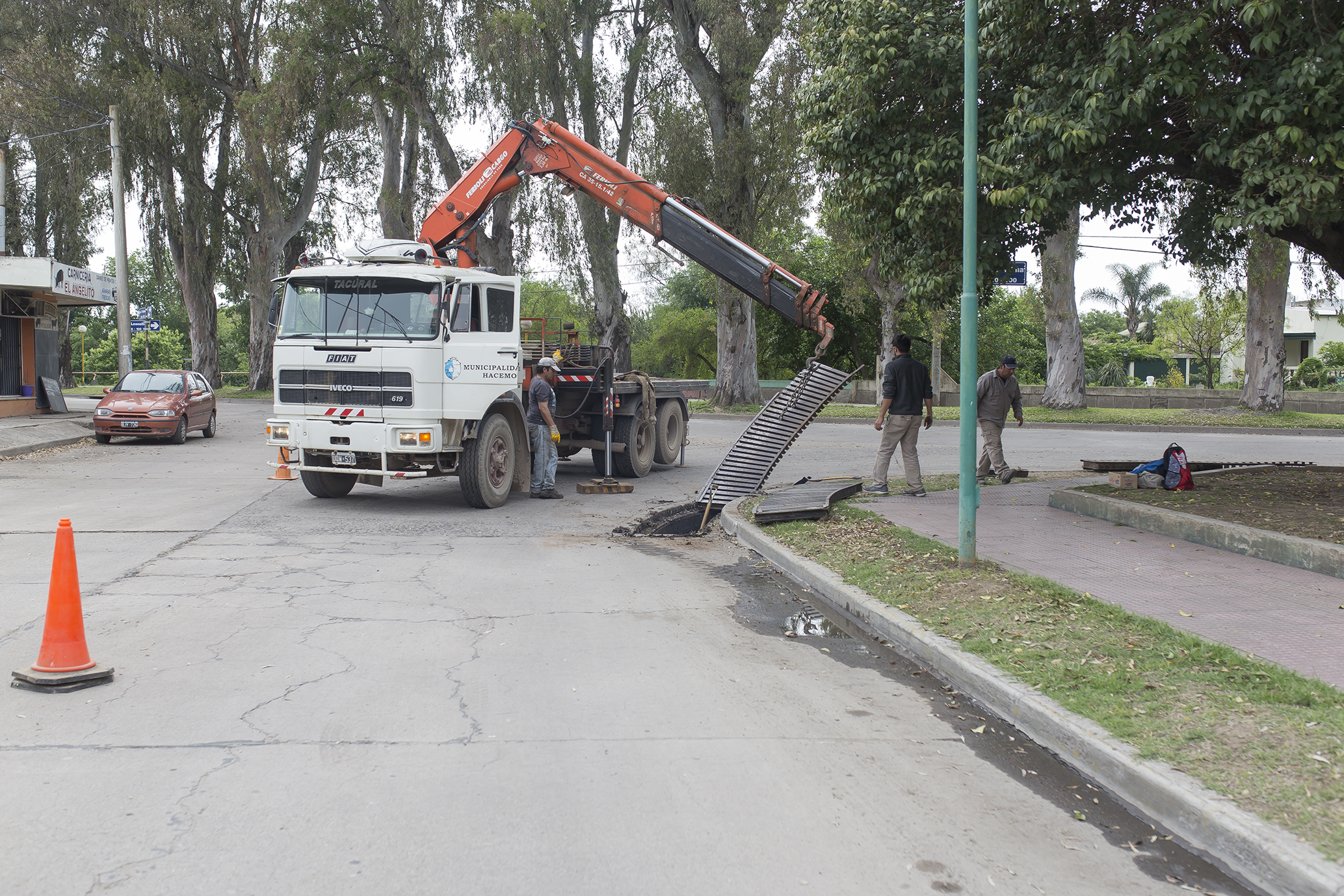 La actividad se centra en bacheo con hormigón y limpieza de la boca de tormenta y canal de desagua existente en el lugar.