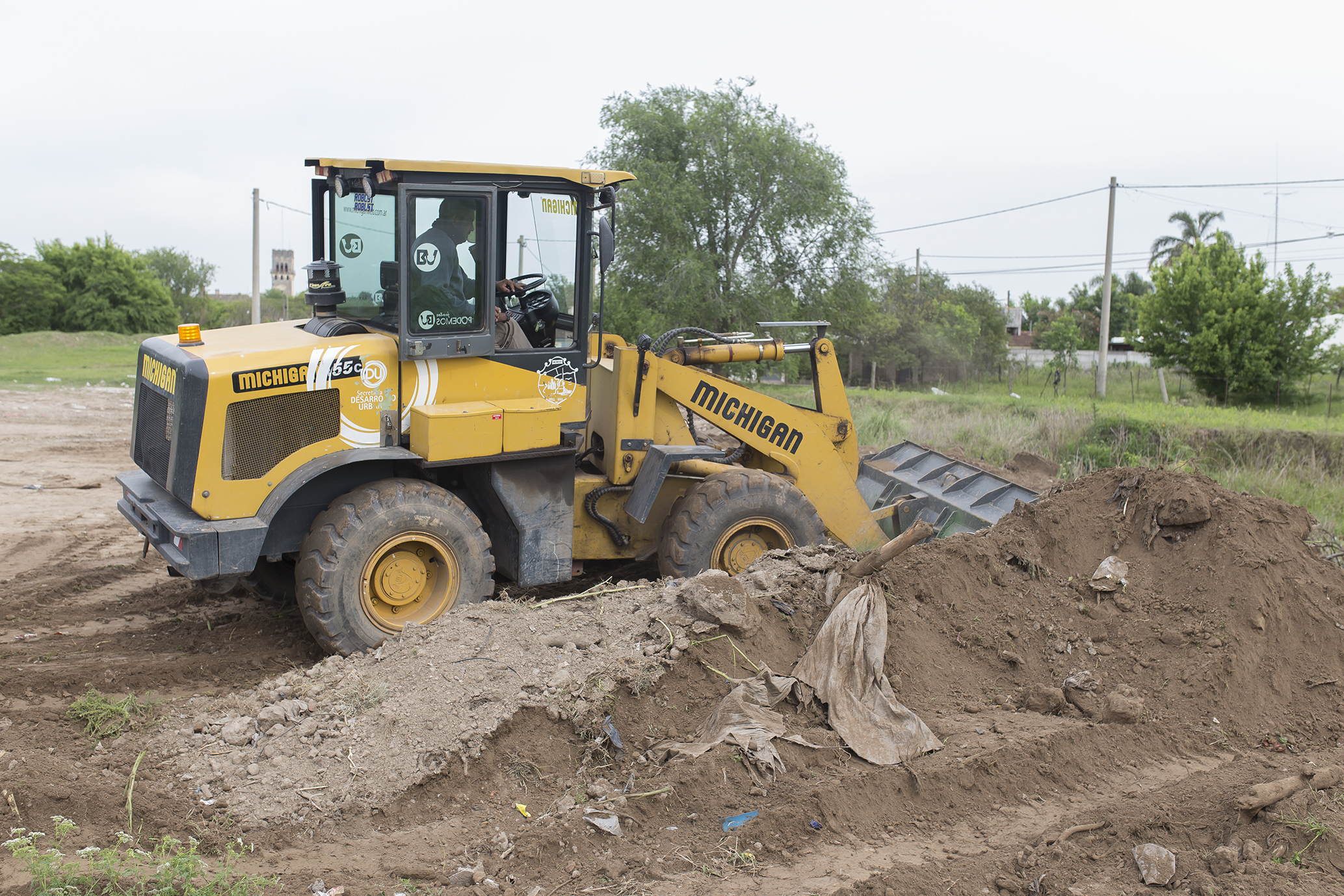 Con maquinaria y personal municipal, se está procediendo al relleno con tierra de un predio de propiedad privada ubicado en Marcos Olmedo y Bujados.